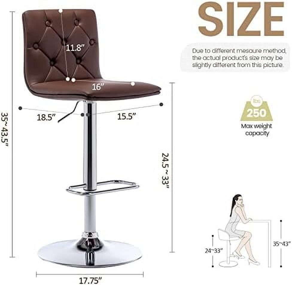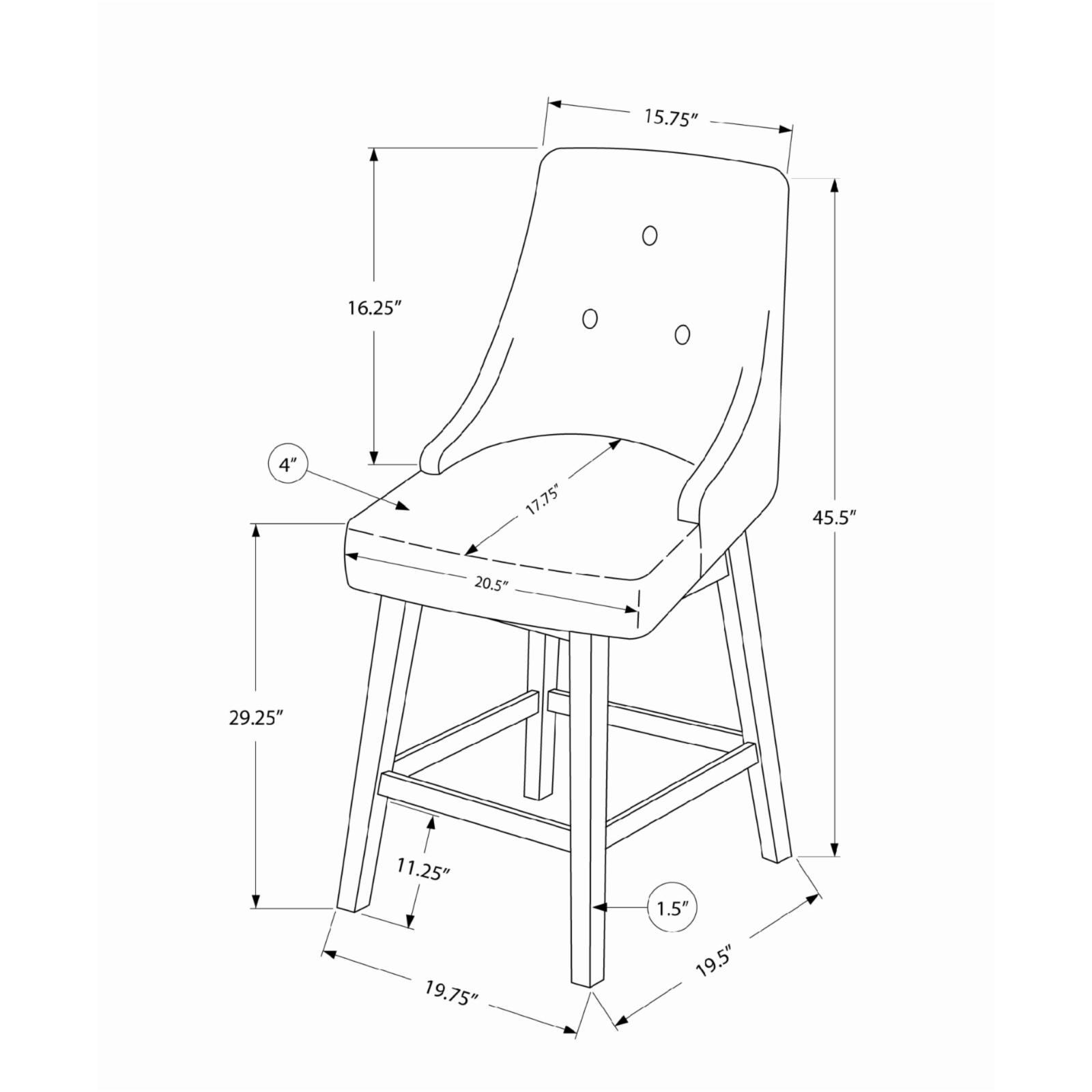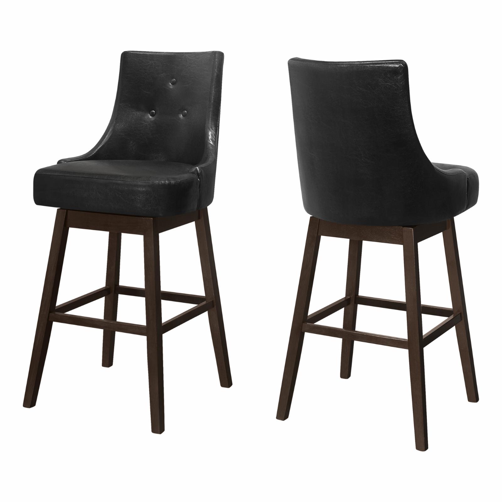 Monarch Specialties Bar Stool, Set Of 2, Swivel, Bar Height, Brown Wood, Black PU, 45.5" H, Indoor