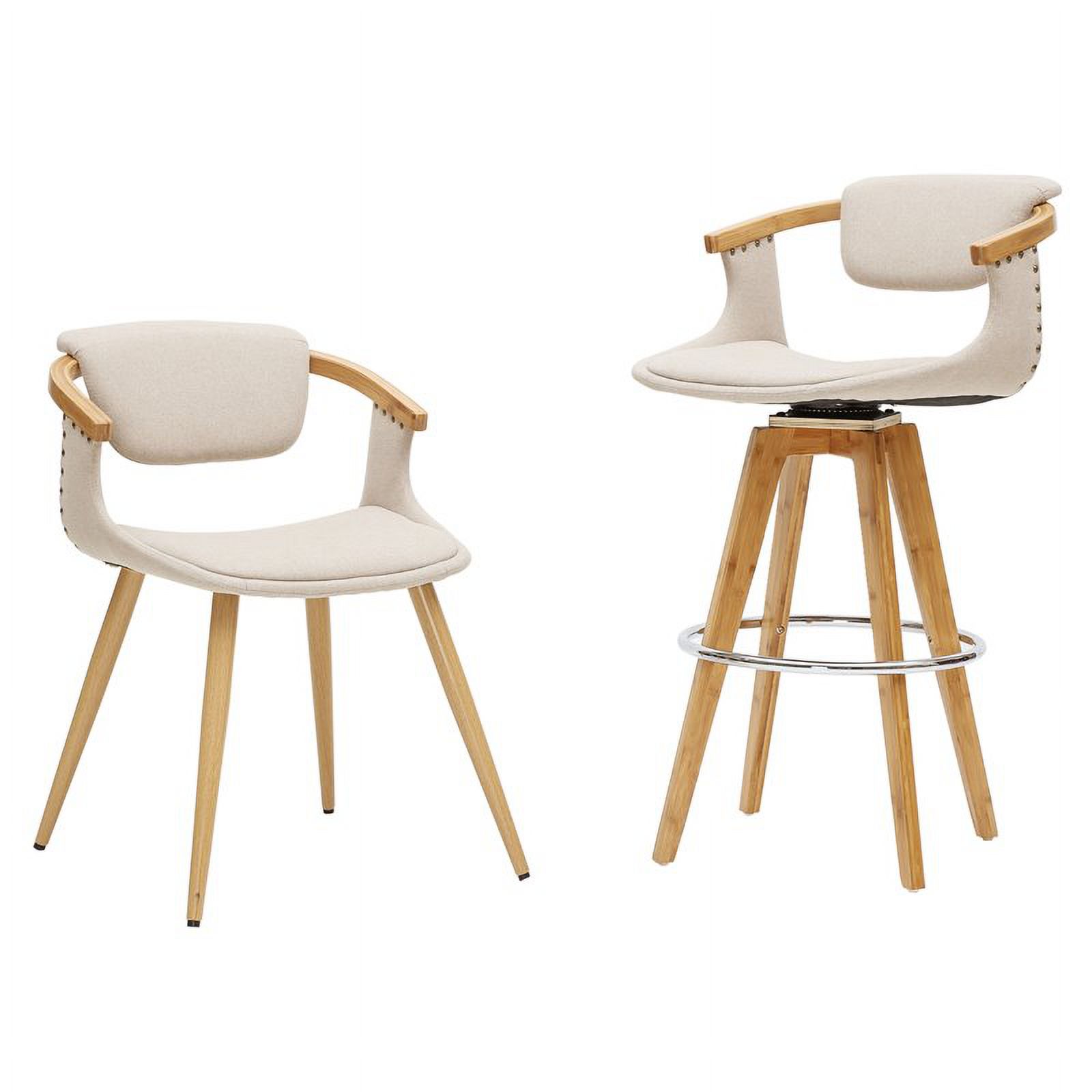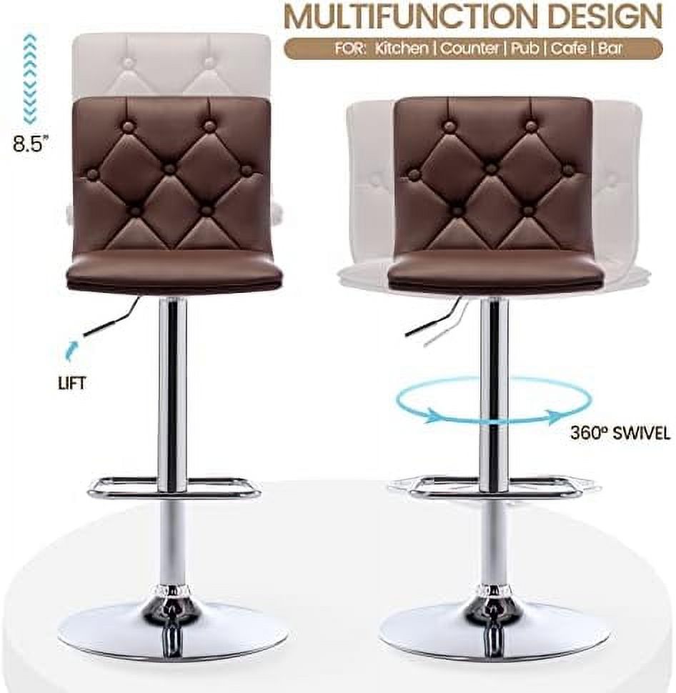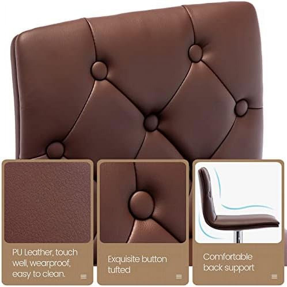 Monarch Specialties Bar Stool, Set Of 2, Swivel, Bar Height, Brown Wood, Black PU, 45.5" H, Indoor