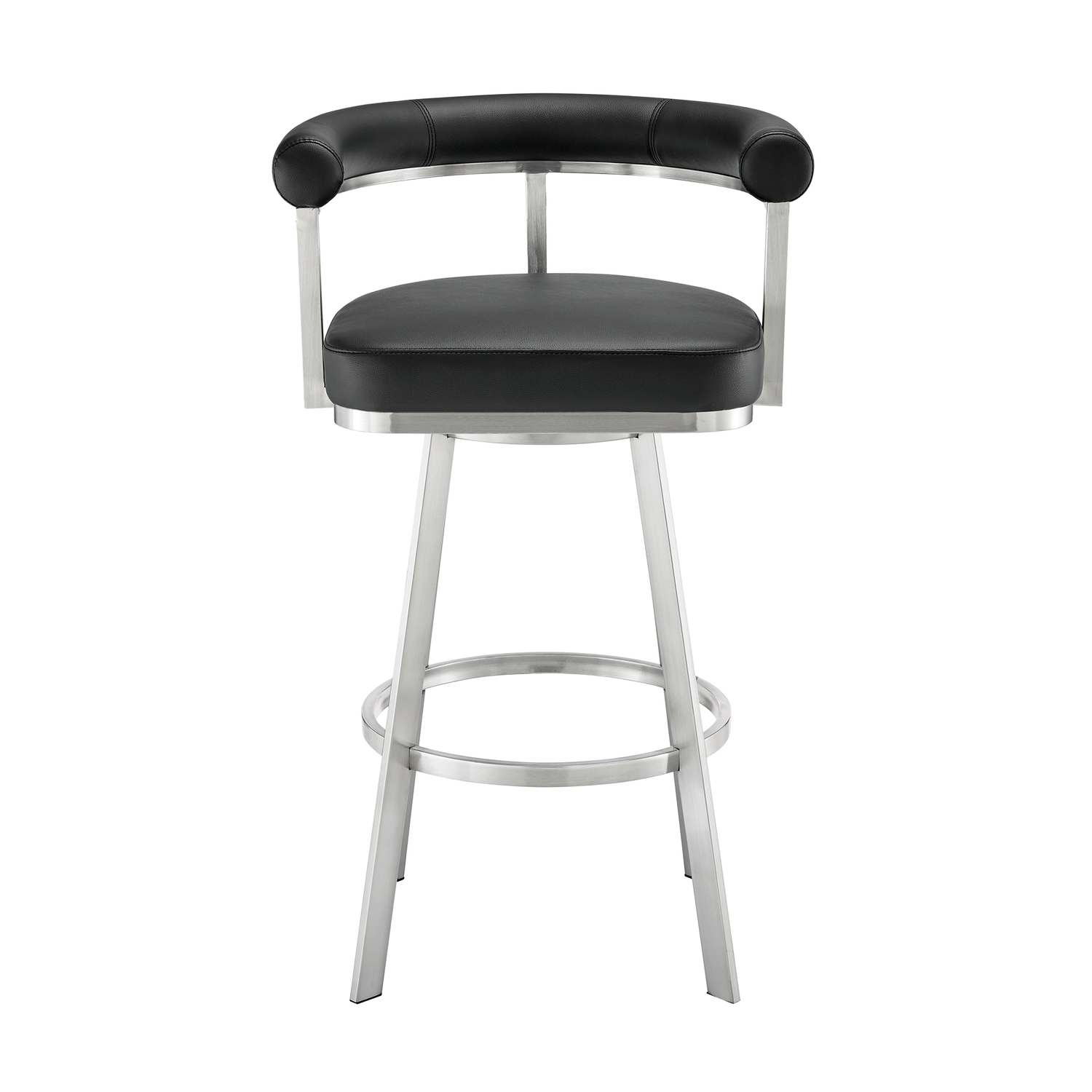 Armen Living Nolagam 30" Metal/Faux Leather Swivel Bar Stool in Black/Chrome