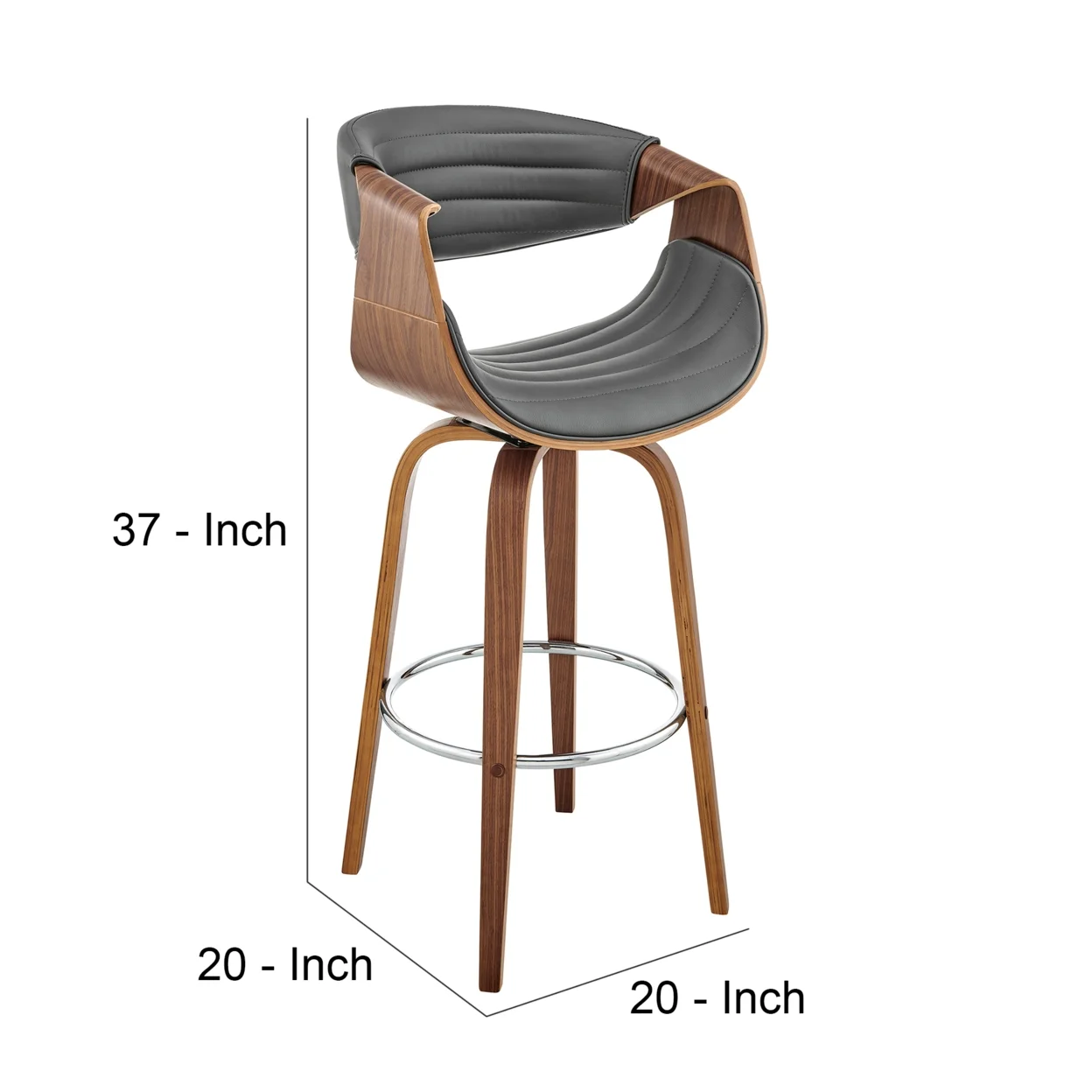 Swivel Counter Stool with Leatherette Bucket Seat, Gray- Saltoro Sherpi
