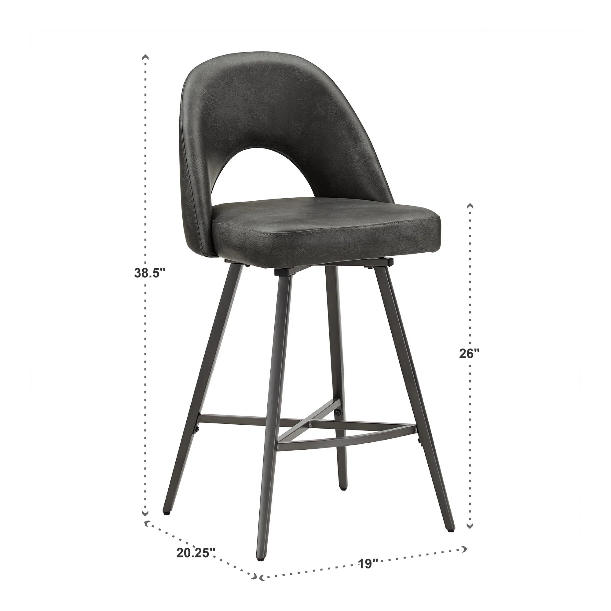 Weston Home Krista 24" Metal Swivel Mid Back Counter Stools, Set of 2, Dark Grey