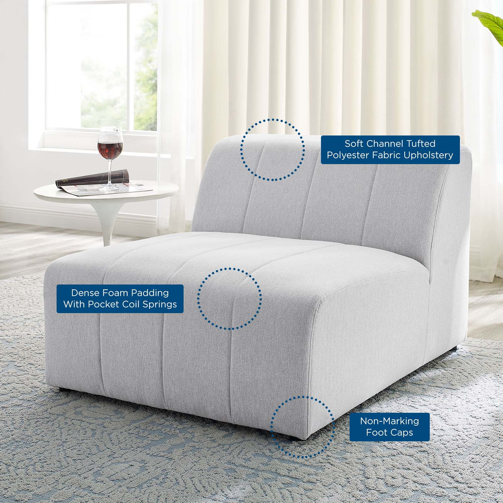 Sofa Middle Chair, Fabric, Ivory White, Modern Contemporary Urban Design, Living Lounge Room Hotel Lobby Hospitality