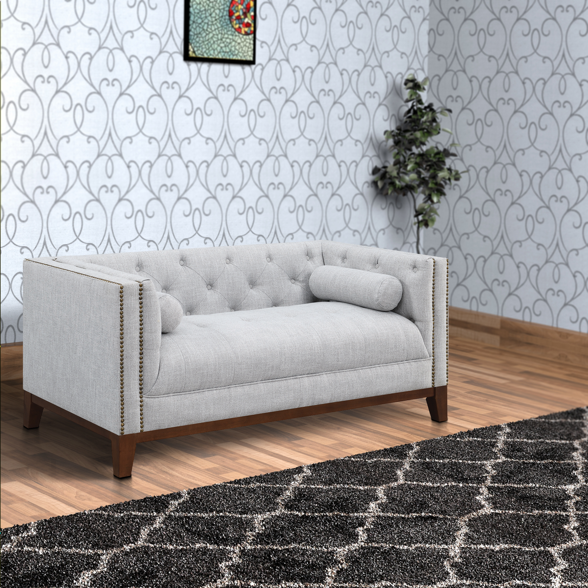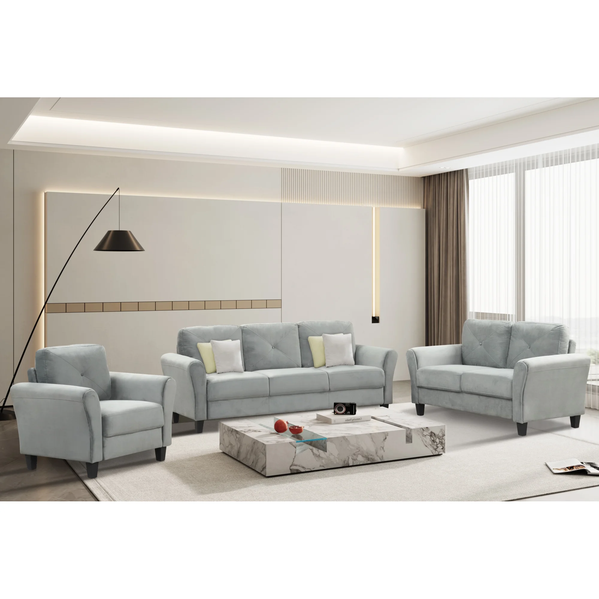 Modern Contemporary Urban Design Living Room Lounge Club Lobby Sofa, Fabric, Grey Gray
