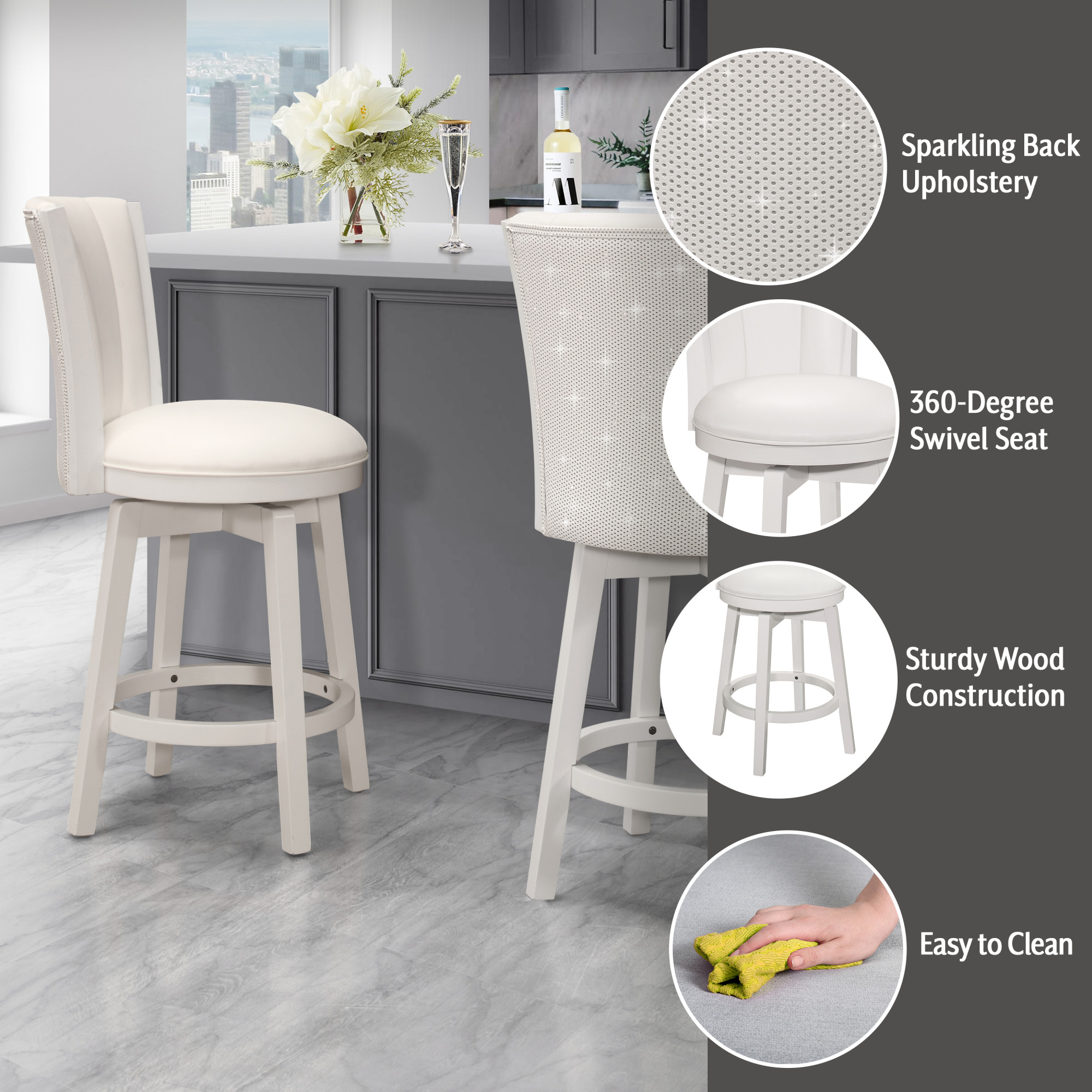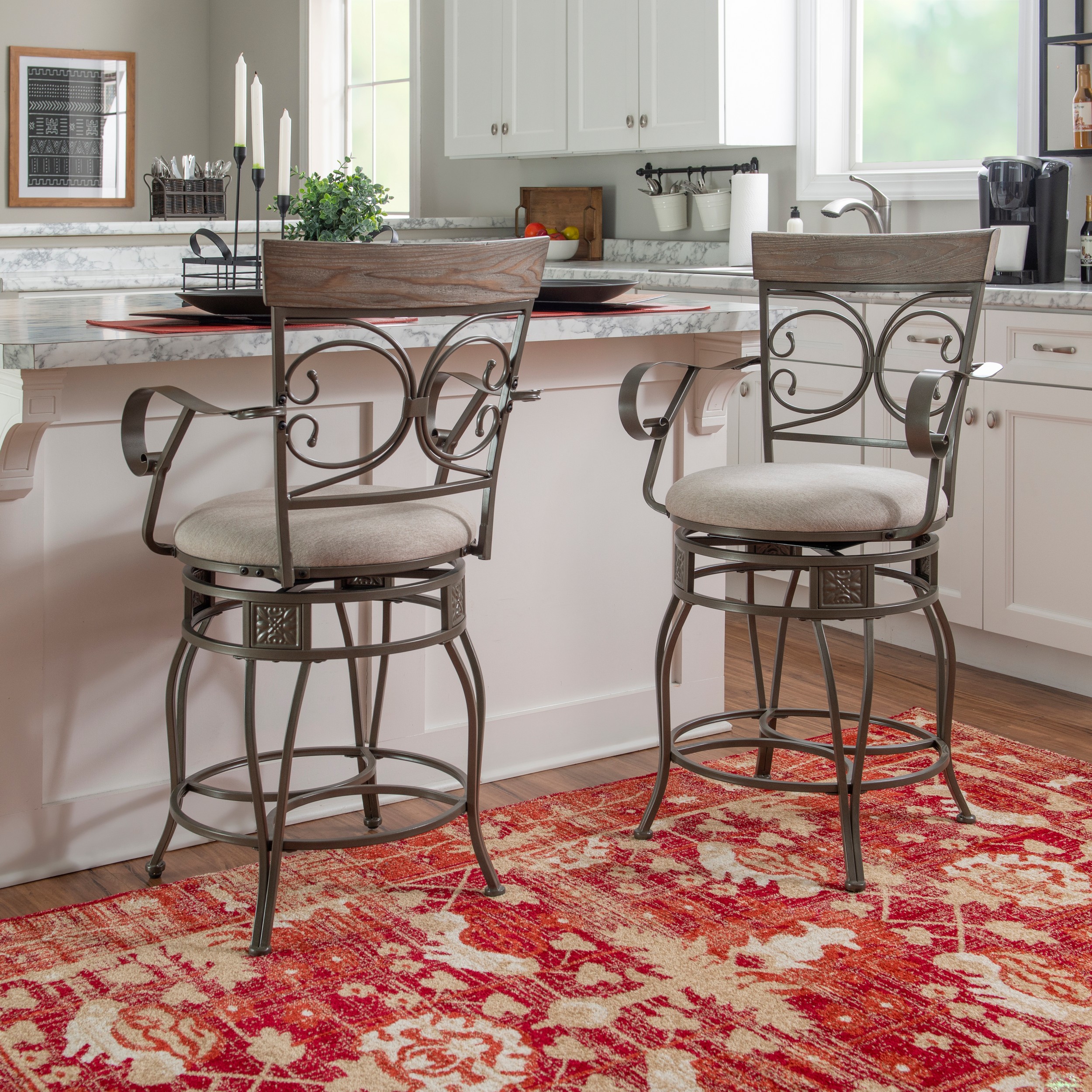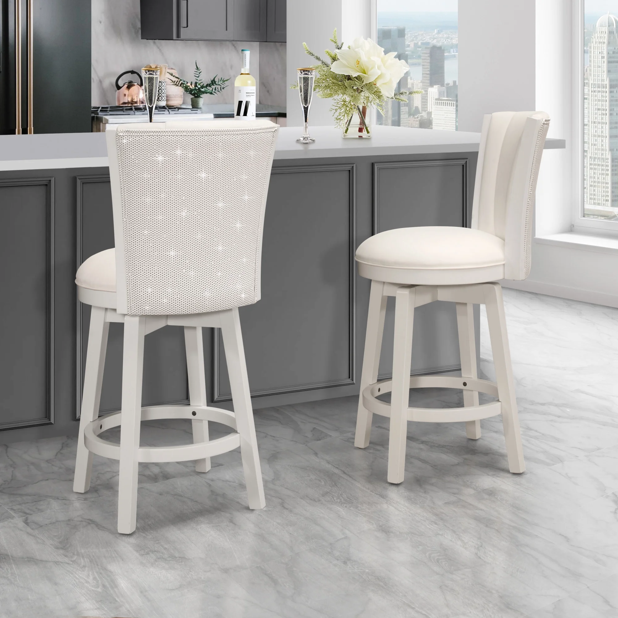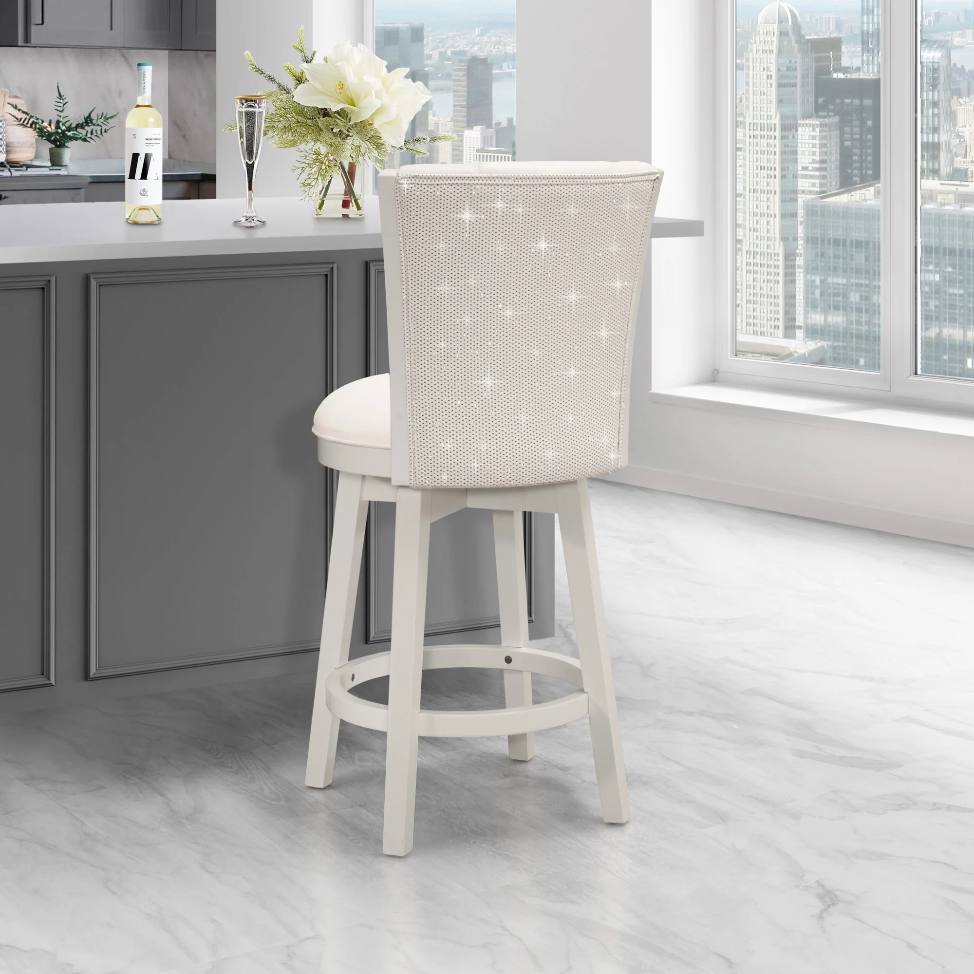 Hillsdale Furniture Gianna Wood Counter Height Swivel Stool with Upholstered Back, White
