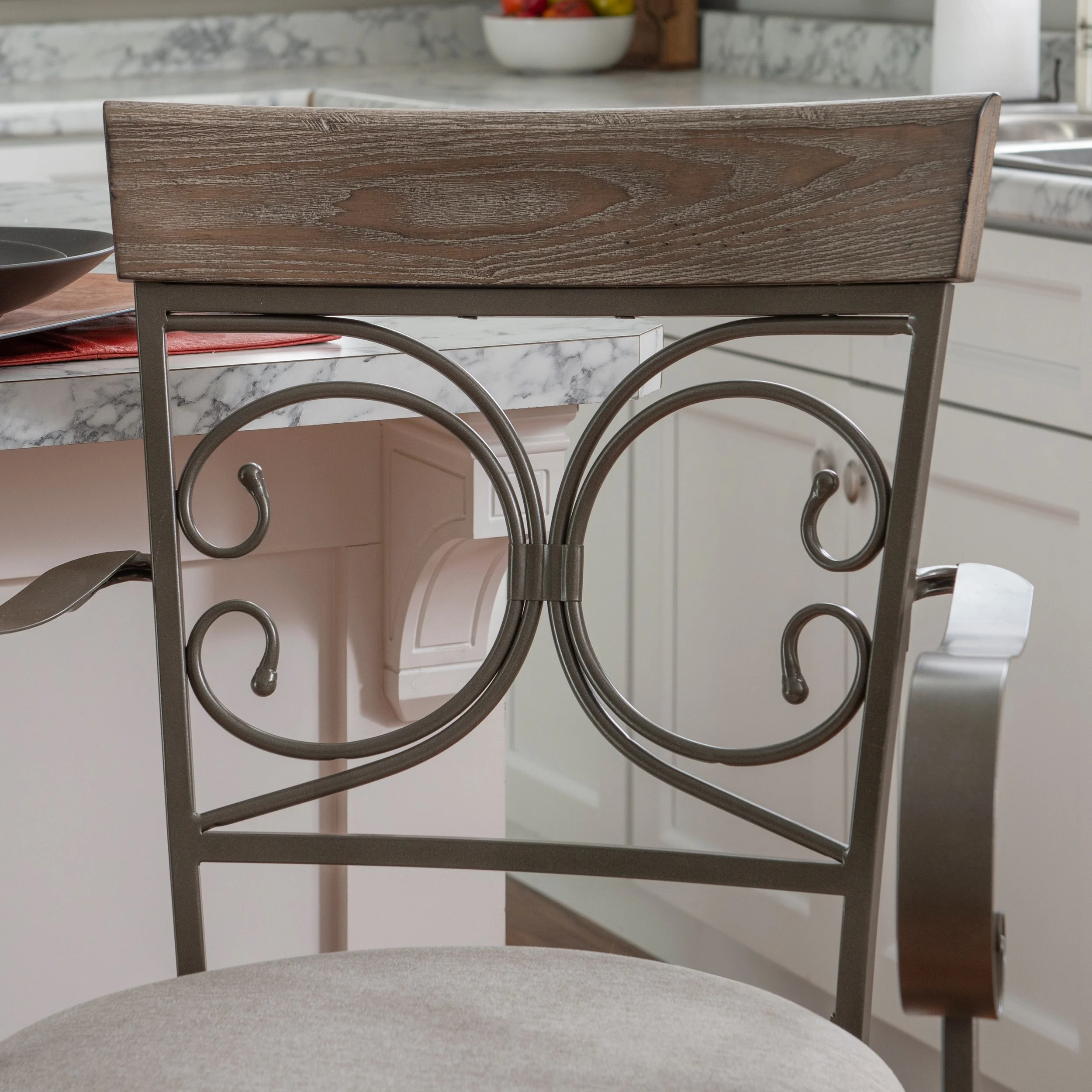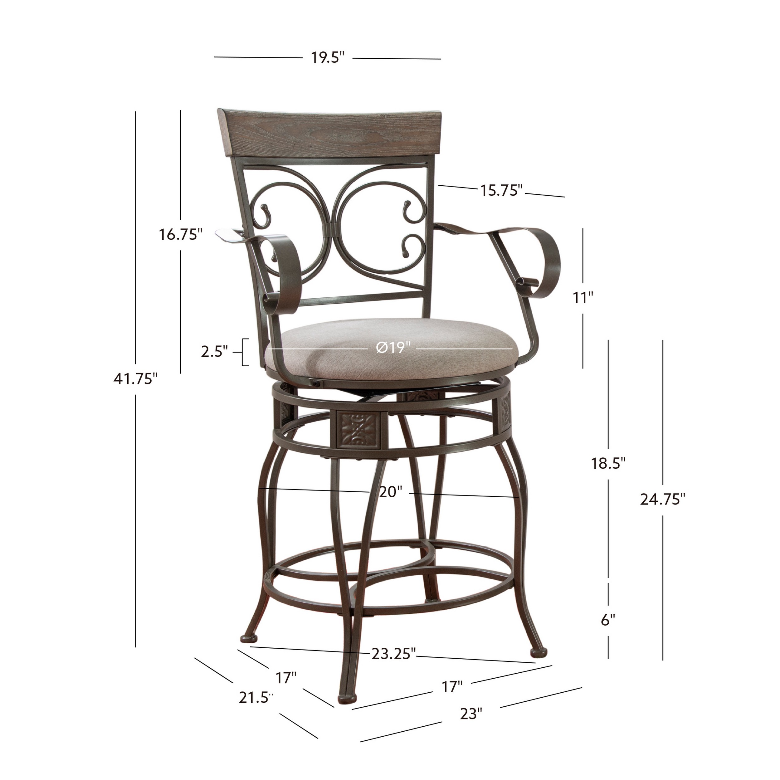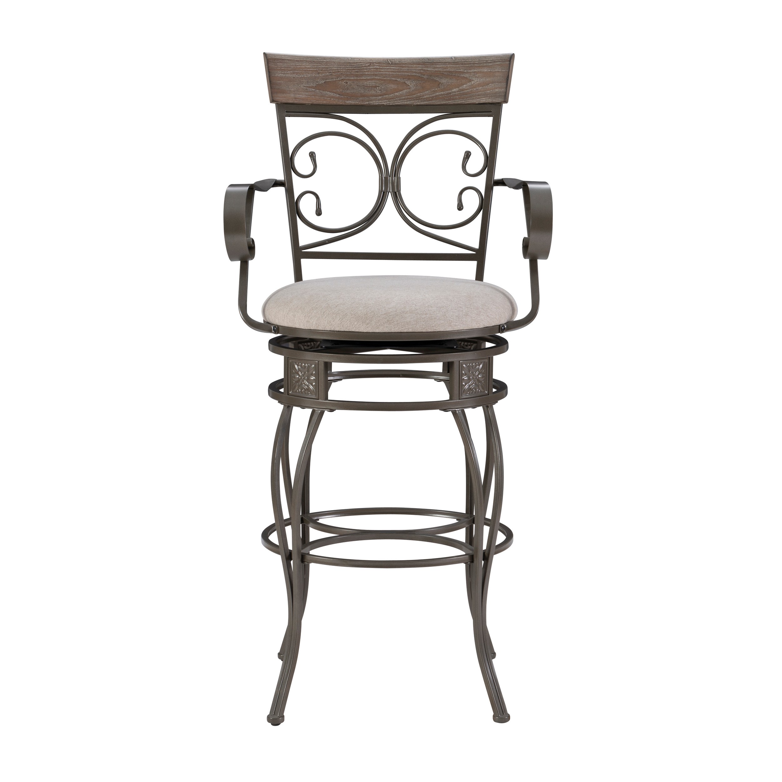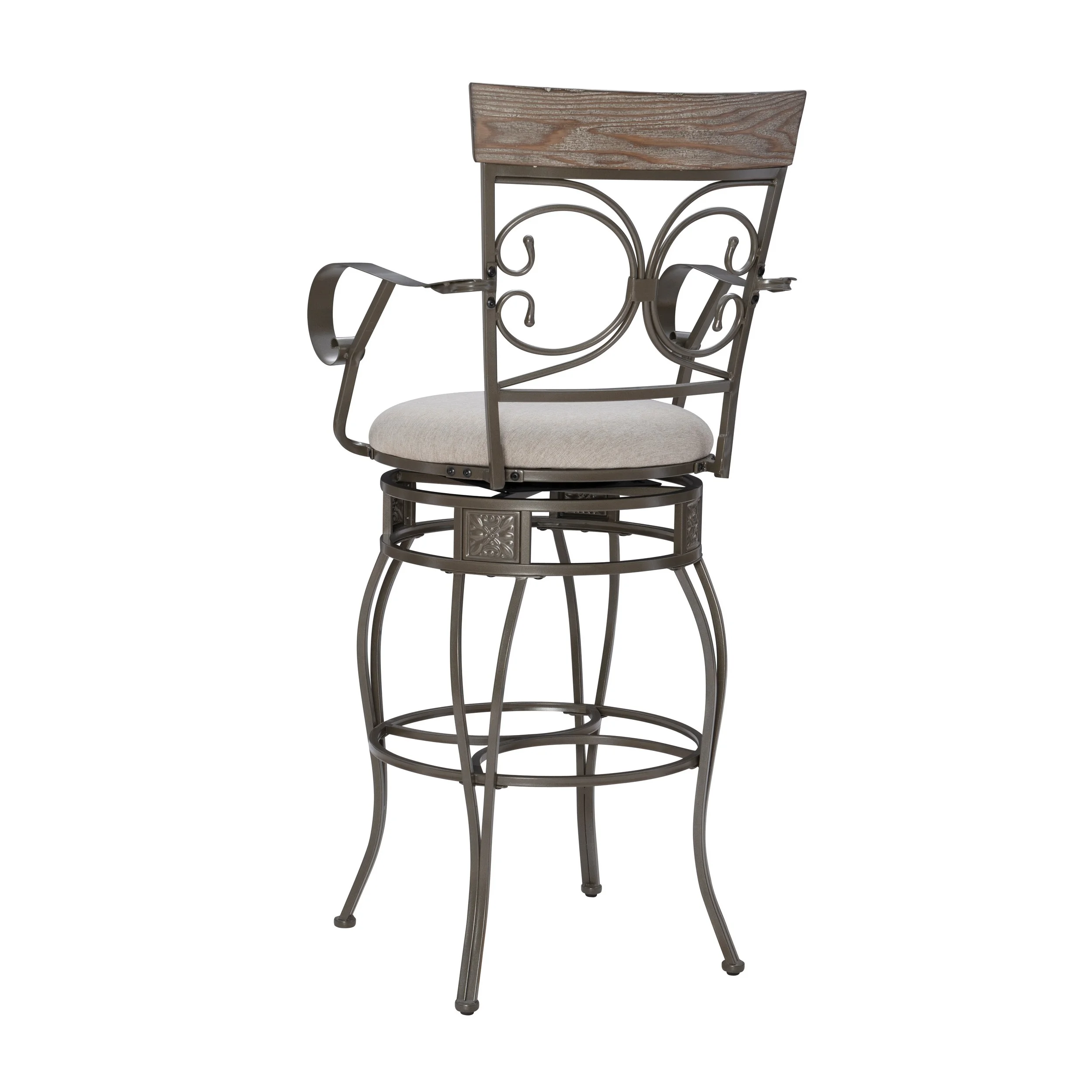 Powell Beeson Big & Tall 25" Indoor Metal Swivel Counter Stool with Arms, Gray Wash/Silver