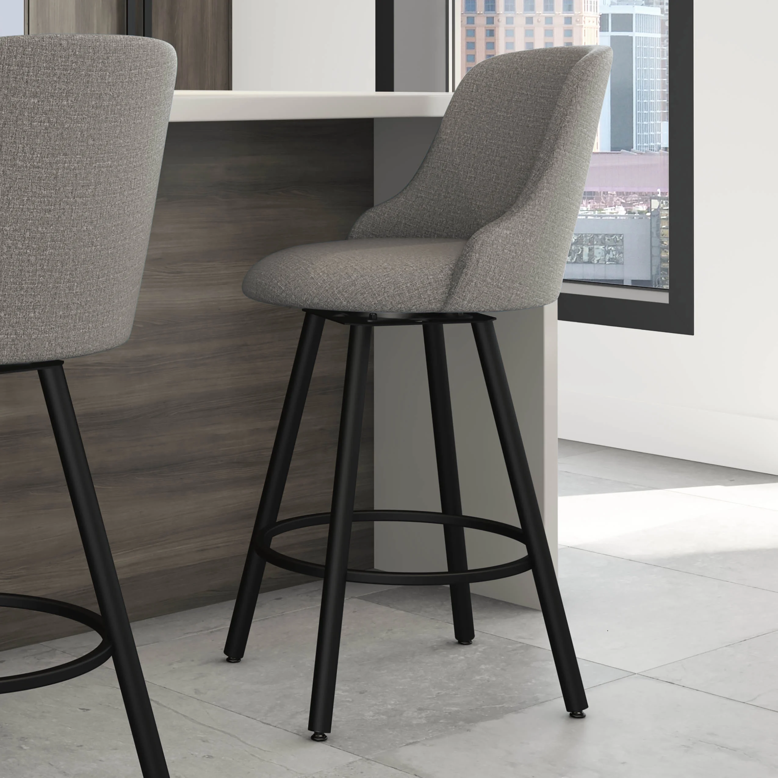 Amisco Kelsea 26 In. Swivel Counter Stool - Silver Grey Polyester / Black Metal