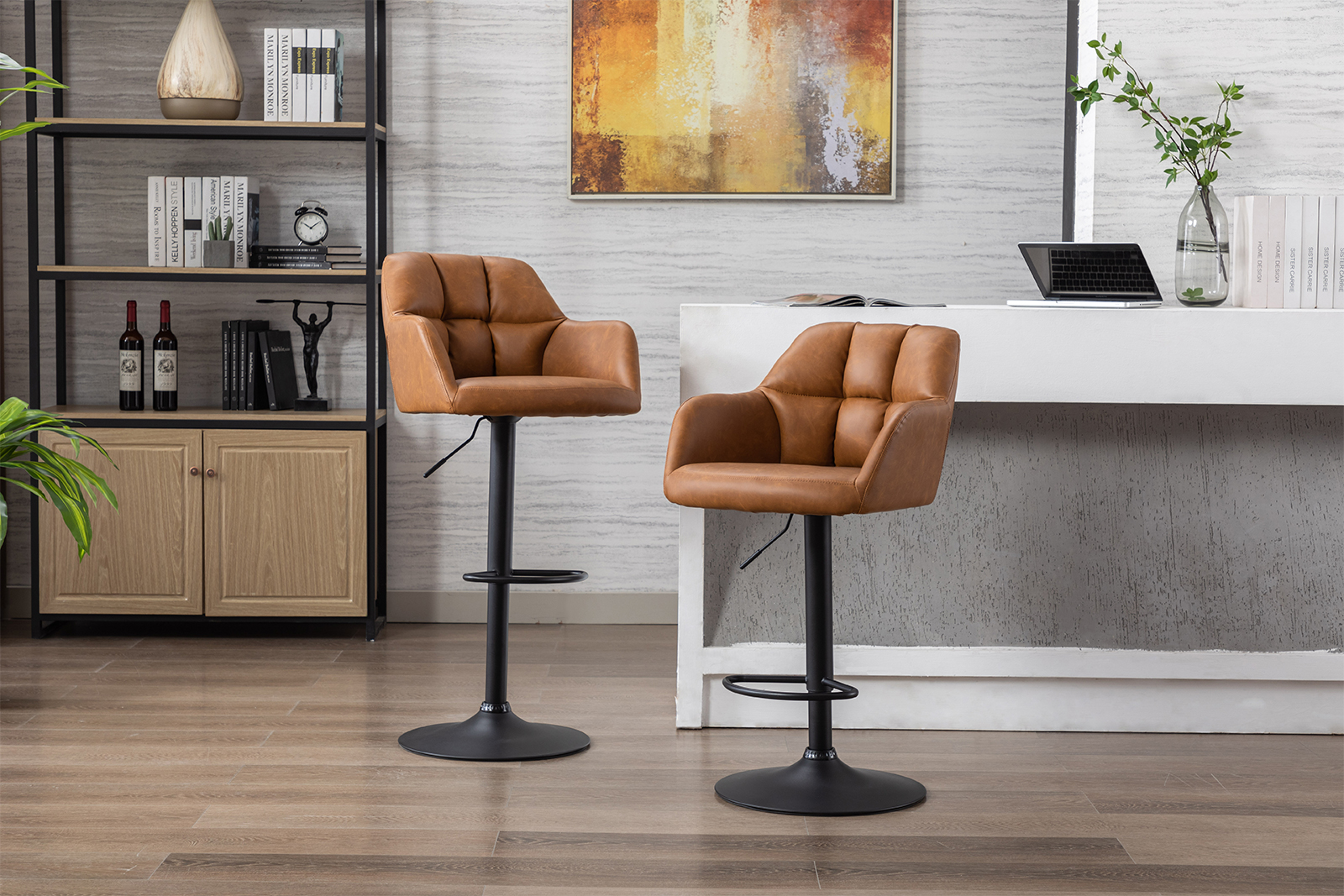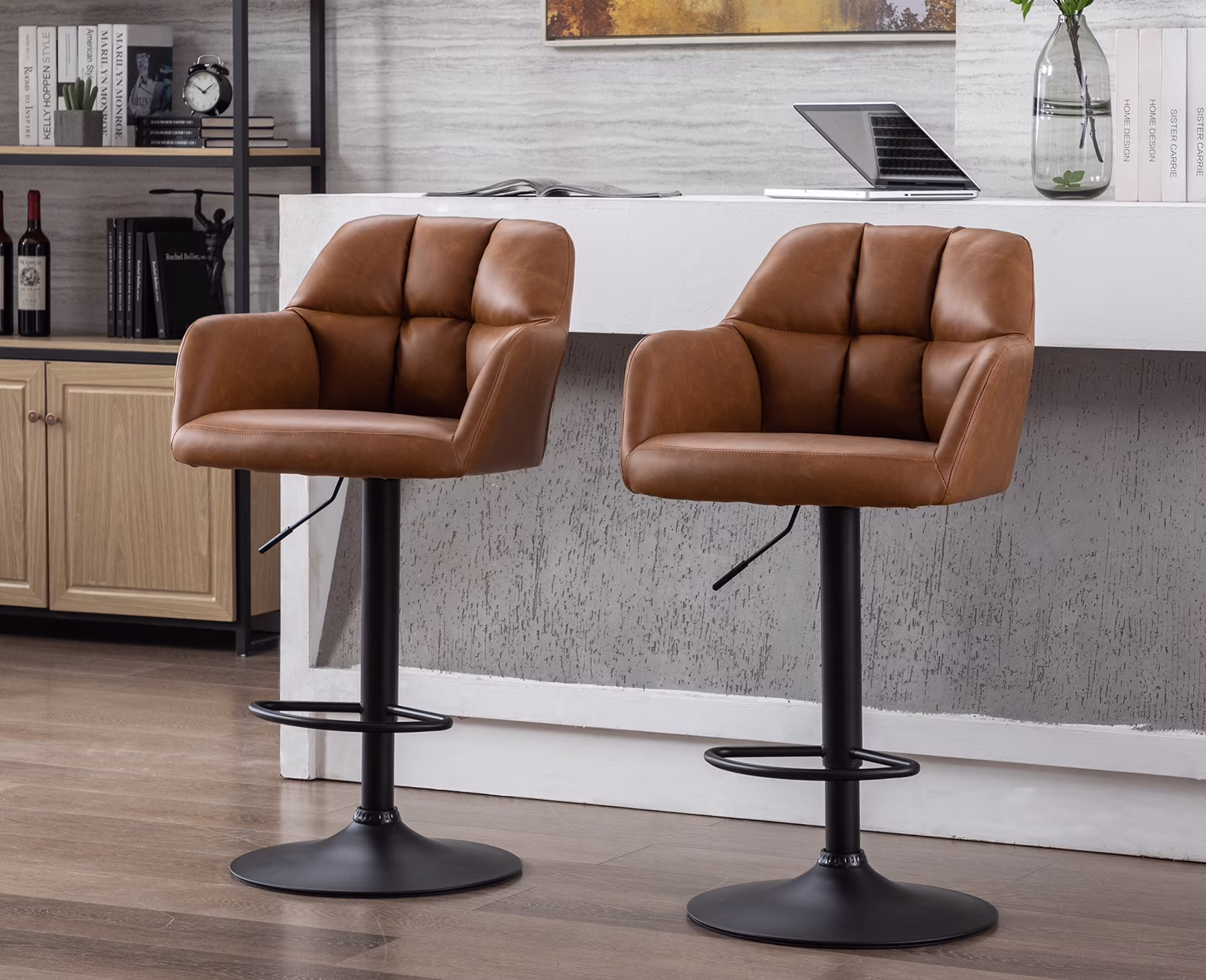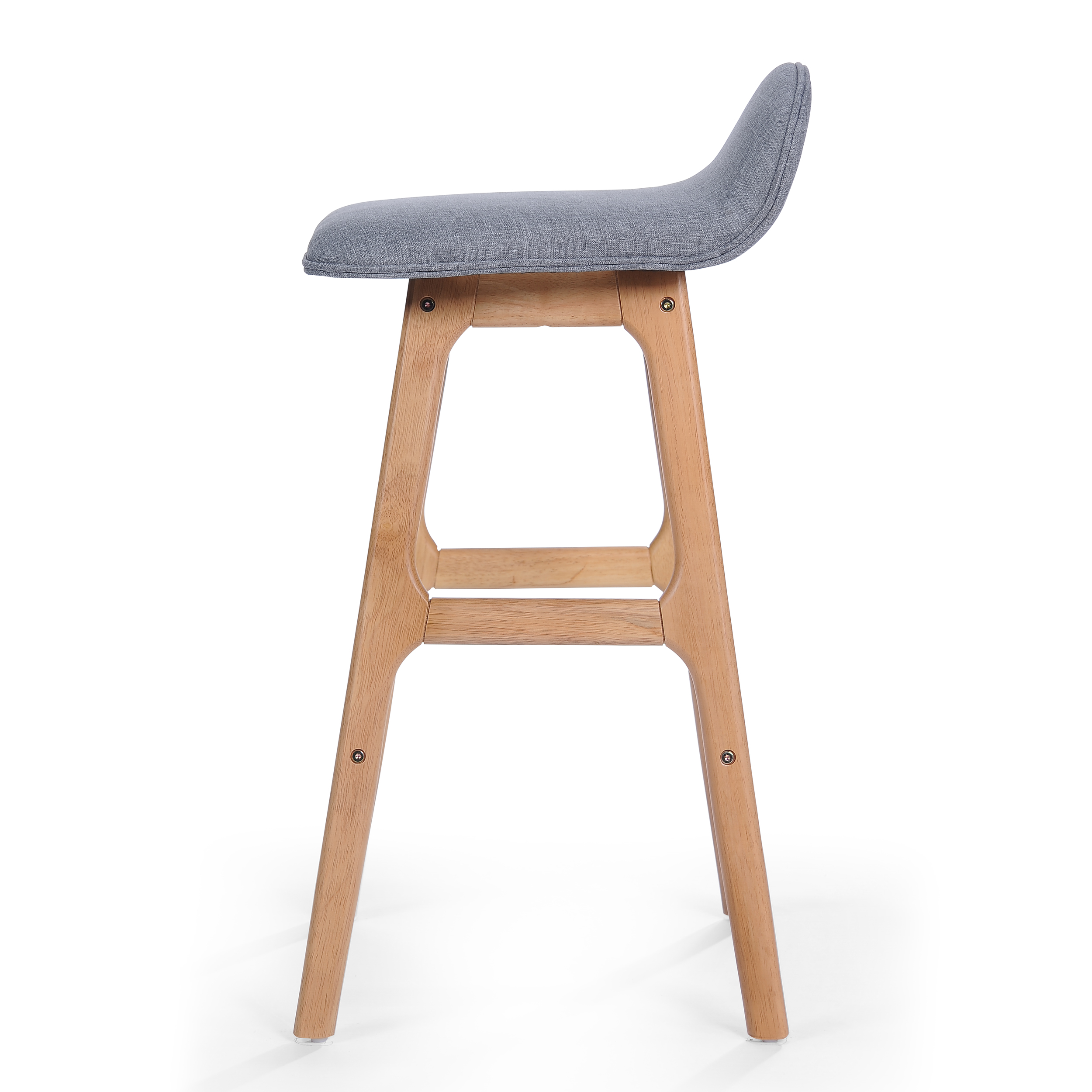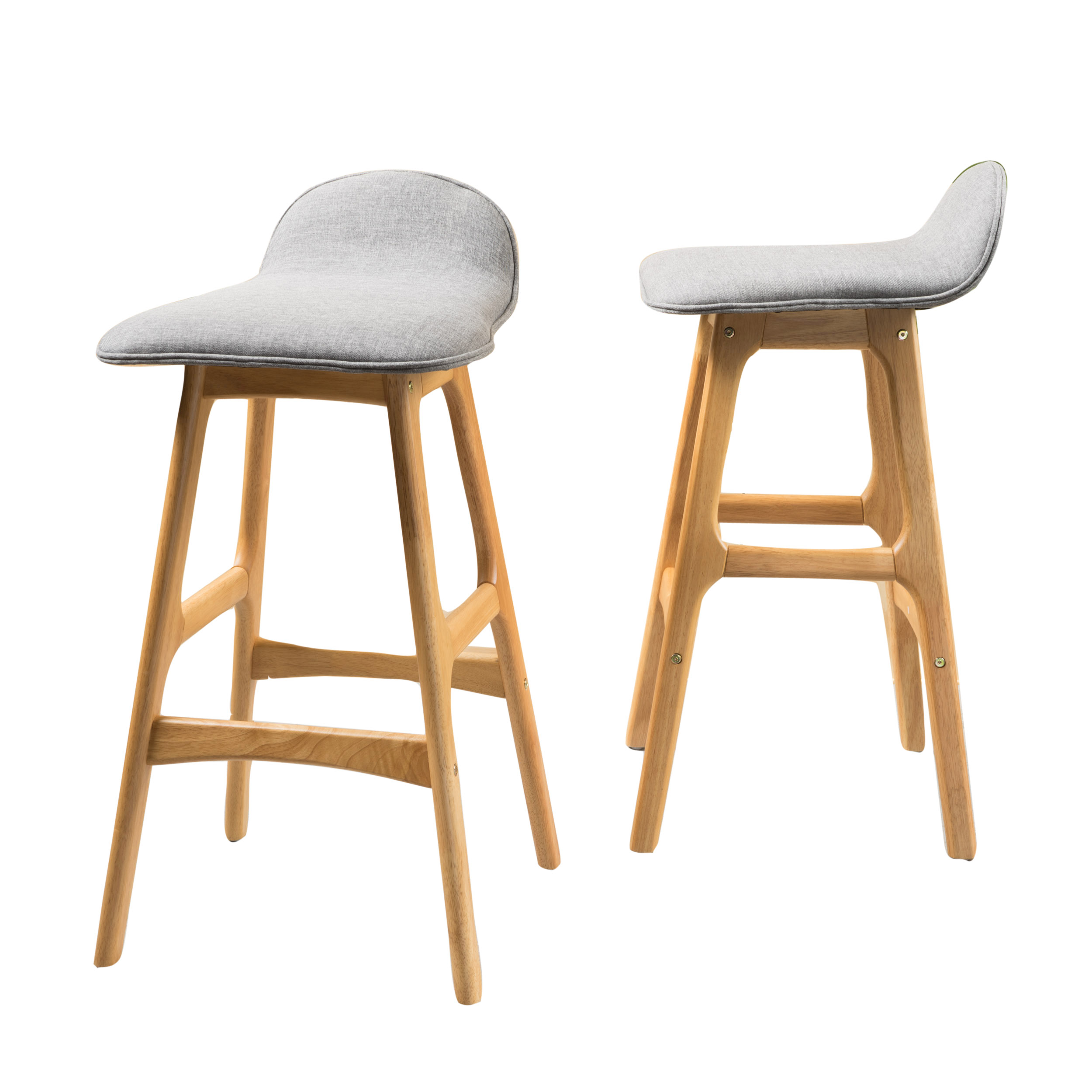Tolle Mid-Century Modern Upholstered Barstools (Set of 2), Gray and Natural Oak