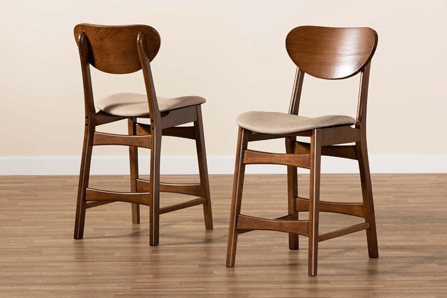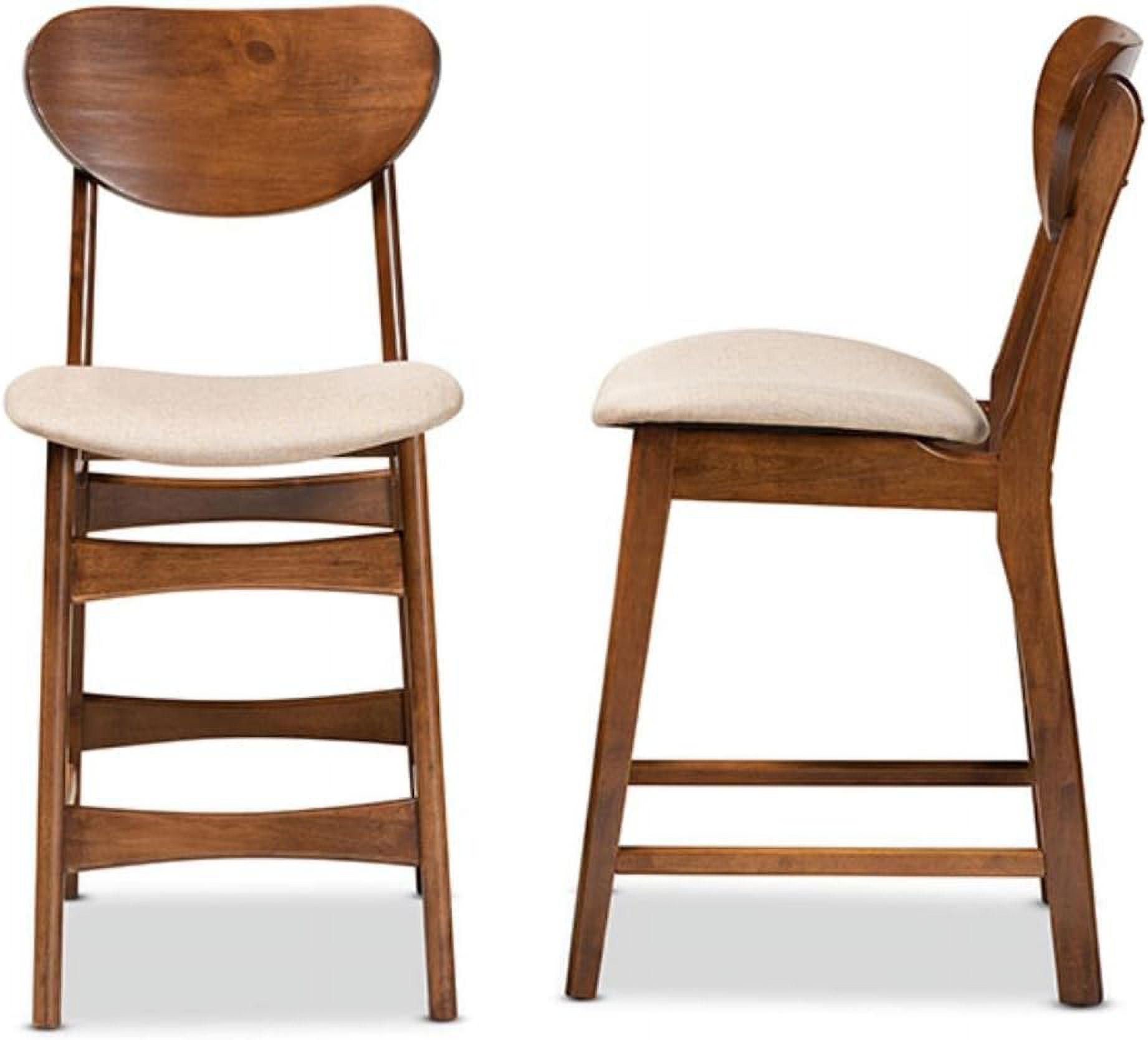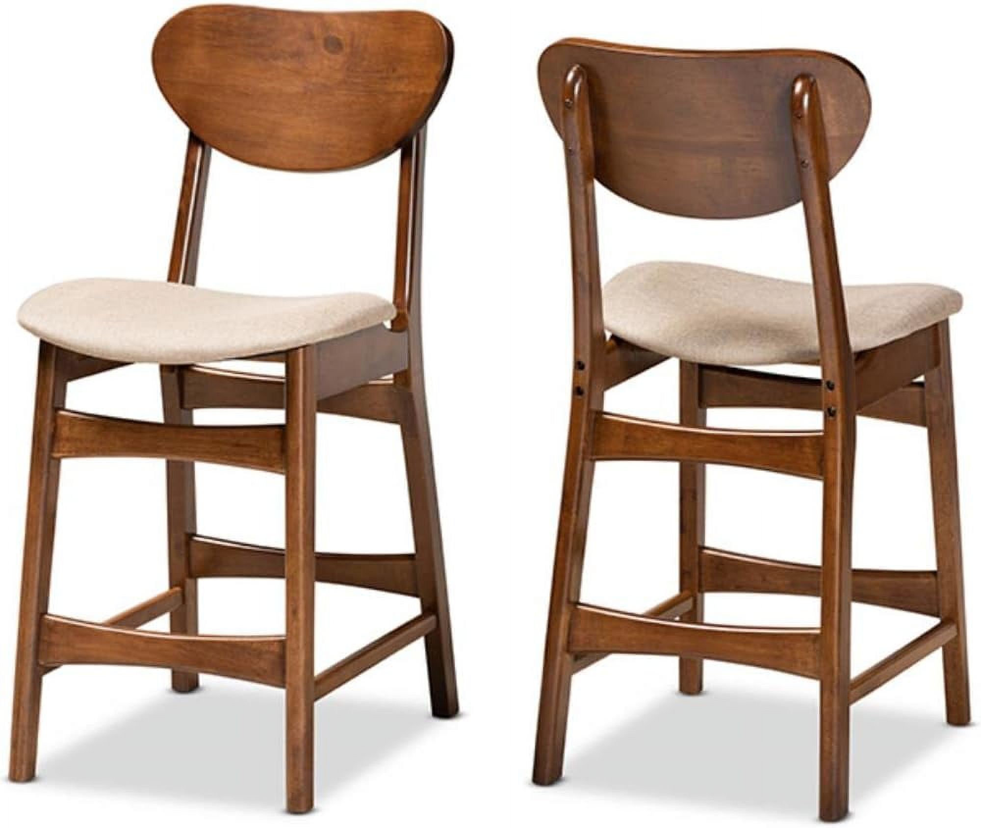 Katya -Century Modern Sand Fabric Upholstered And Walnut Brown Finished Wood 2-Piece Counter Stool Set