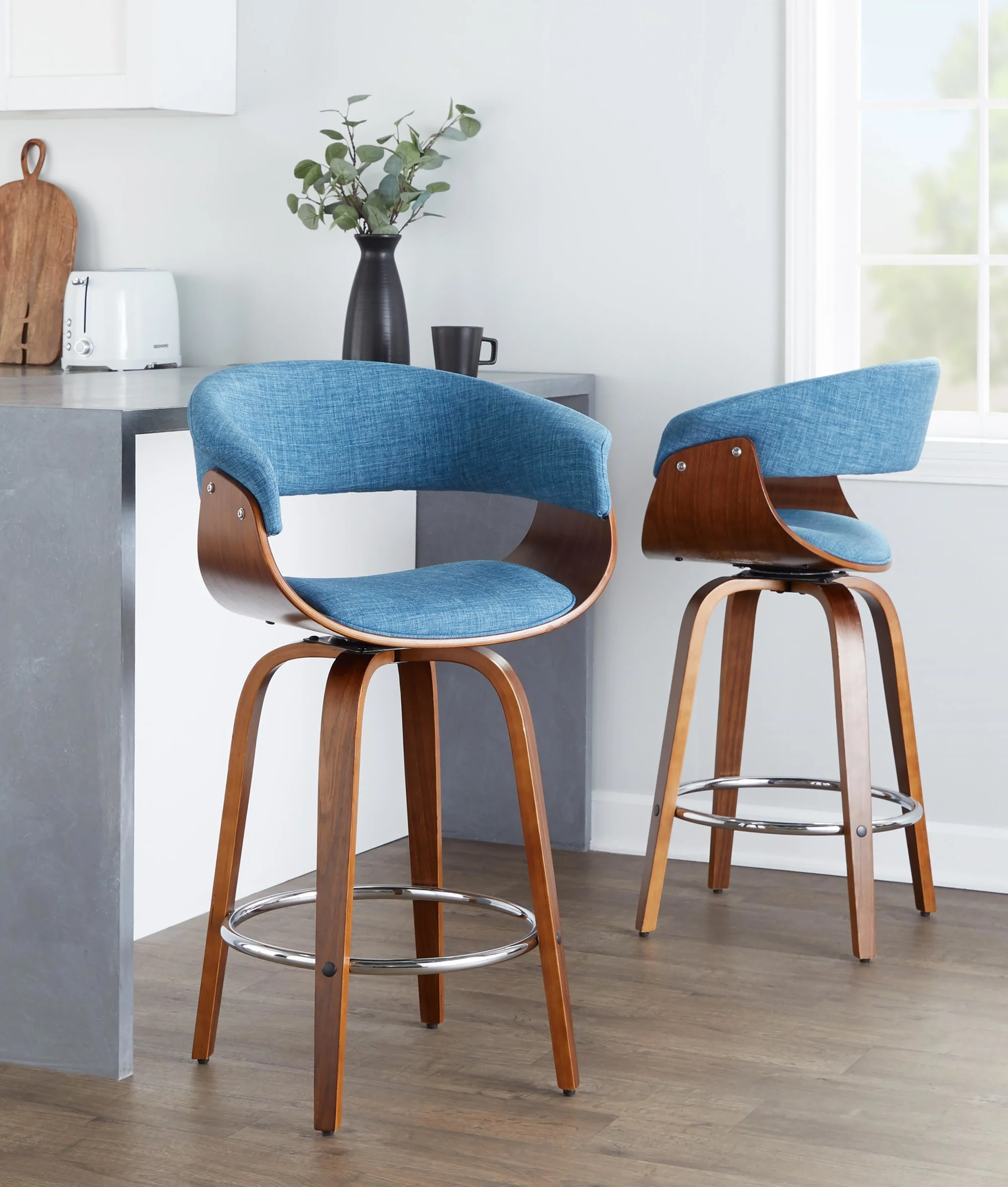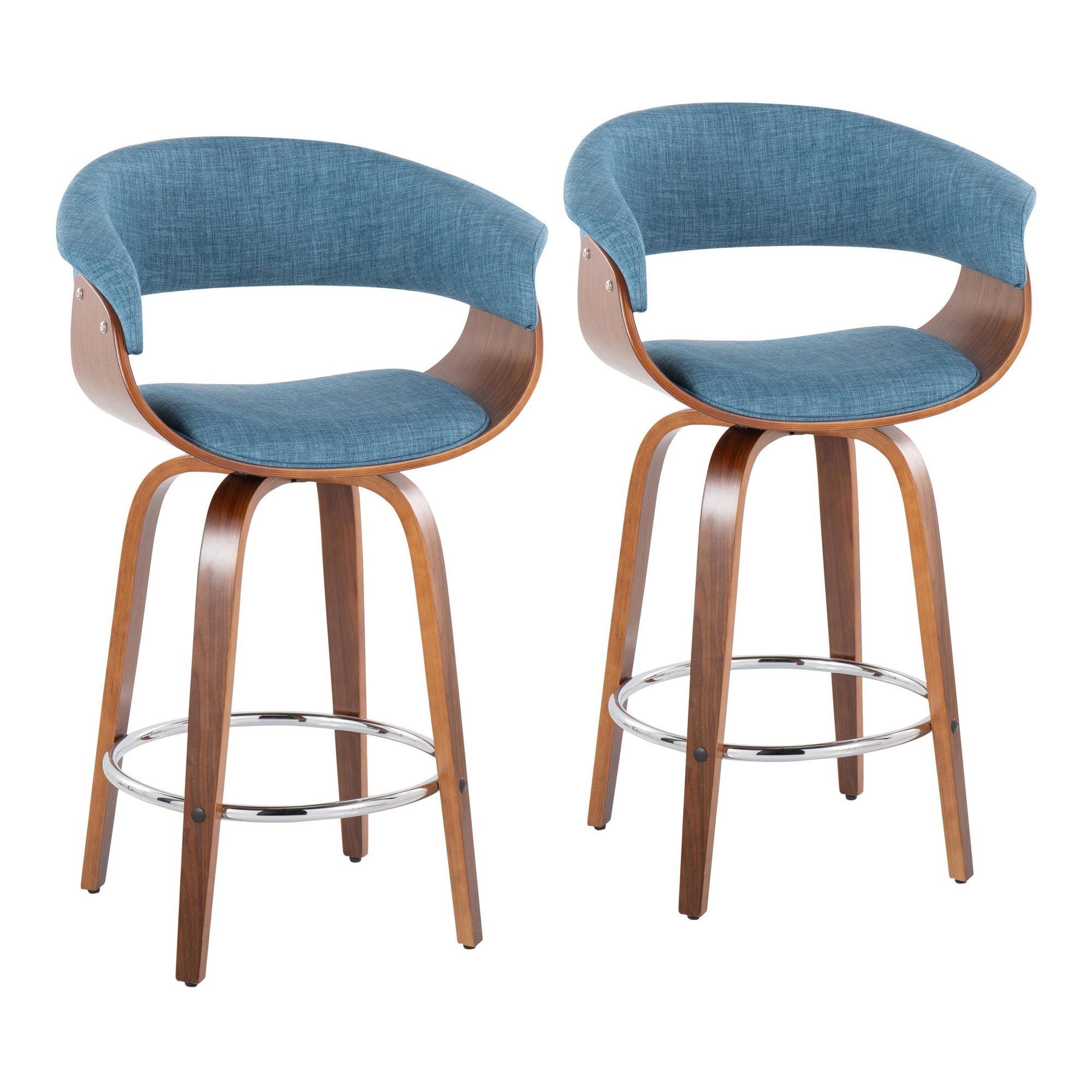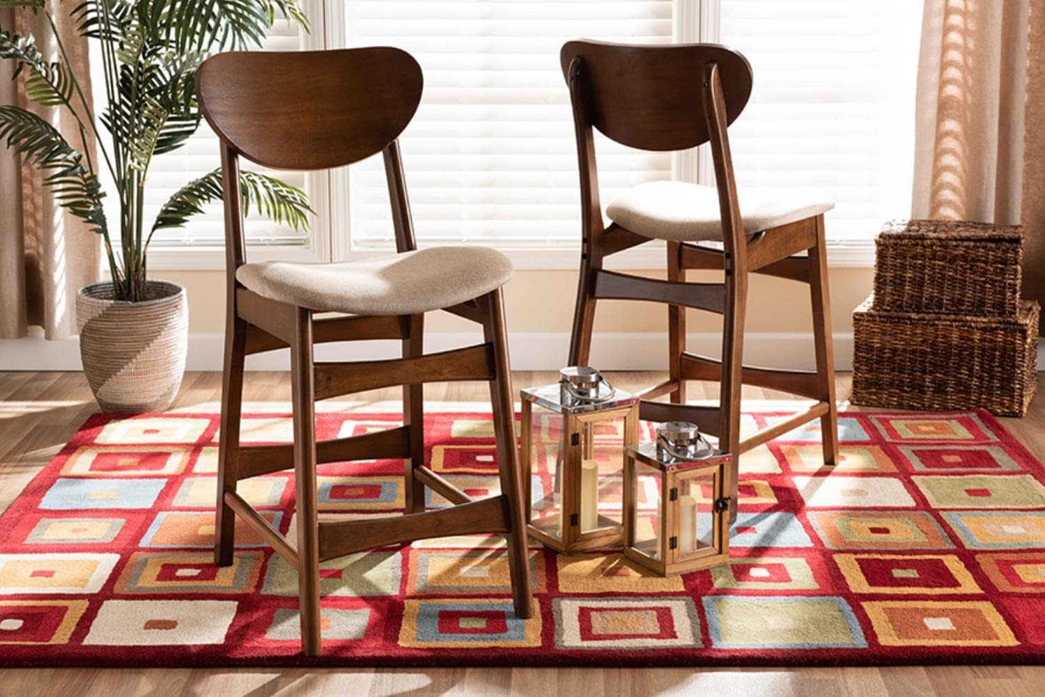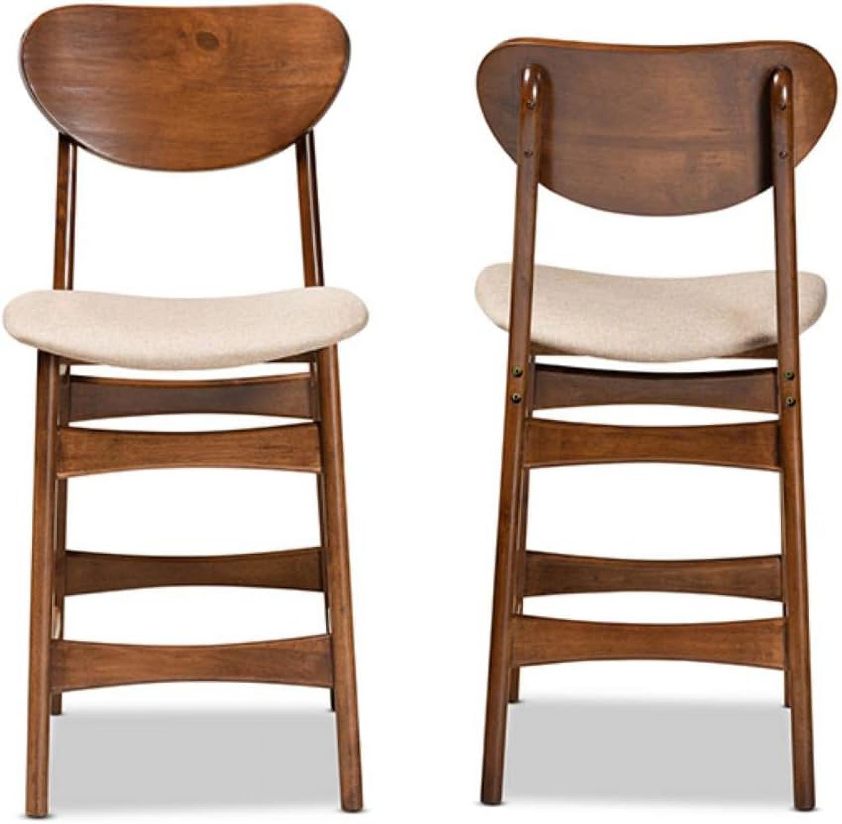 Katya -Century Modern Sand Fabric Upholstered And Walnut Brown Finished Wood 2-Piece Counter Stool Set