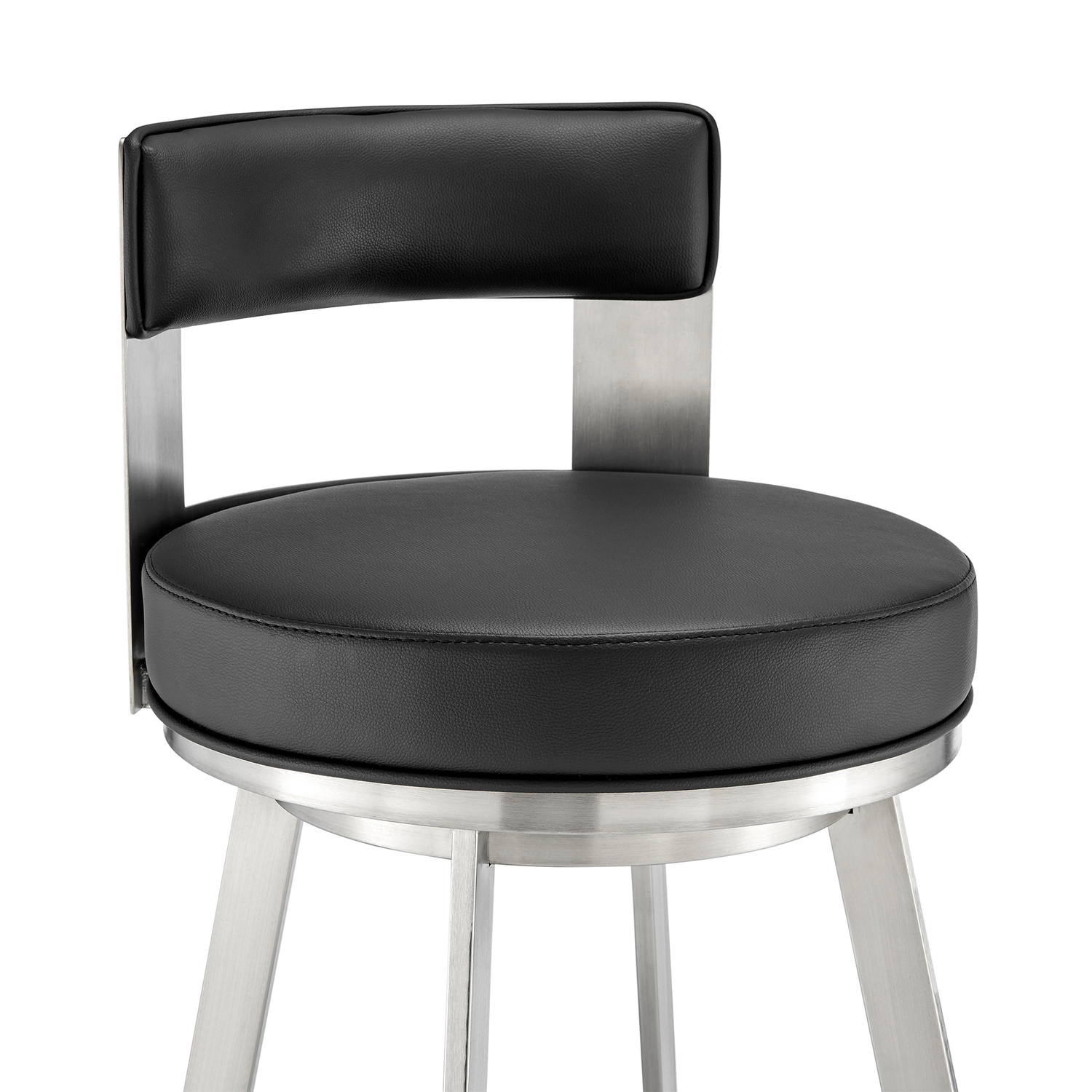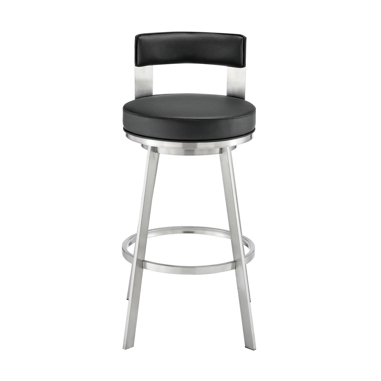 Armen Living Lynof 26" Swivel Faux Leather/Metal Counter Stool in Black/Chrome