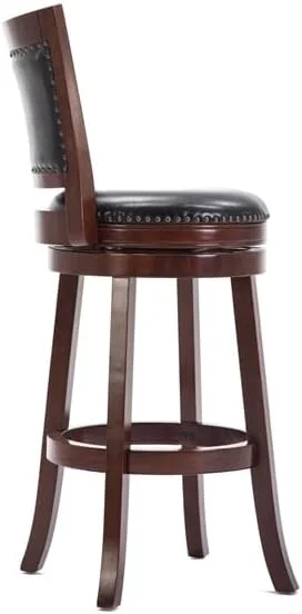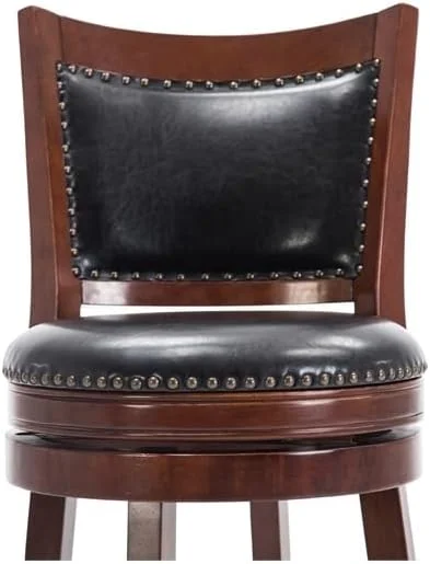 xrboomlife 29" Mid-Century Faux Leather Swivel Stool in Cherry