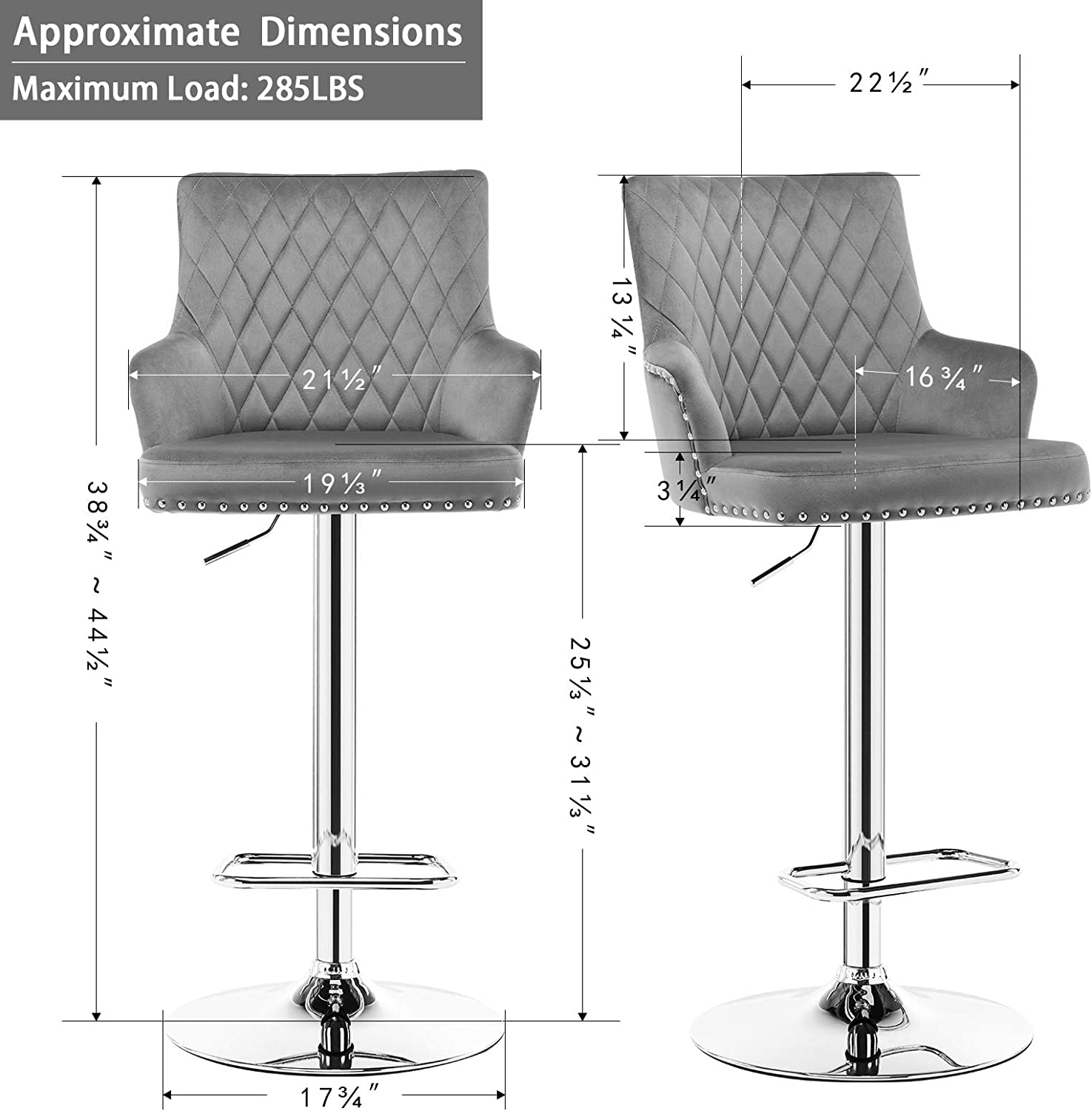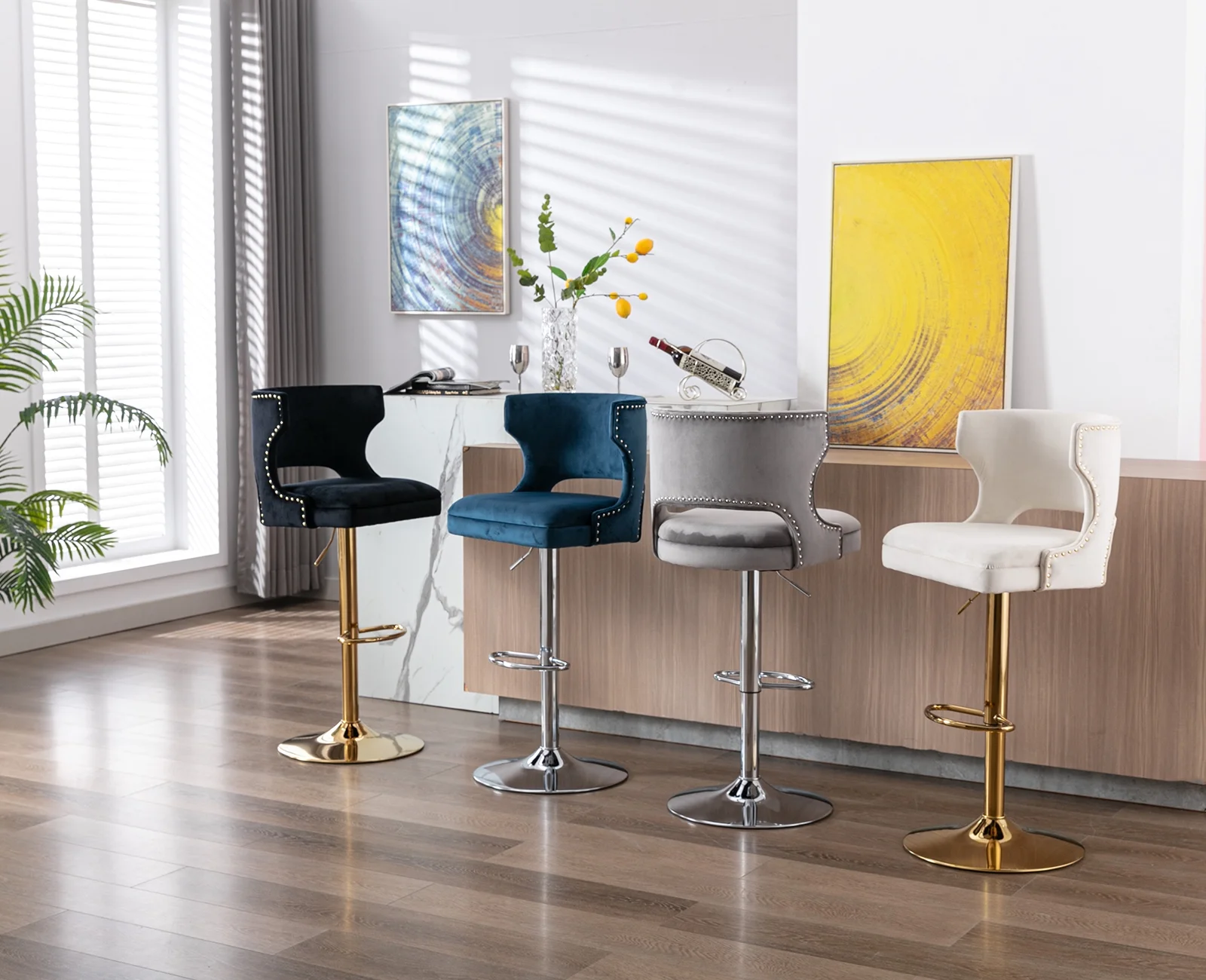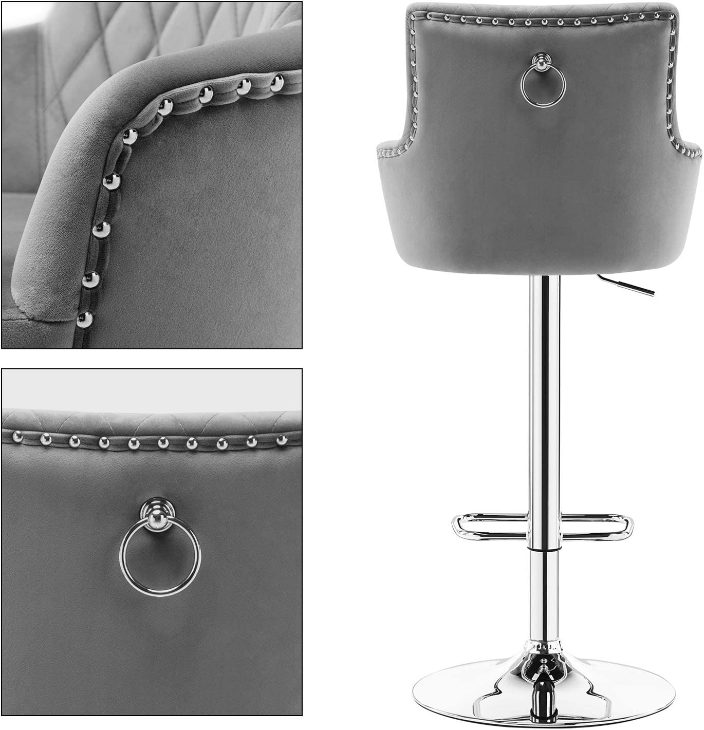 Duhome Modern Bar Stool with Back, Adjustable Swivel Barstools Velvet Counter Stools with Nailhead Trim Bar Chairs for Kitchen 1Pc, Gray