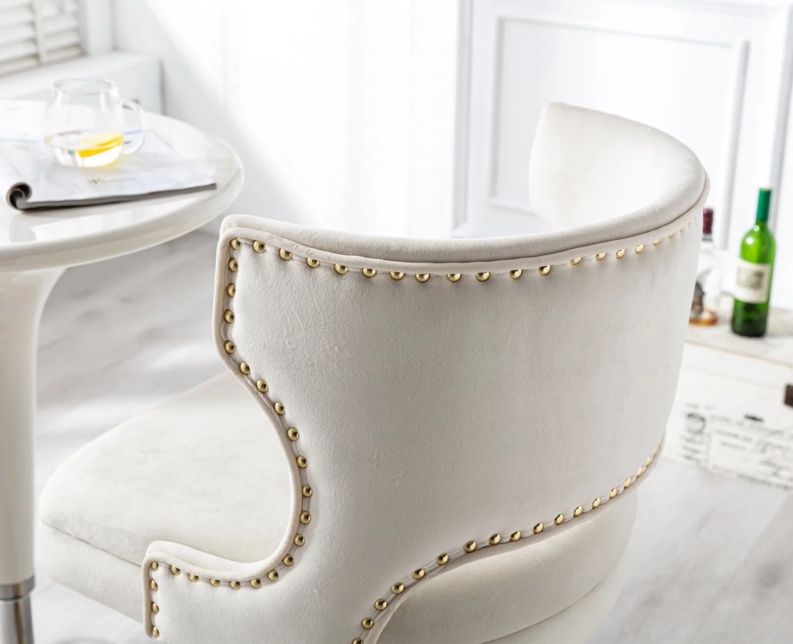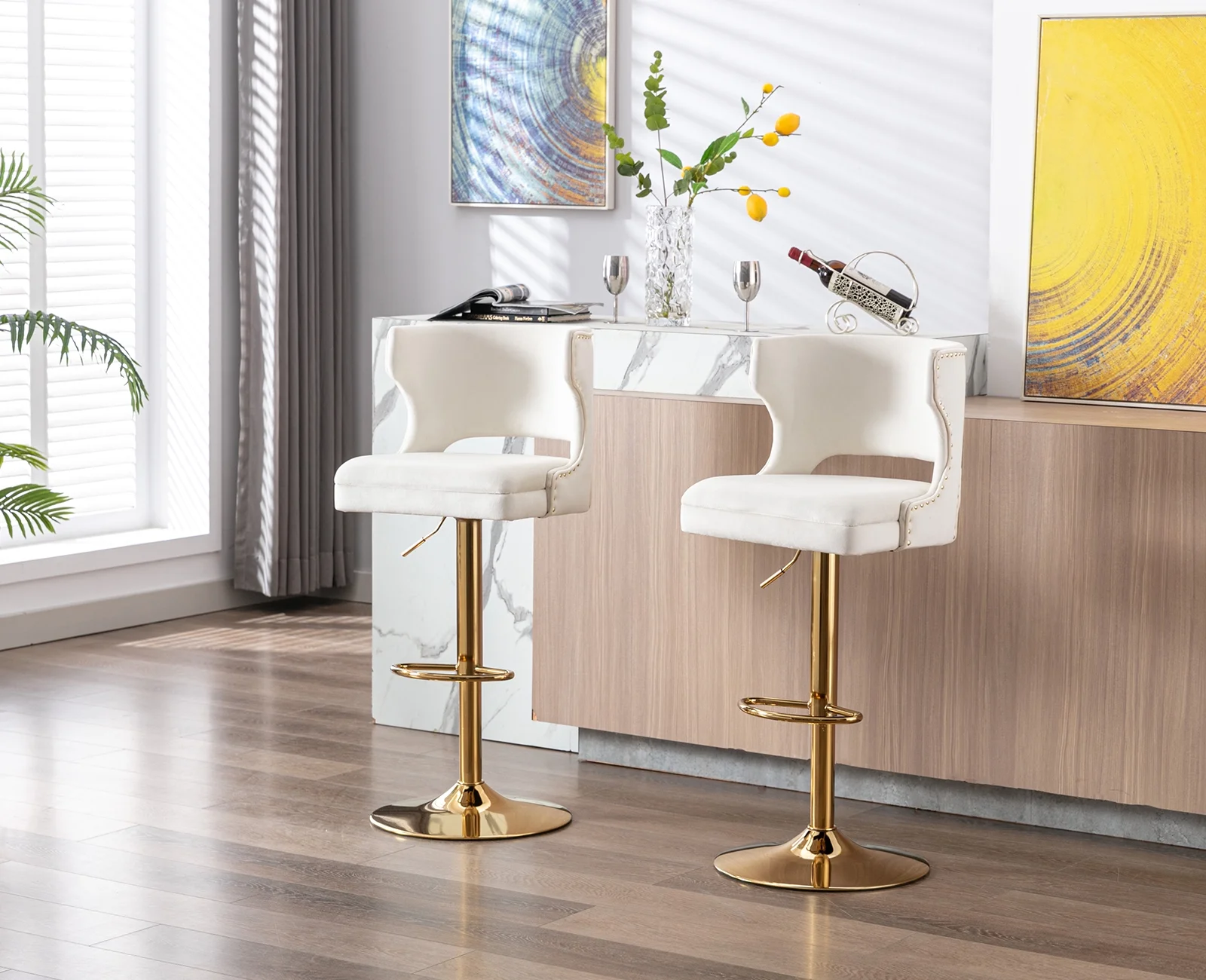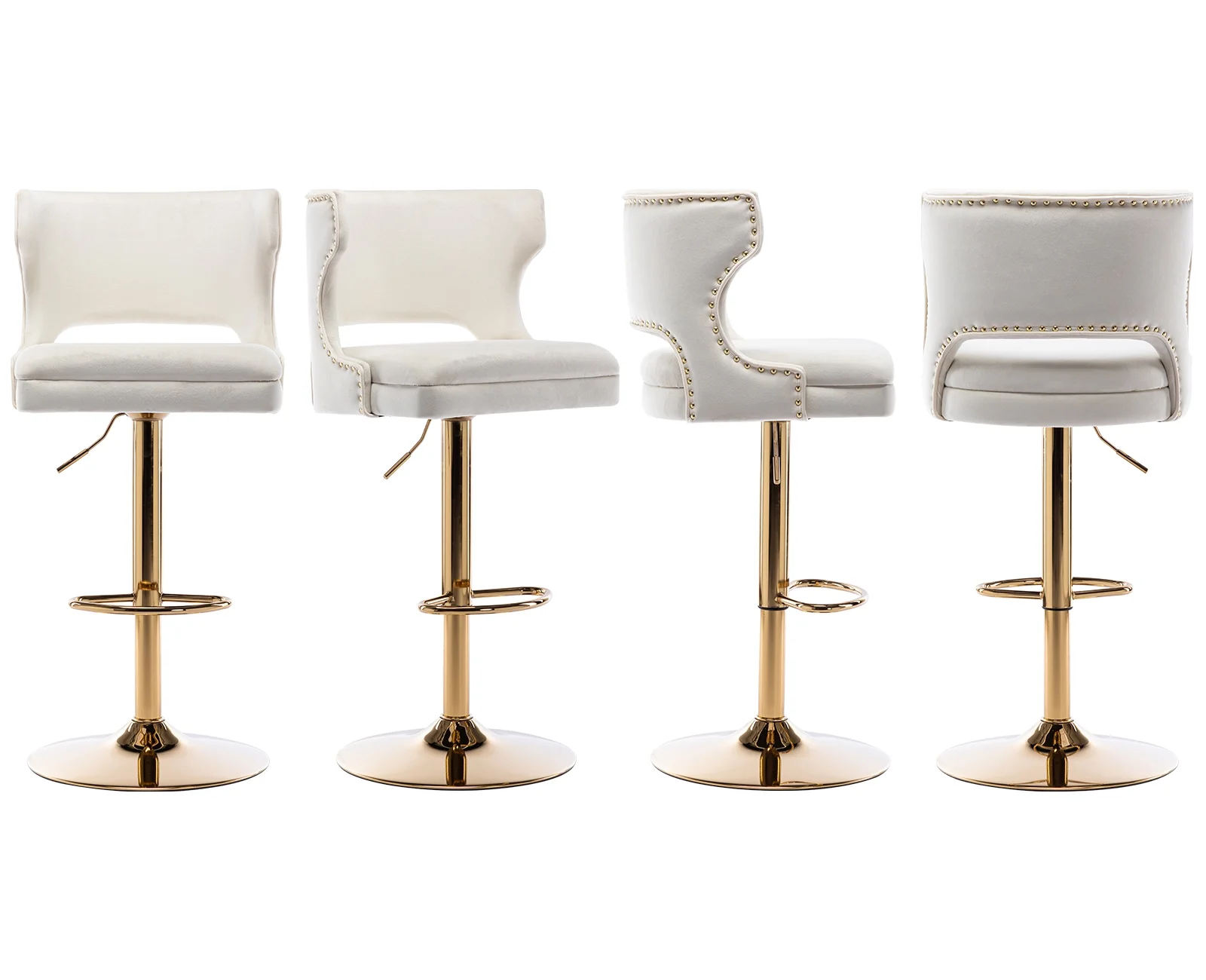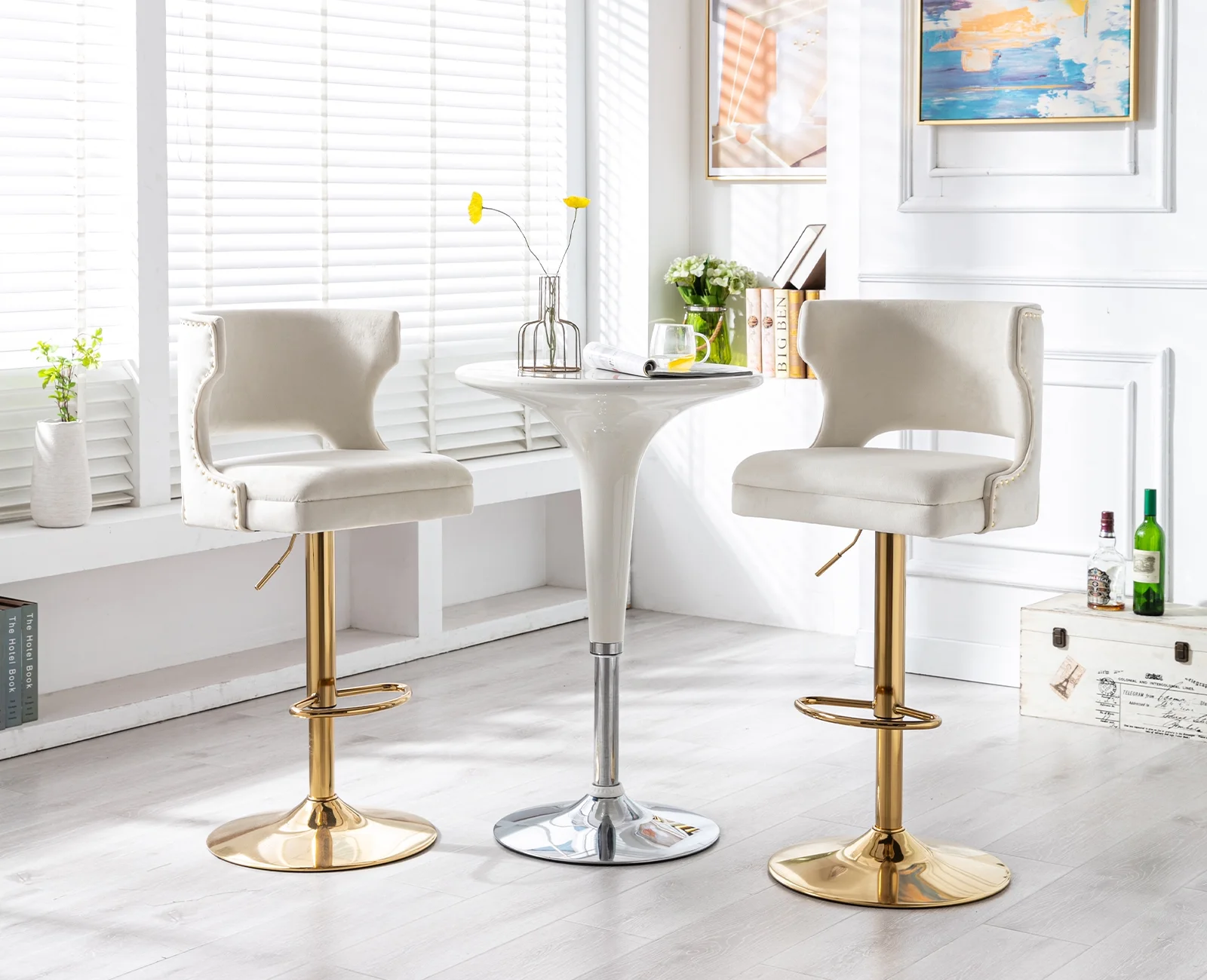Guyou Swivel Bar Stool Set of 2, Modern Upholstered Velvet Adjustable Height Counter Barstools with Open Back and Metal Base for Kitchen Island Restaurant Home Bar, Beige