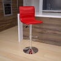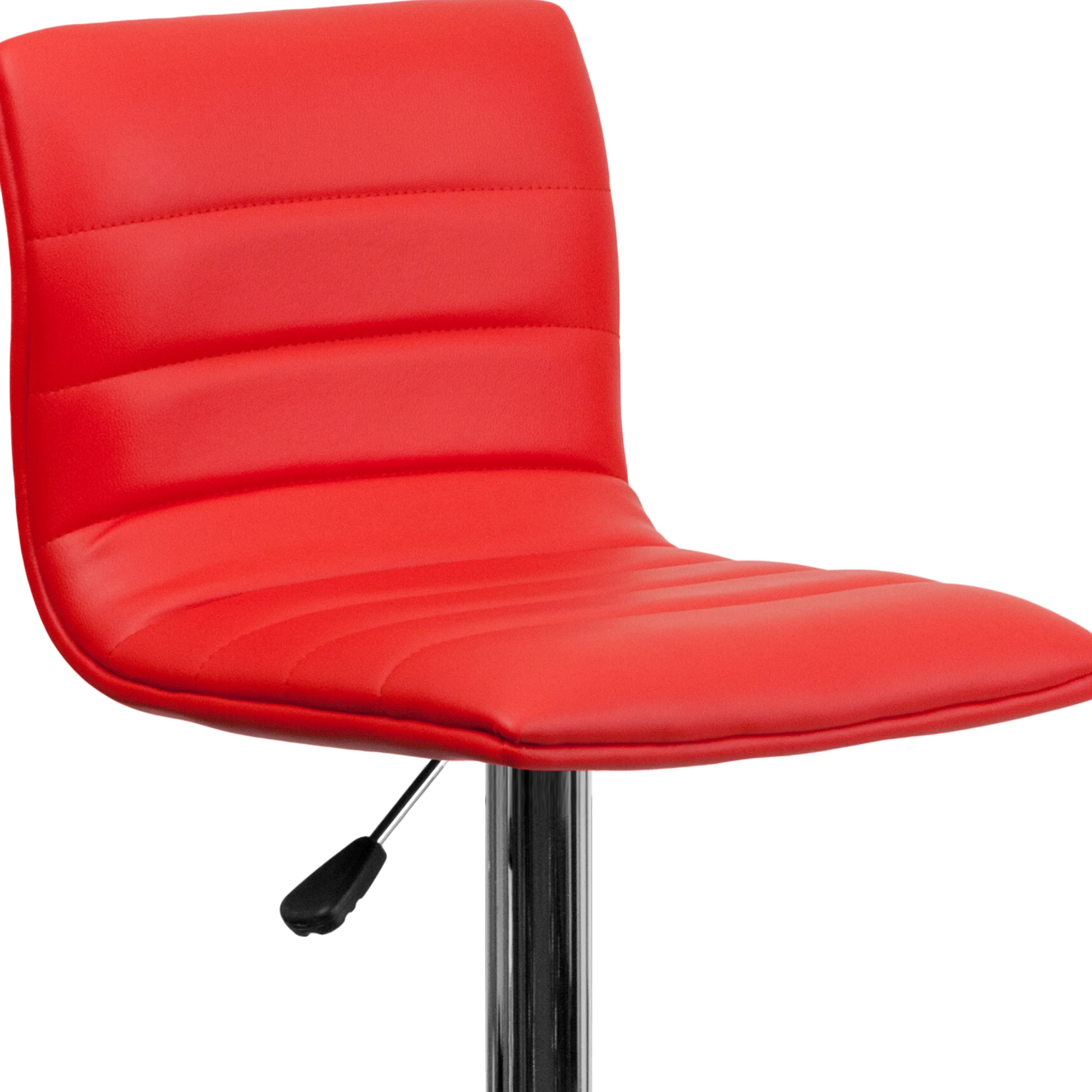 Emma + Oliver Coti Modern Channel Tufted Red Vinyl Upholstered Height Adjustable Mid-Back Stool and Chrome Pedestal Base with Footrest