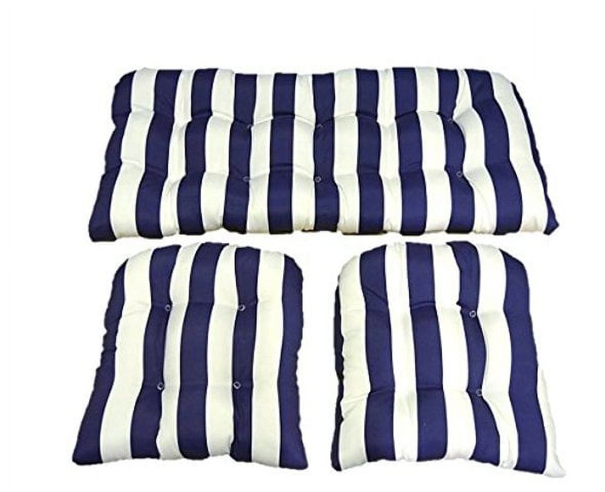 RSH Décor Indoor Outdoor 3 Piece Tufted Wicker Cushion Set, Standard, Navy Blue & White Stripe