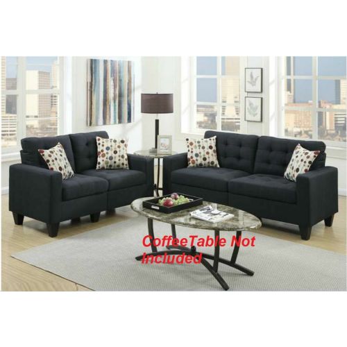 Living Room Furniture 2pc Sofa Set Black Polyfiber Tufted Sofa Loveseat w Pillows Cushion Couch Solid pine