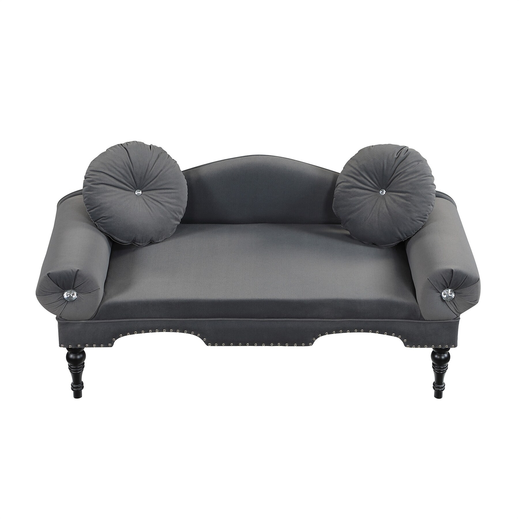 BESTCOSTY Modern Velvet Upholstered Sofa, Tufted Rolled Arm Accent Bedside Couch Grey