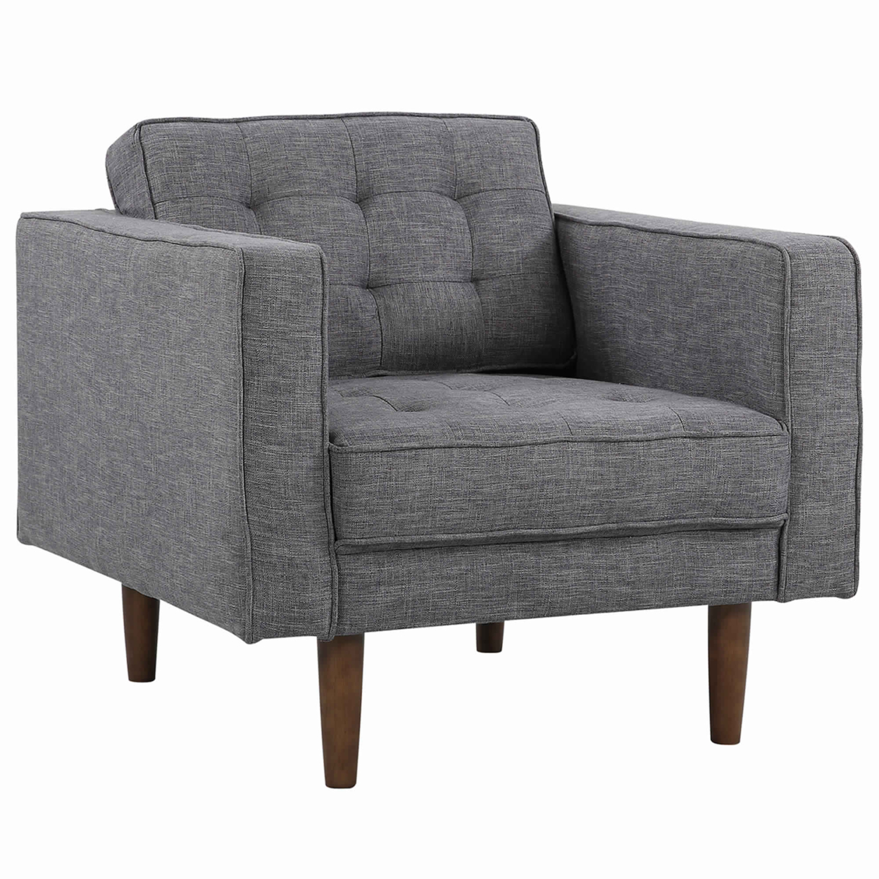 Mid Century Style Fabric Button Tufted Back Chair with Track Arms, Gray- Saltoro Sherpi