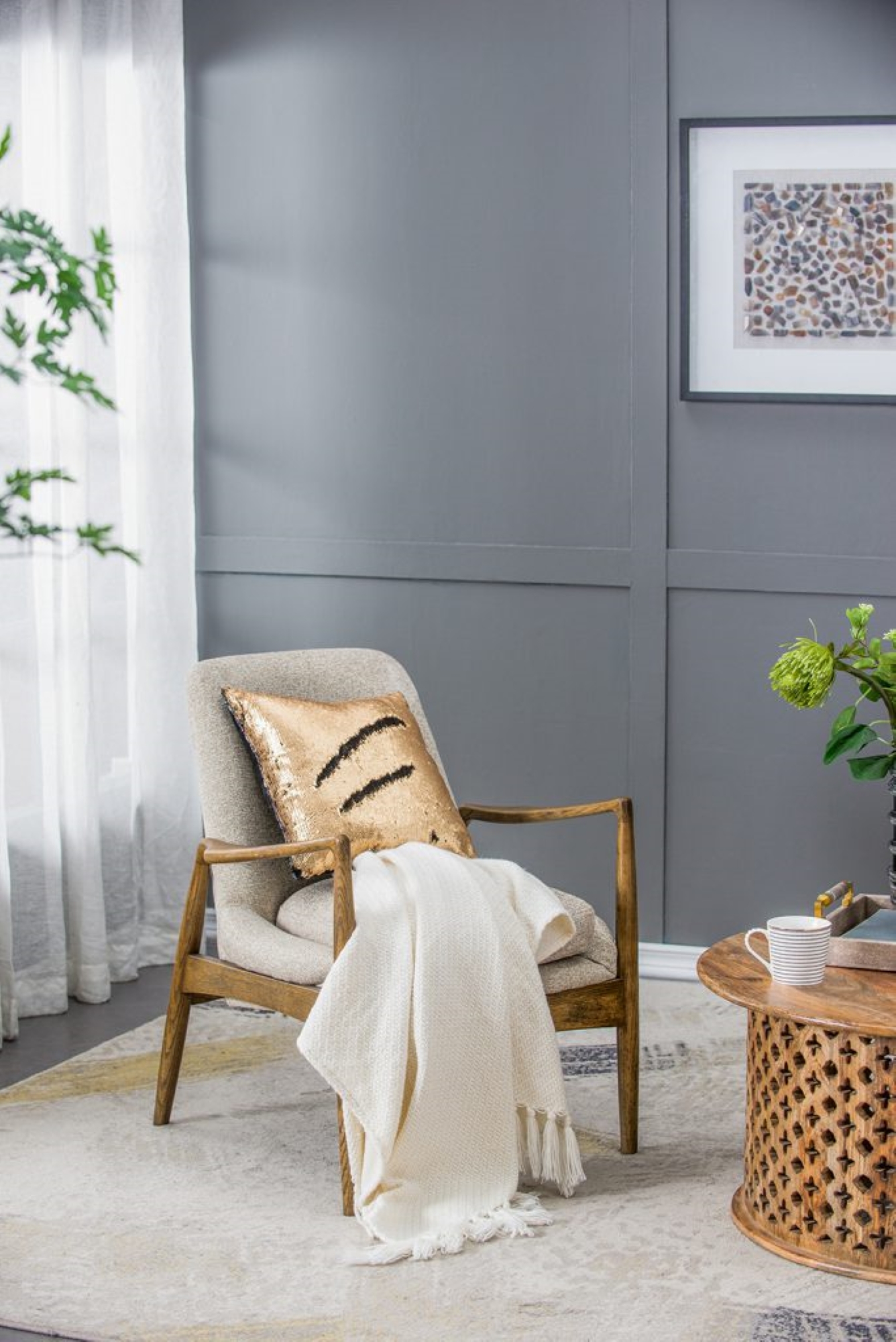 CC Home Furnishings Mid-century Modern Style Birch Wooden Accent Chair - 33.25" - Brown and Beige
