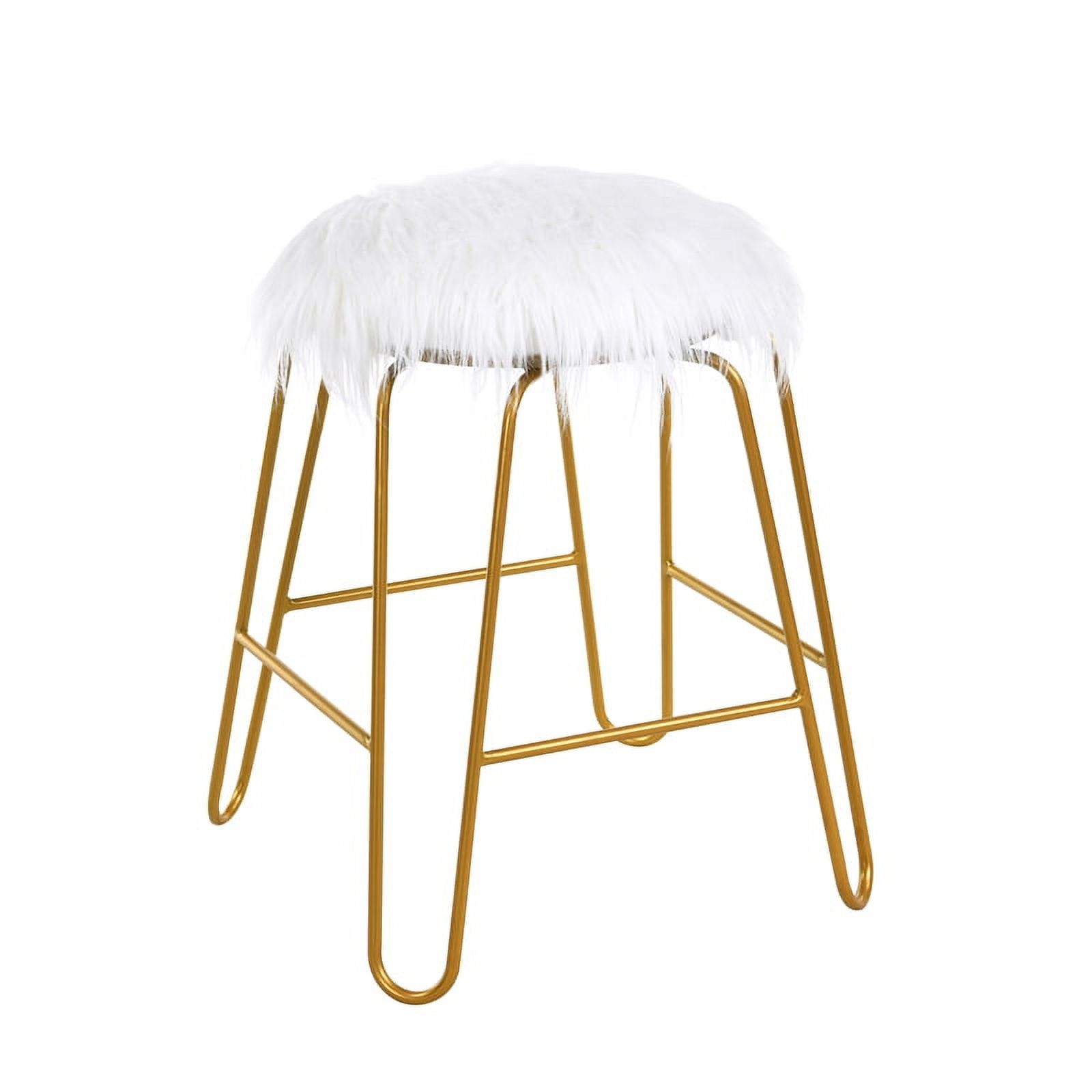 Pemberly Row Mid-Century Metal 18" Vanity Chair in White Faux Fur and Gold