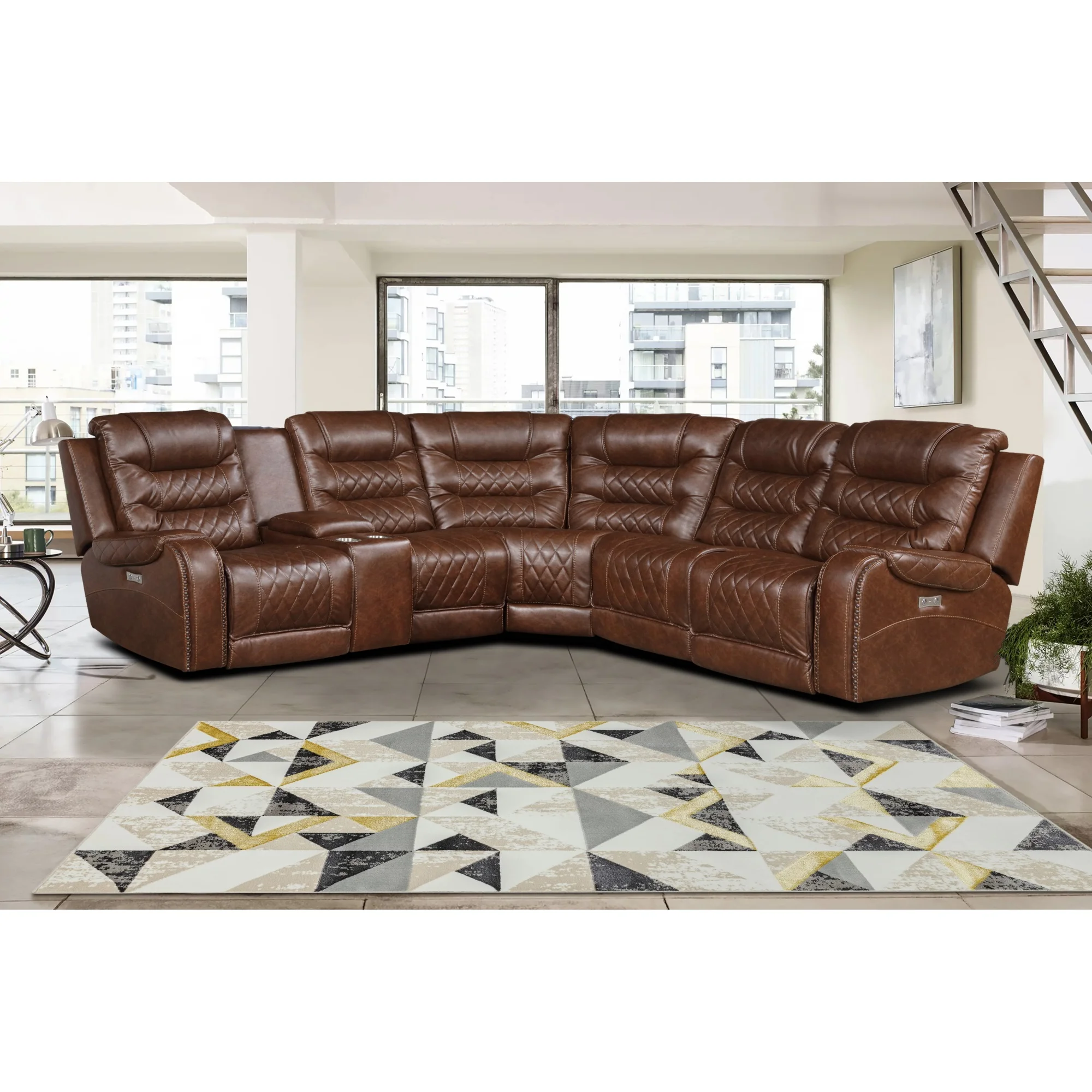 Bergen 100 in. W Pillow Top Arm Microfiber 6-Piece L-Shaped Modular Power Reclining Sectional in Brown