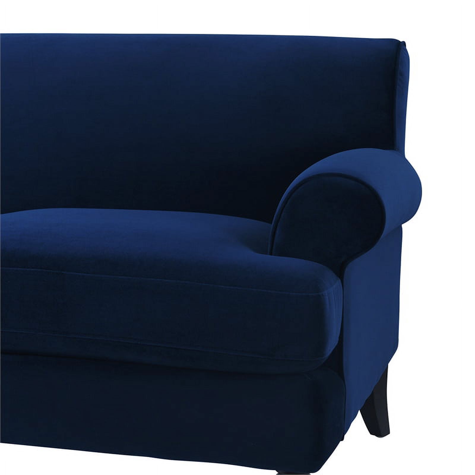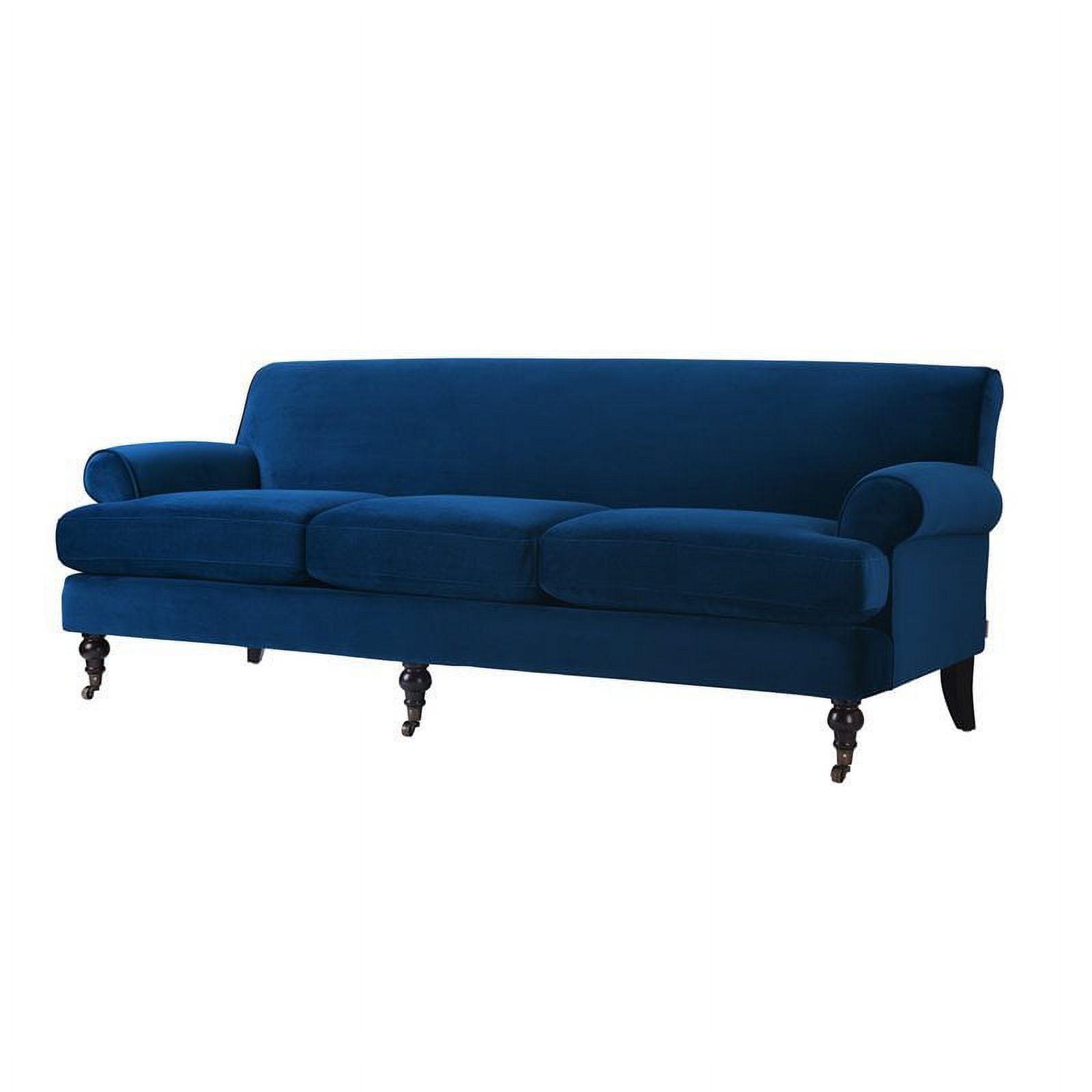 Maklaine Contemporary Hardwood Sofa with Metal Casters in Navy Blue