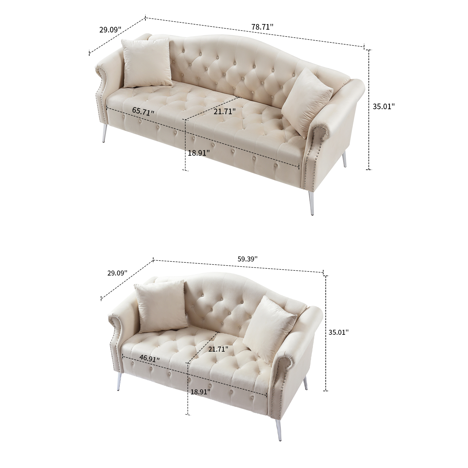 Velvet Loveseat Sofa with Nail Head Trimming and Tufted Design - Elevate Your Space
