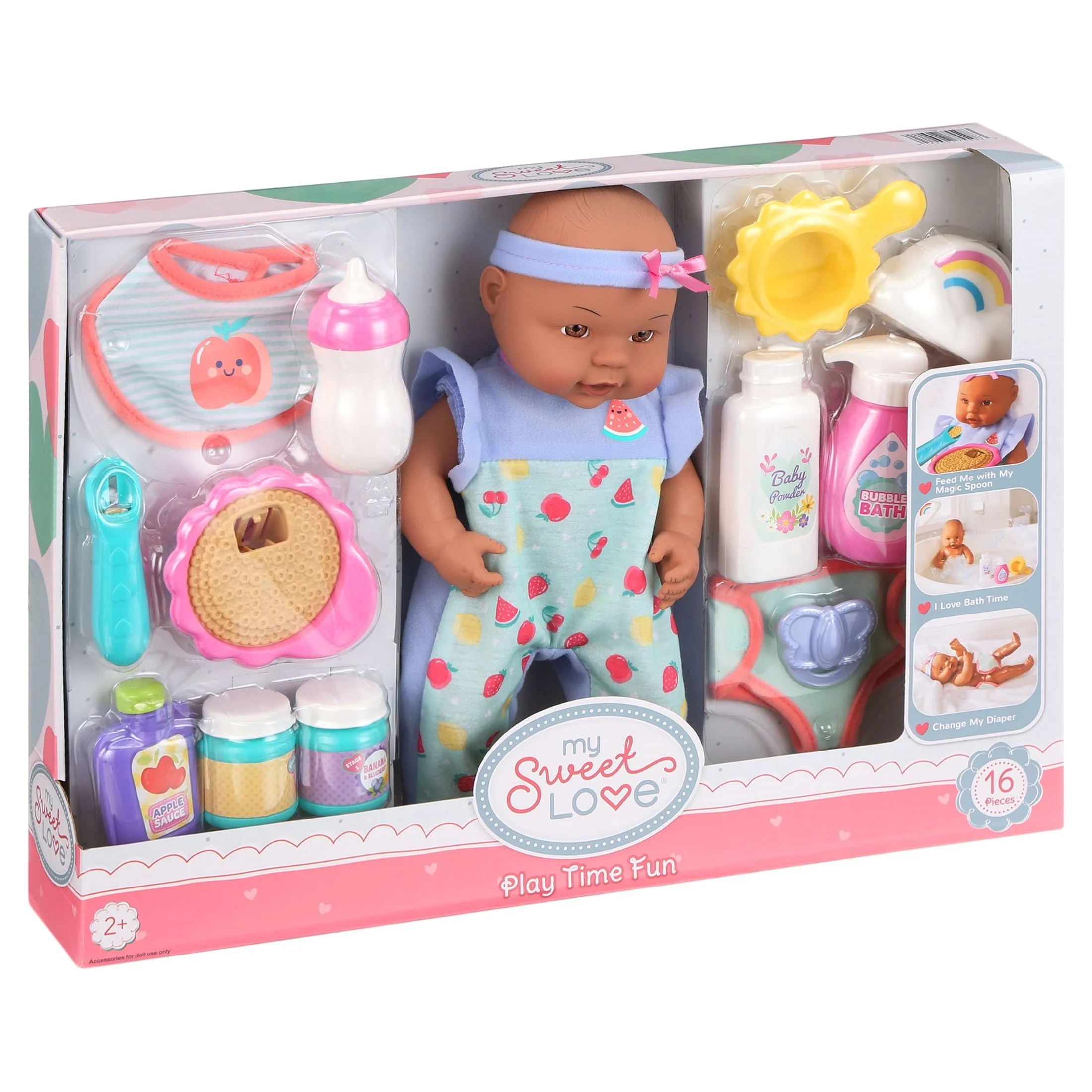 My Sweet Love 12.5 inch Play with Me Play Set, 16 Pieces Included, Dark Skin Tone, Brown Eyes
