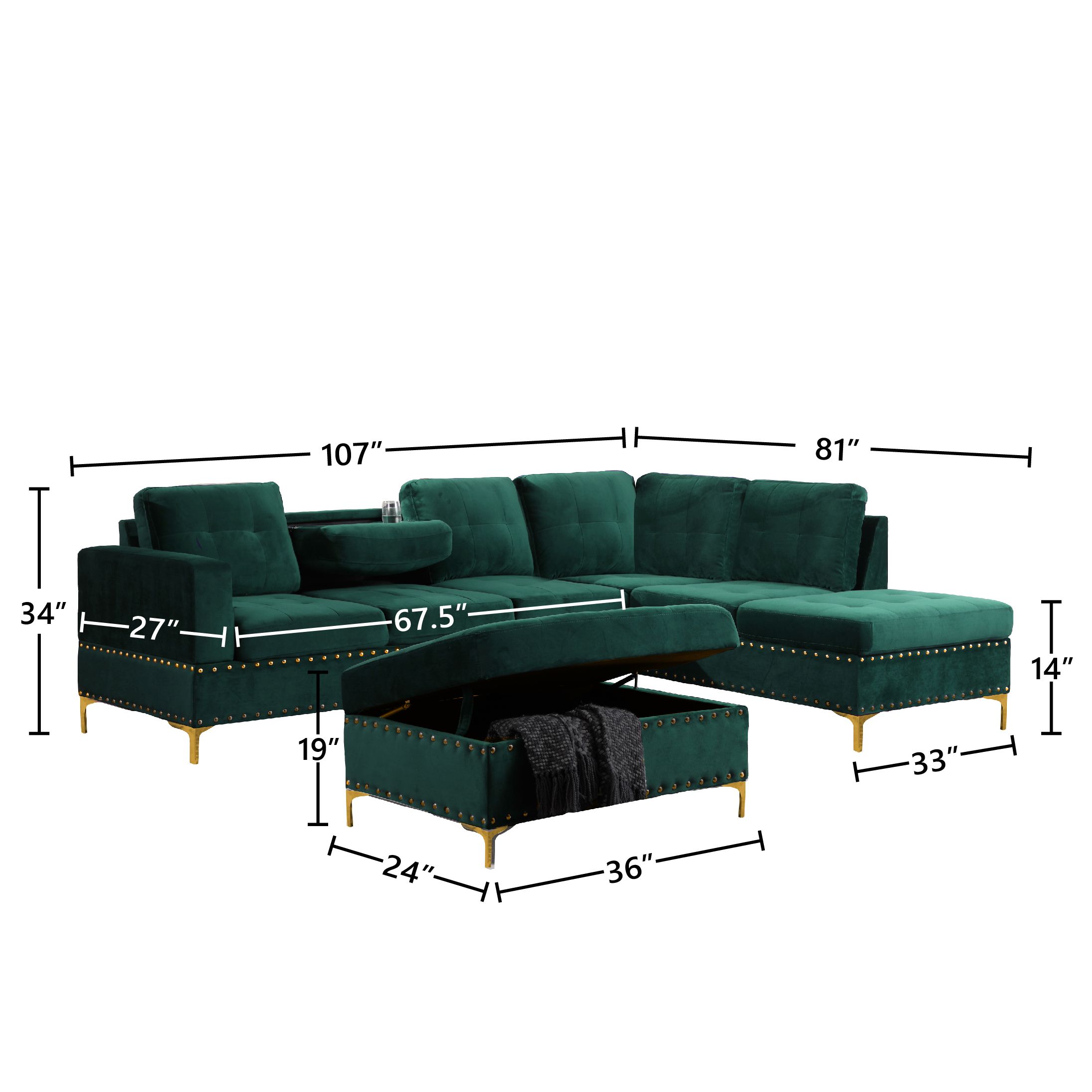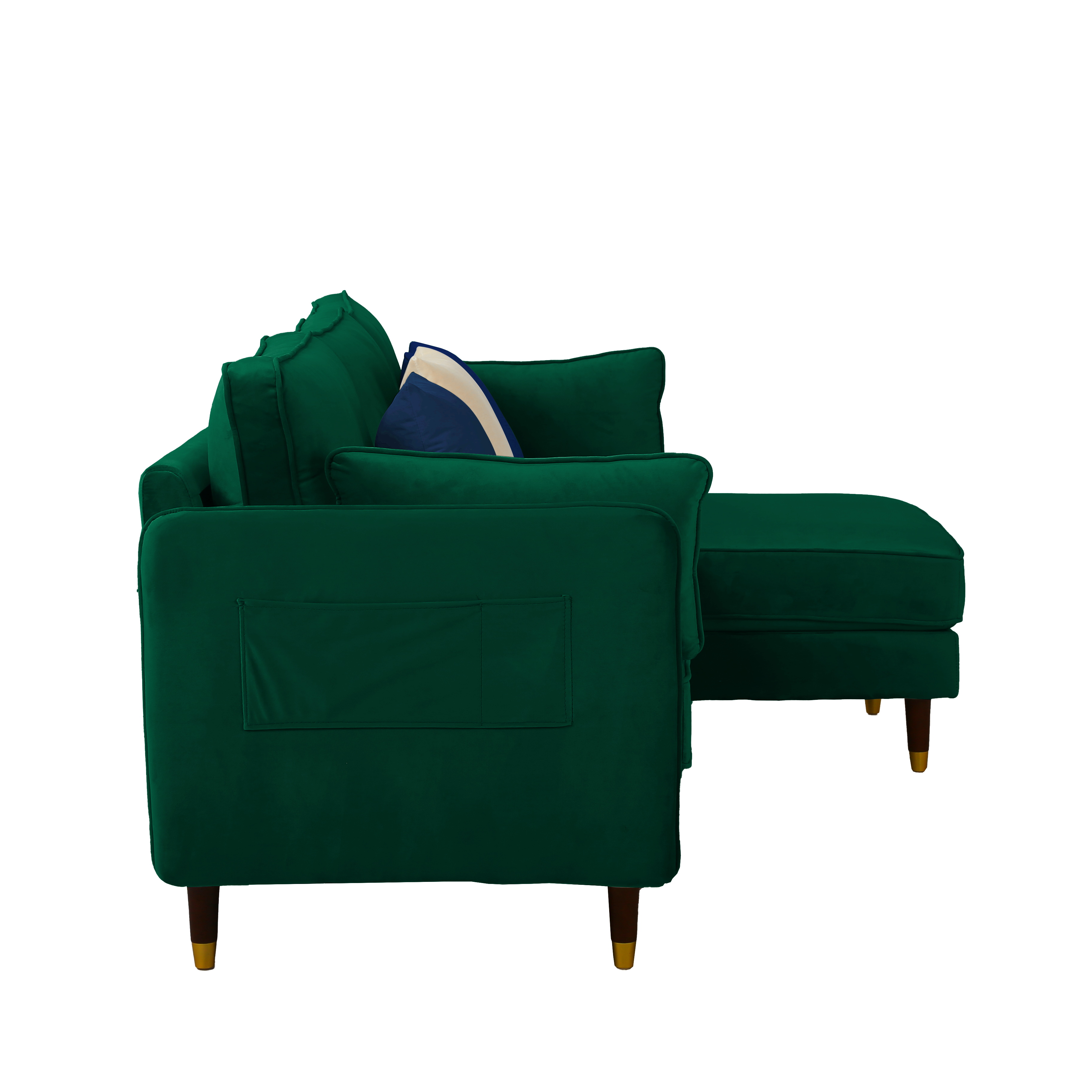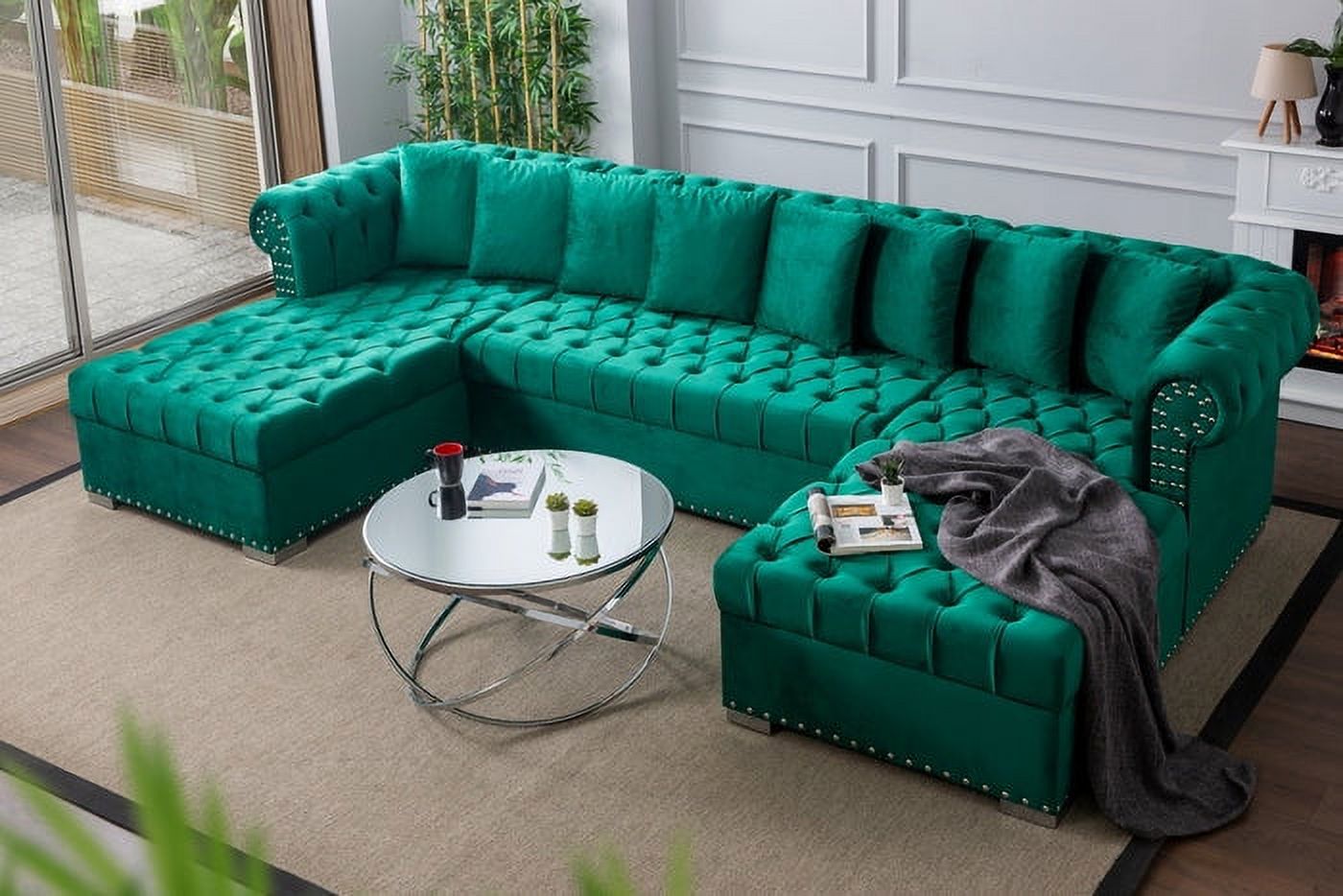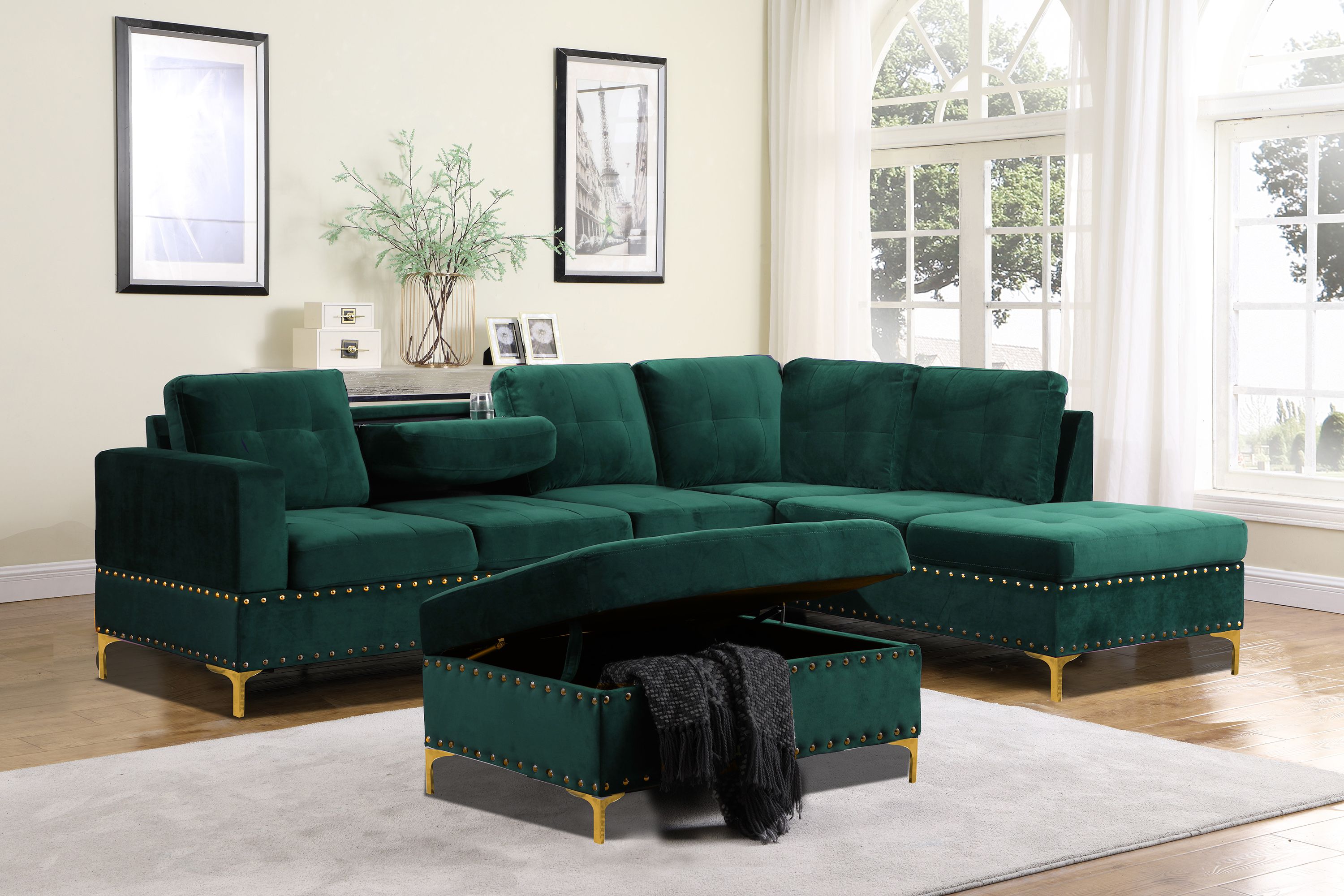 Steighaus Velvet Reversible Sectional with Storage Ottoman (Blue/ Gray/ Green)