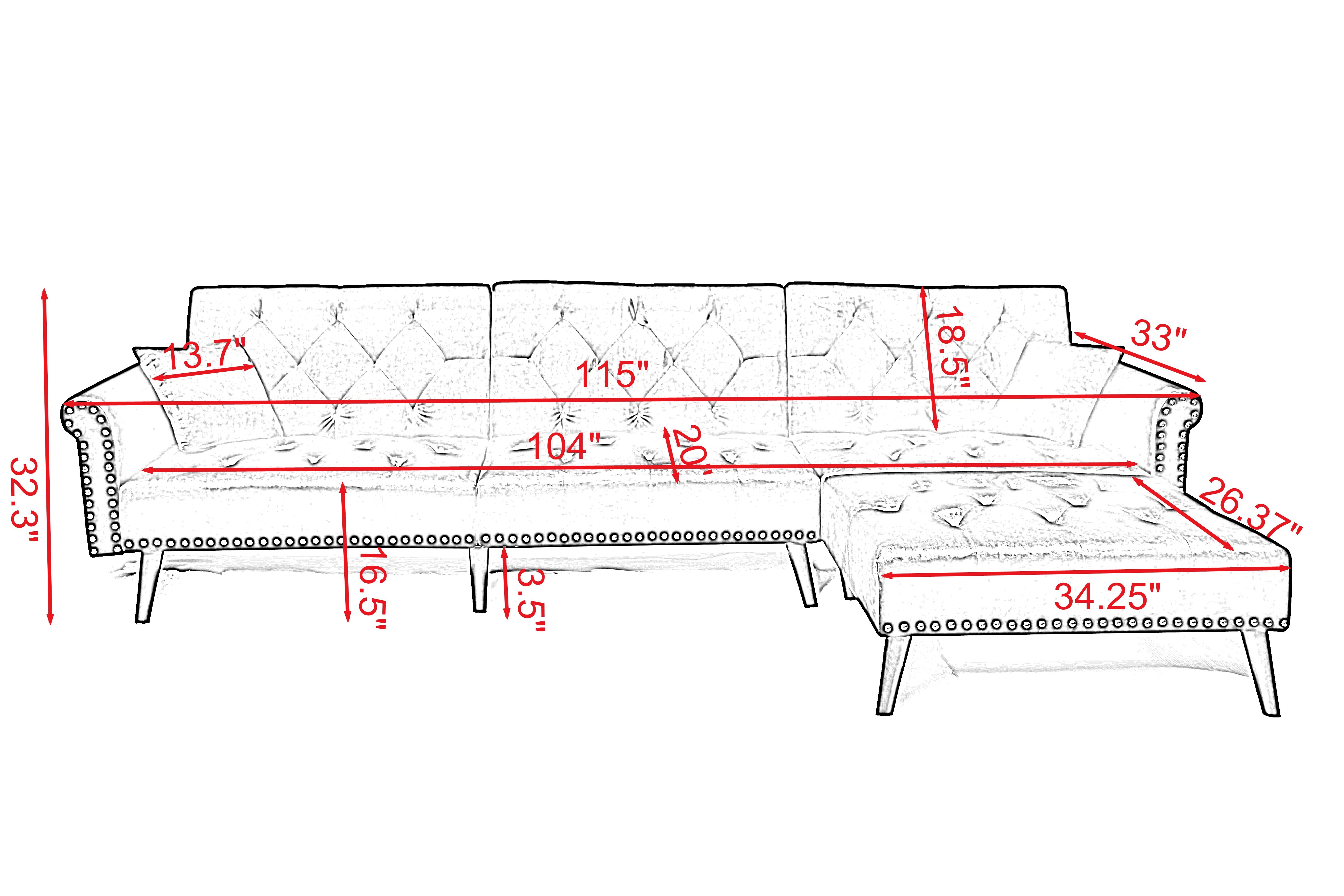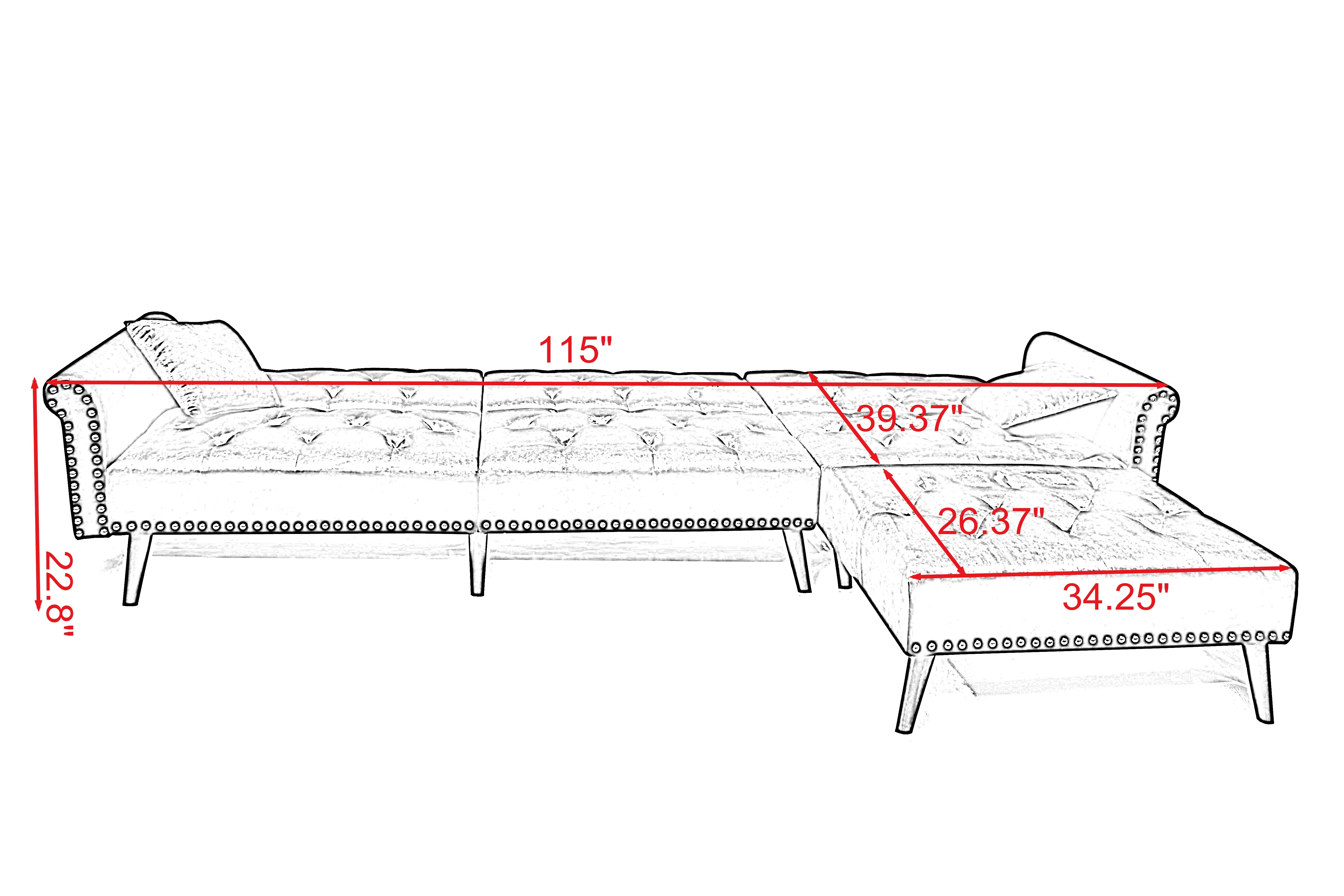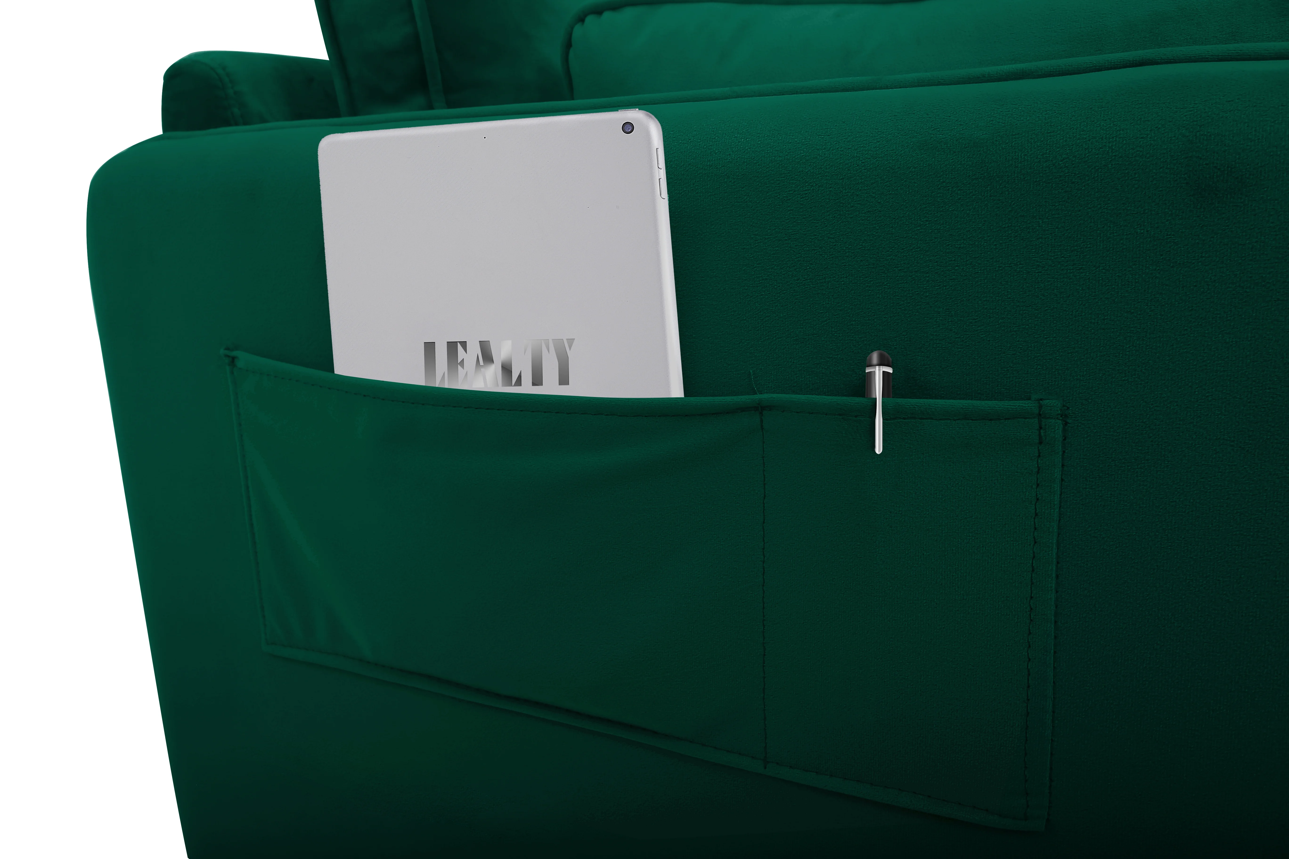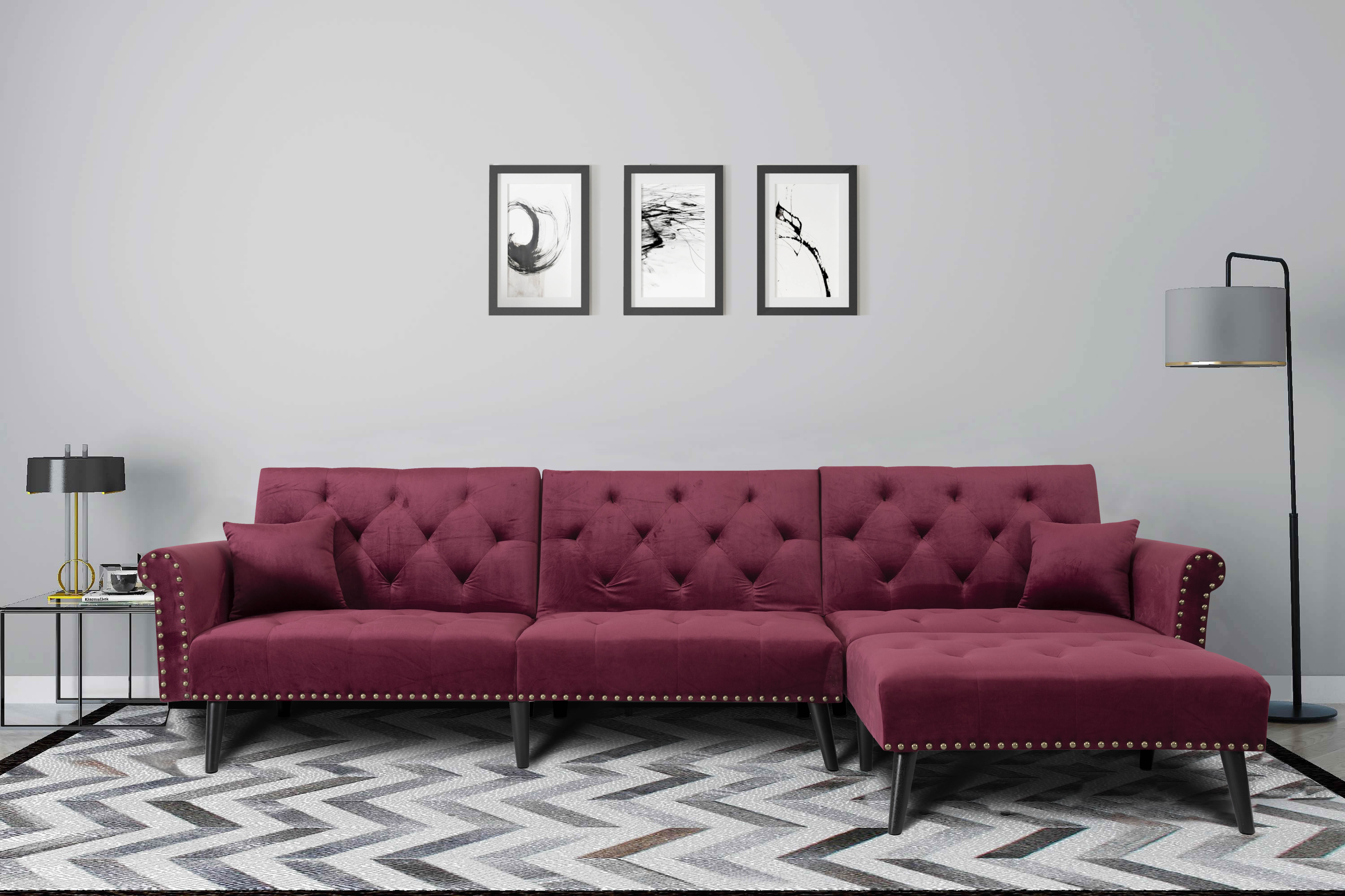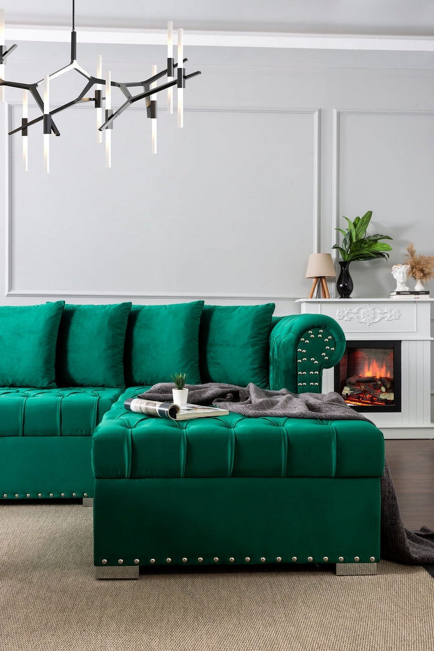 Steighaus Velvet Reversible Sectional with Storage Ottoman (Blue/ Gray/ Green)