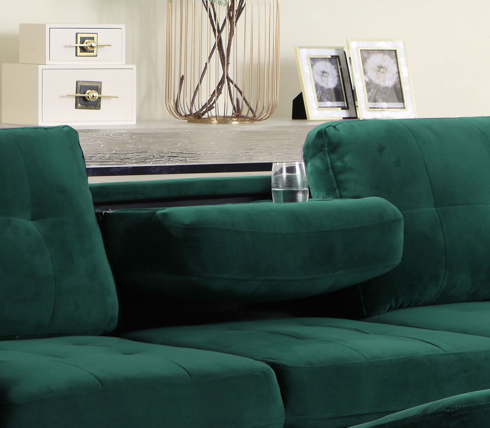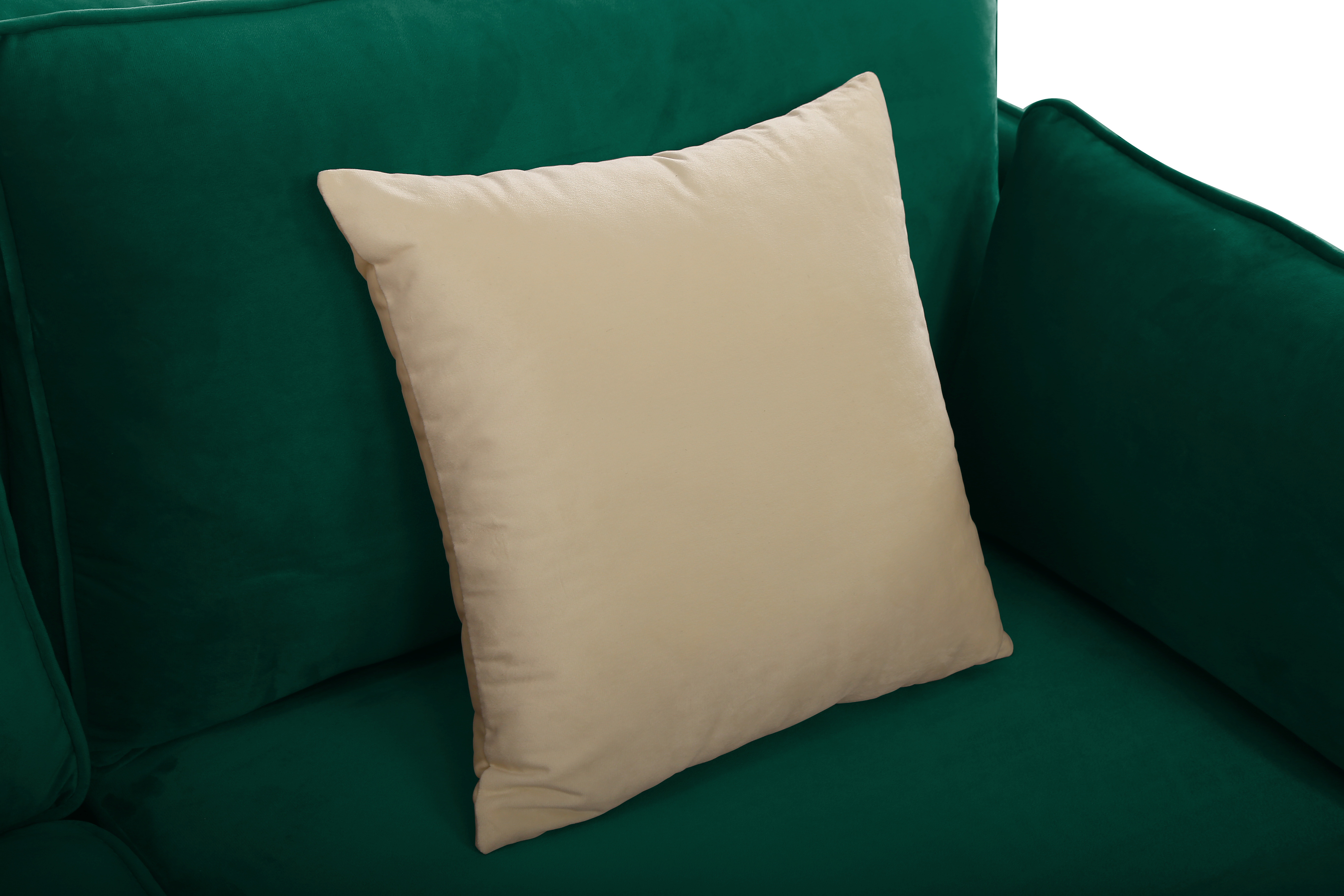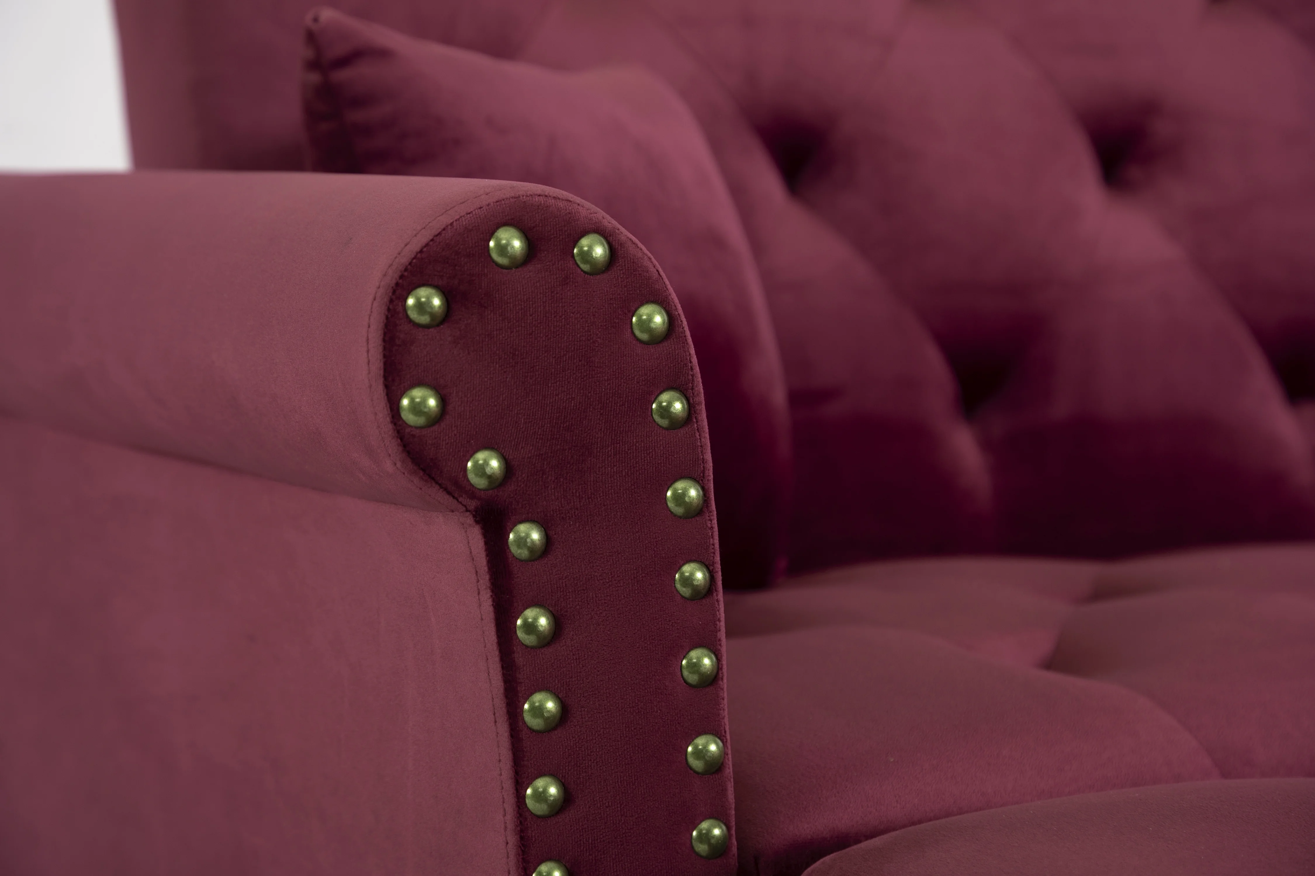 Benjara Reno Joni 74 Inch Modern Loveseat, Chesterfield, Velour, Beige, Gold