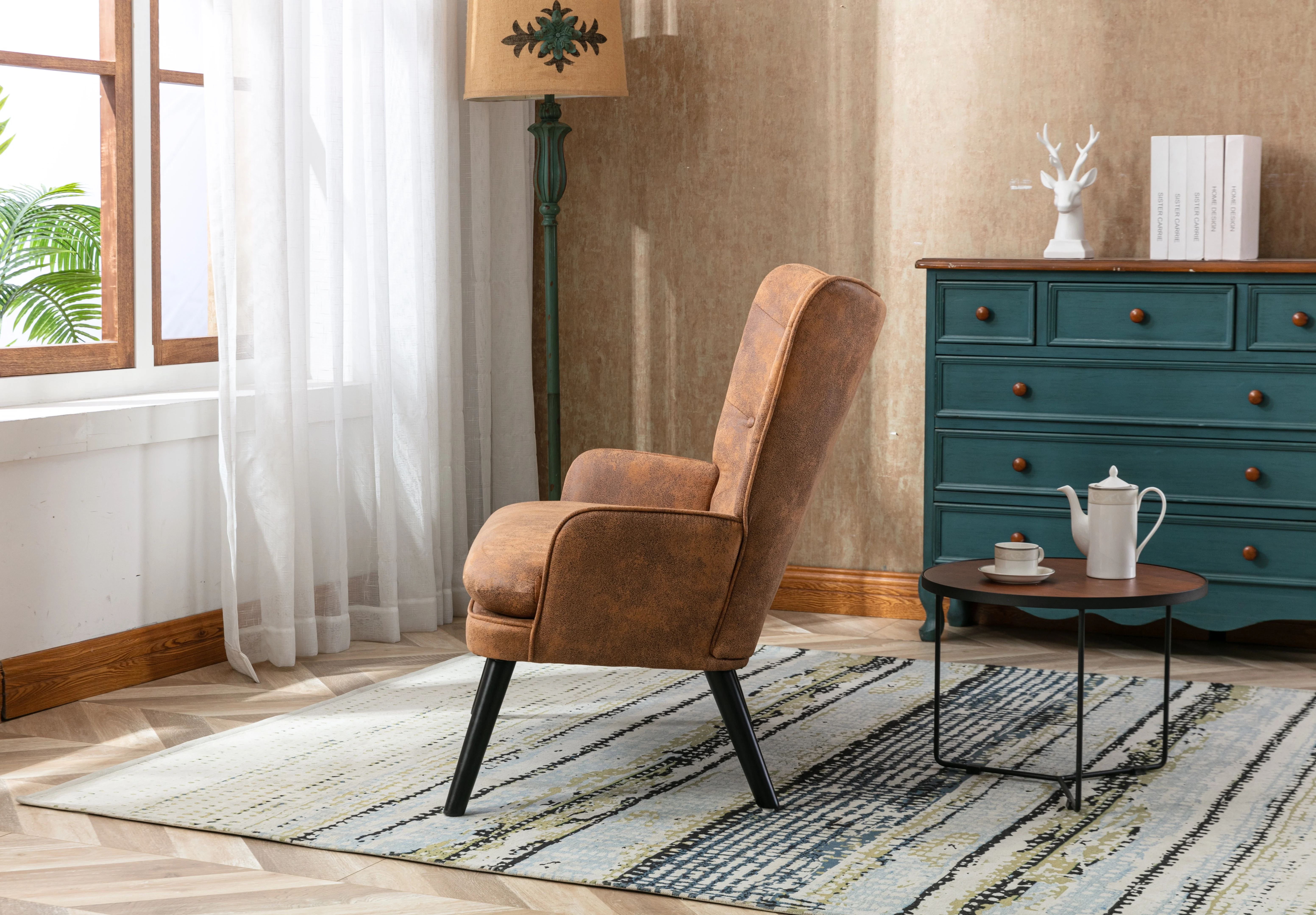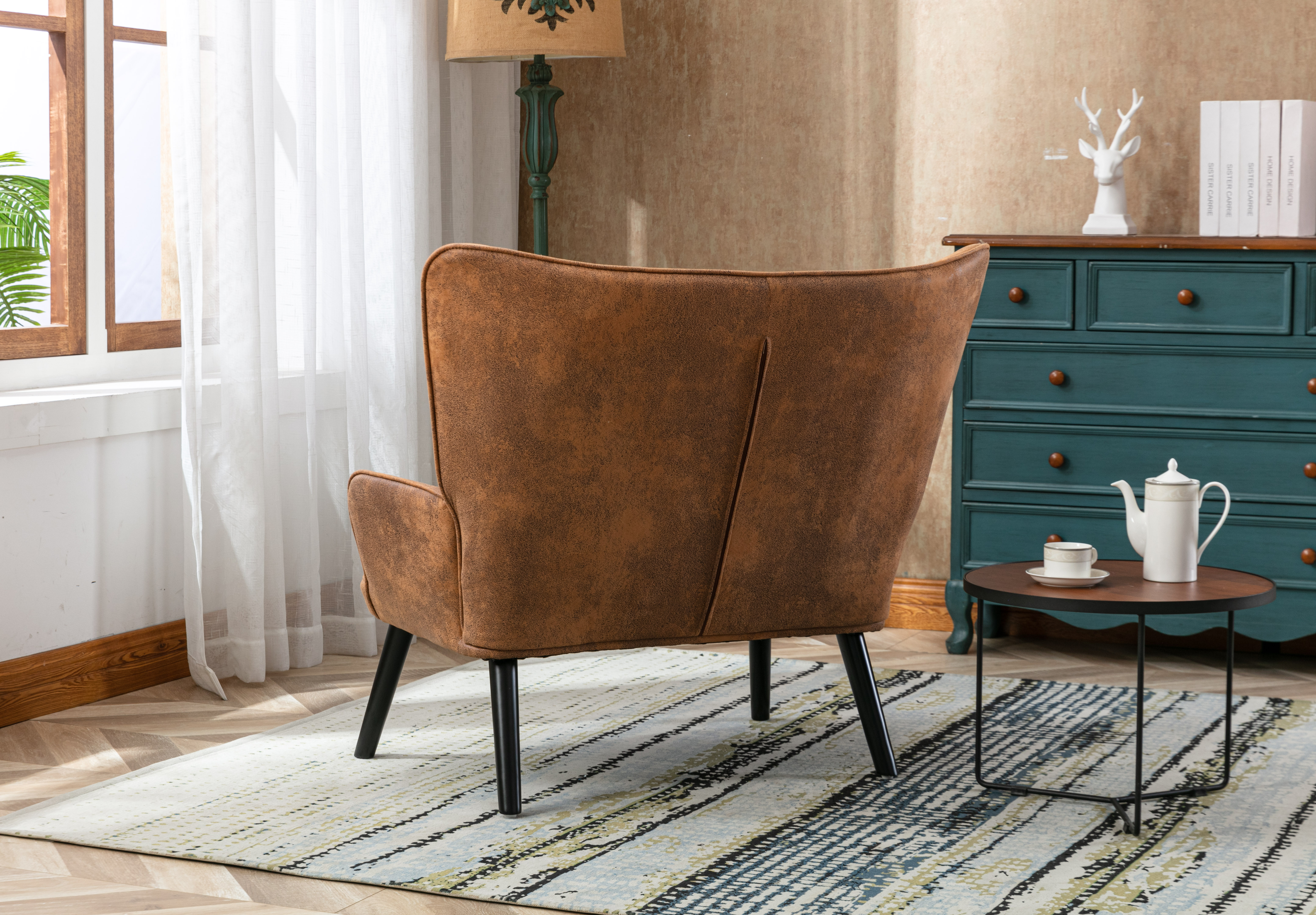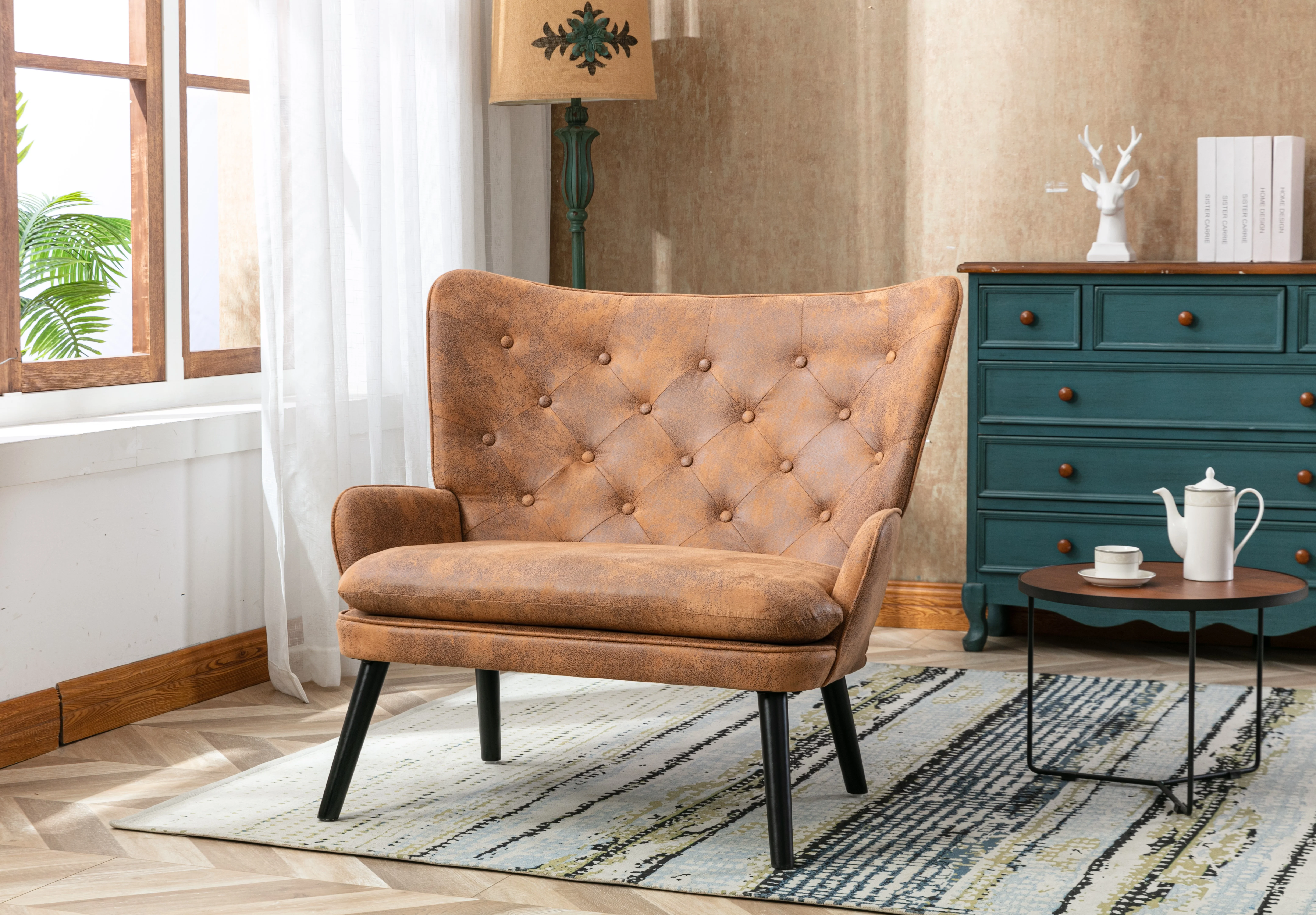 High Back Accent Chair .Comfortable Loveseat Fabric Padded Seat .Modern High Back Arm-sofa