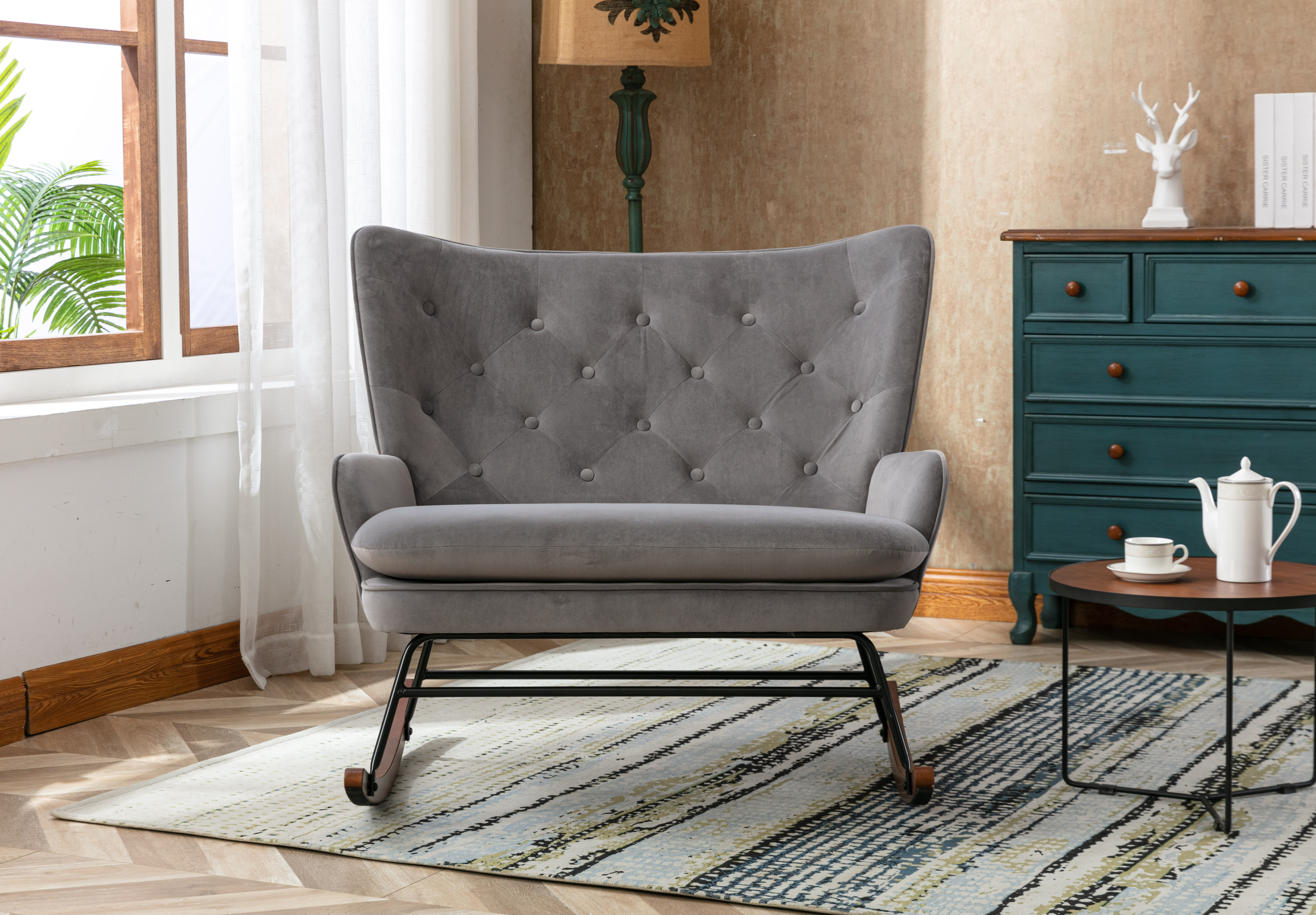 High Back Rocking Sofa Nursery Sofa .Comfortable Rocker Fabric Padded Seat .Modern High Back Arm-sofa