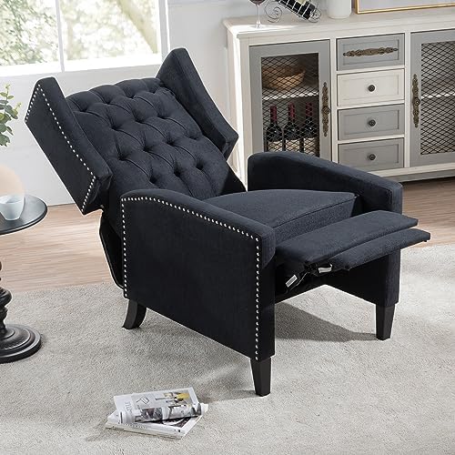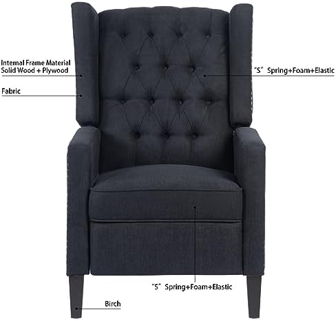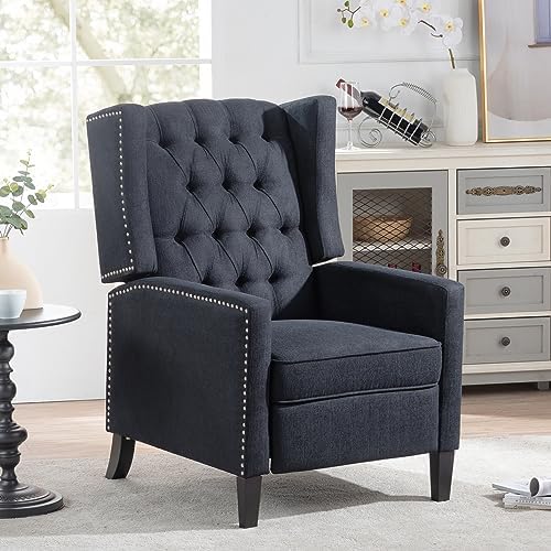 TJUNBOLIFE 27" Wide Recliner Chair Manual Wingback Recliner Chair with Nailhead Trim and Birch Legs Tufted Single Sofa Vintage Chair for Home Living Room Office Bedroom Gray