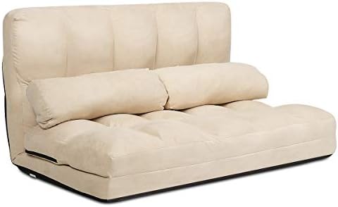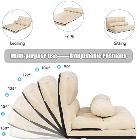 RUNFAYBIU Floor Folding Couch and Futon Sofa 6-Position Fabric Sleeper Sofa Bed with 2 Pillows and Sponge Filling Adjustable Lazy Sofa for Living Room and Bedroom(Gray)