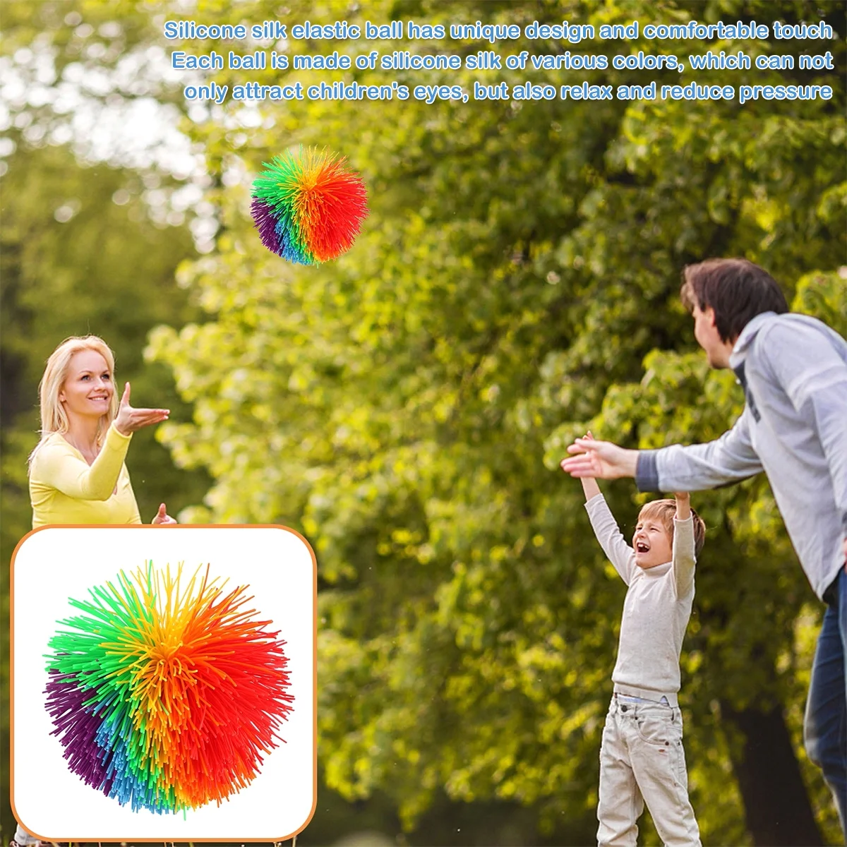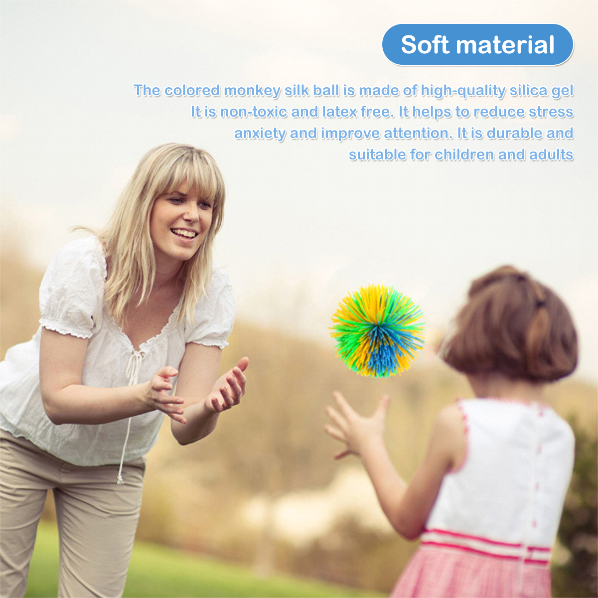 Hands DIY 12pcs Monkey Stringy Balls Stress Relief Silicone Monkey Stringy Balls BPA-free Sensory Rainbow Splat Balls Anxiety Reduce Fluffy Rainbow Balls for Children Adults