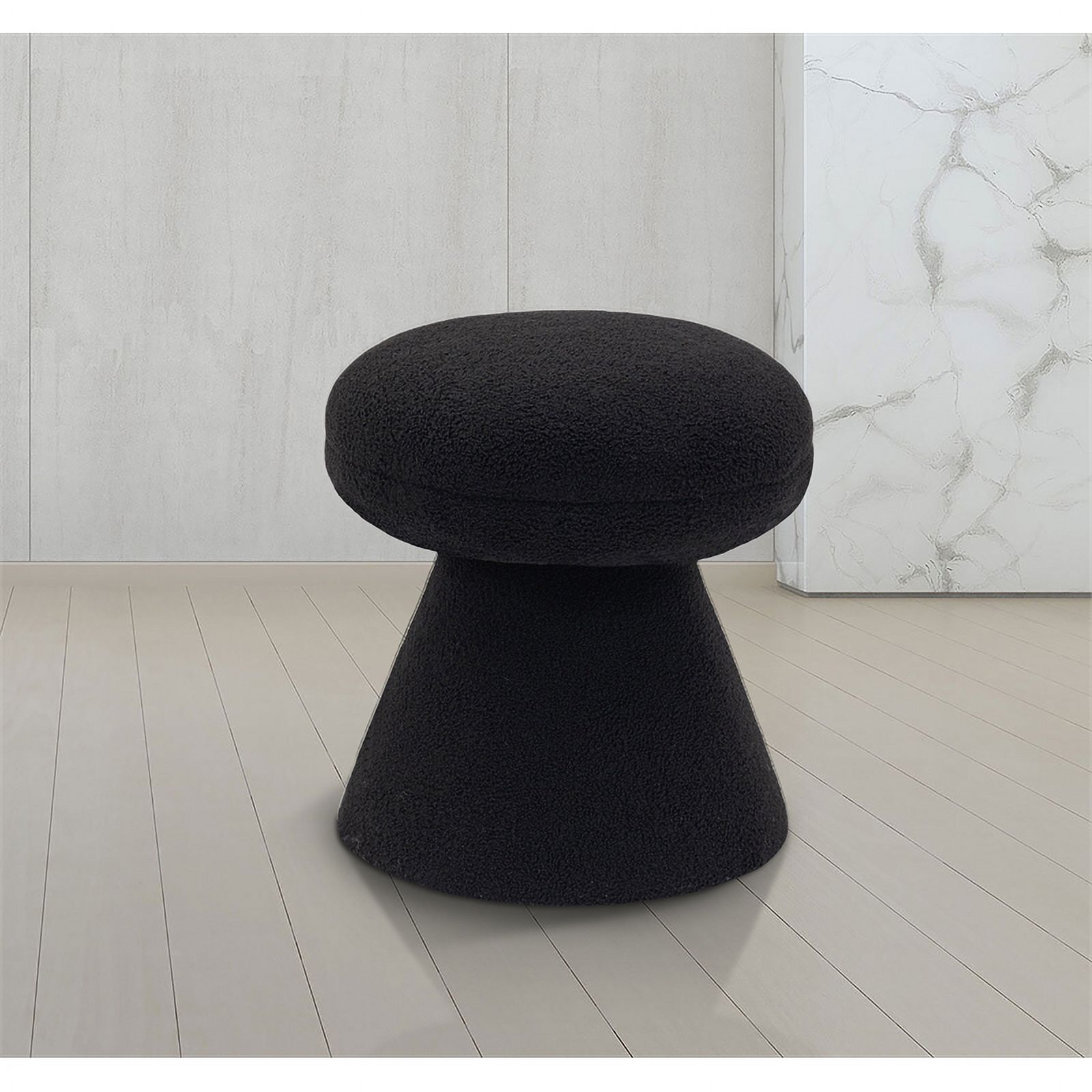 Meridian Furniture Drum Black Faux Shearling Teddy Fabric Ottoman/Stool