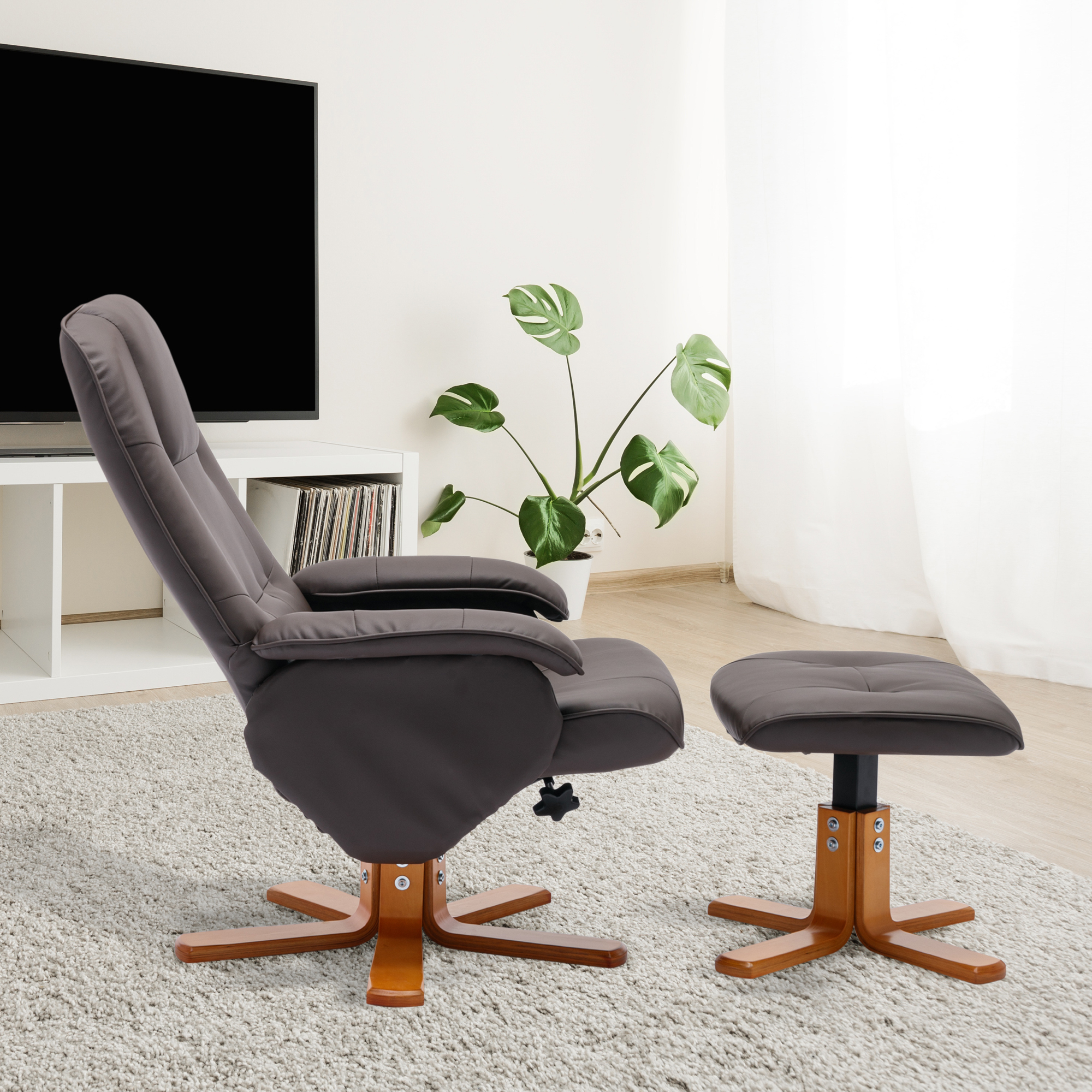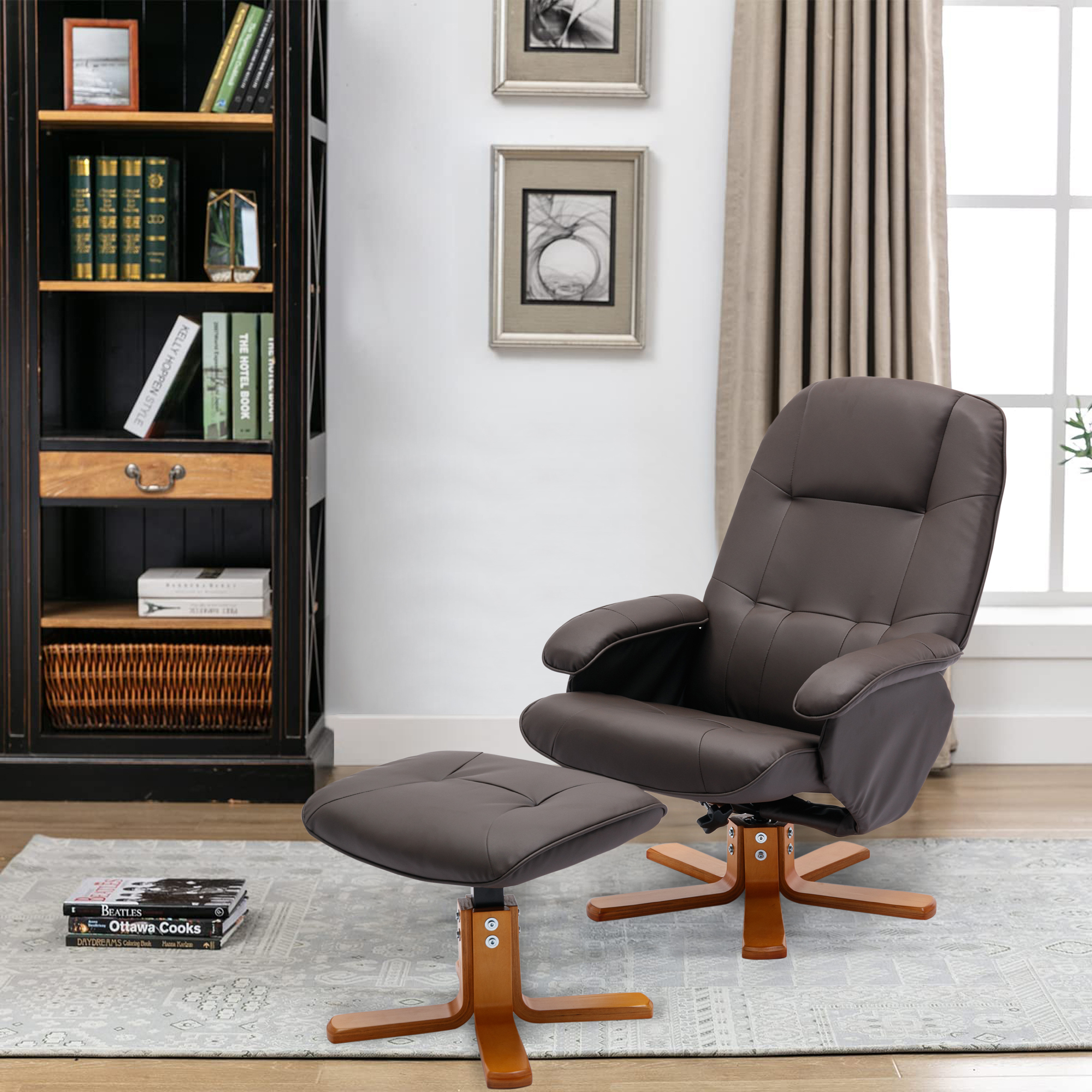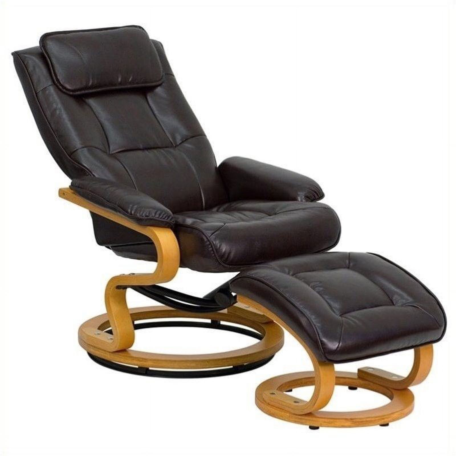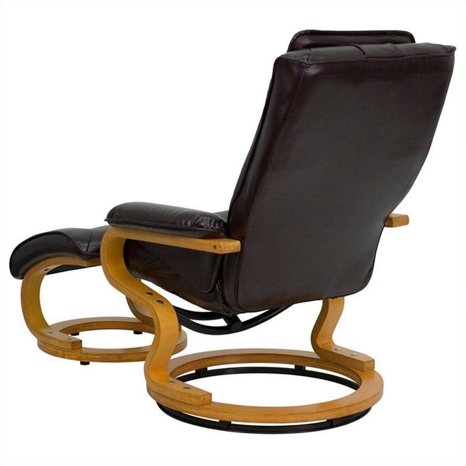 Bowery Hill Contemporary LeatherSoft Plush Arms Recliner and Ottoman in Brown