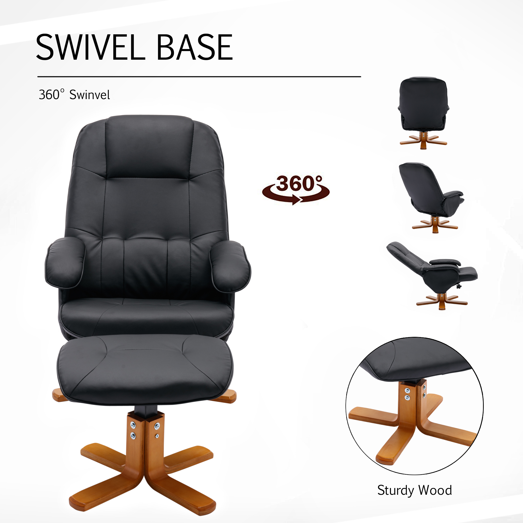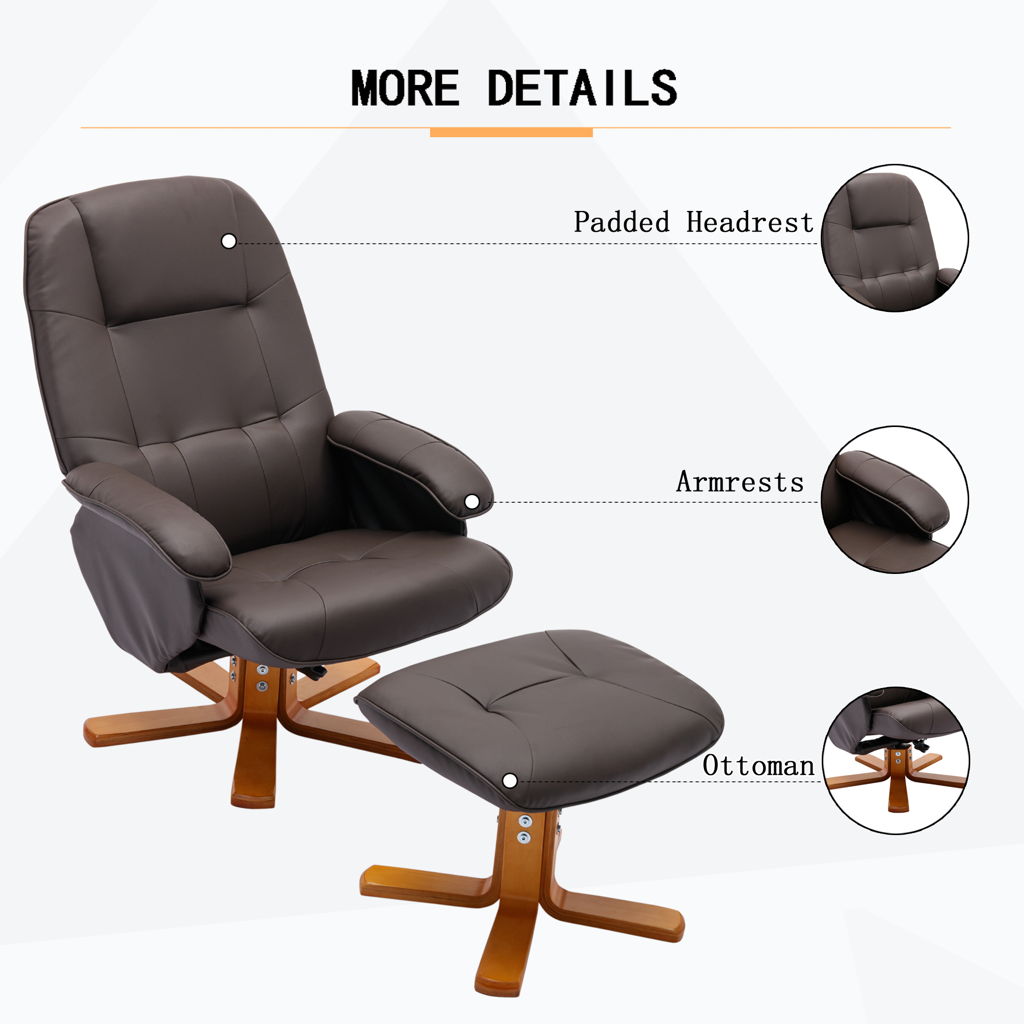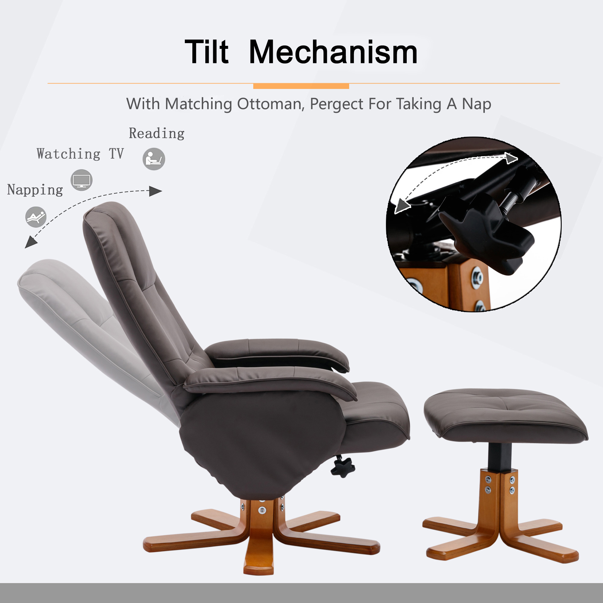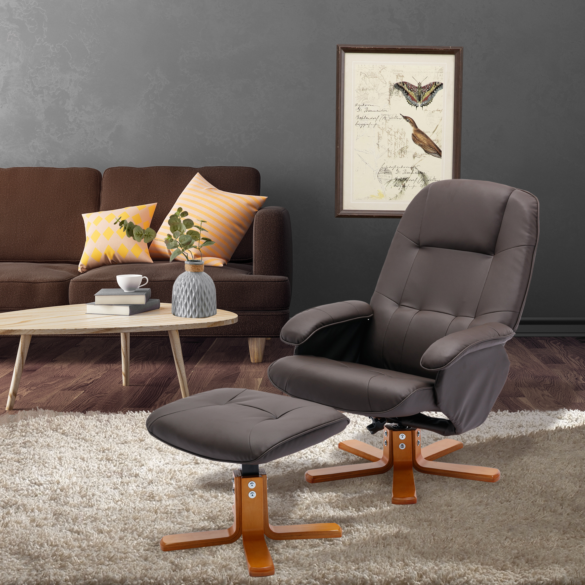 Bowery Hill Contemporary LeatherSoft Plush Arms Recliner and Ottoman in Brown