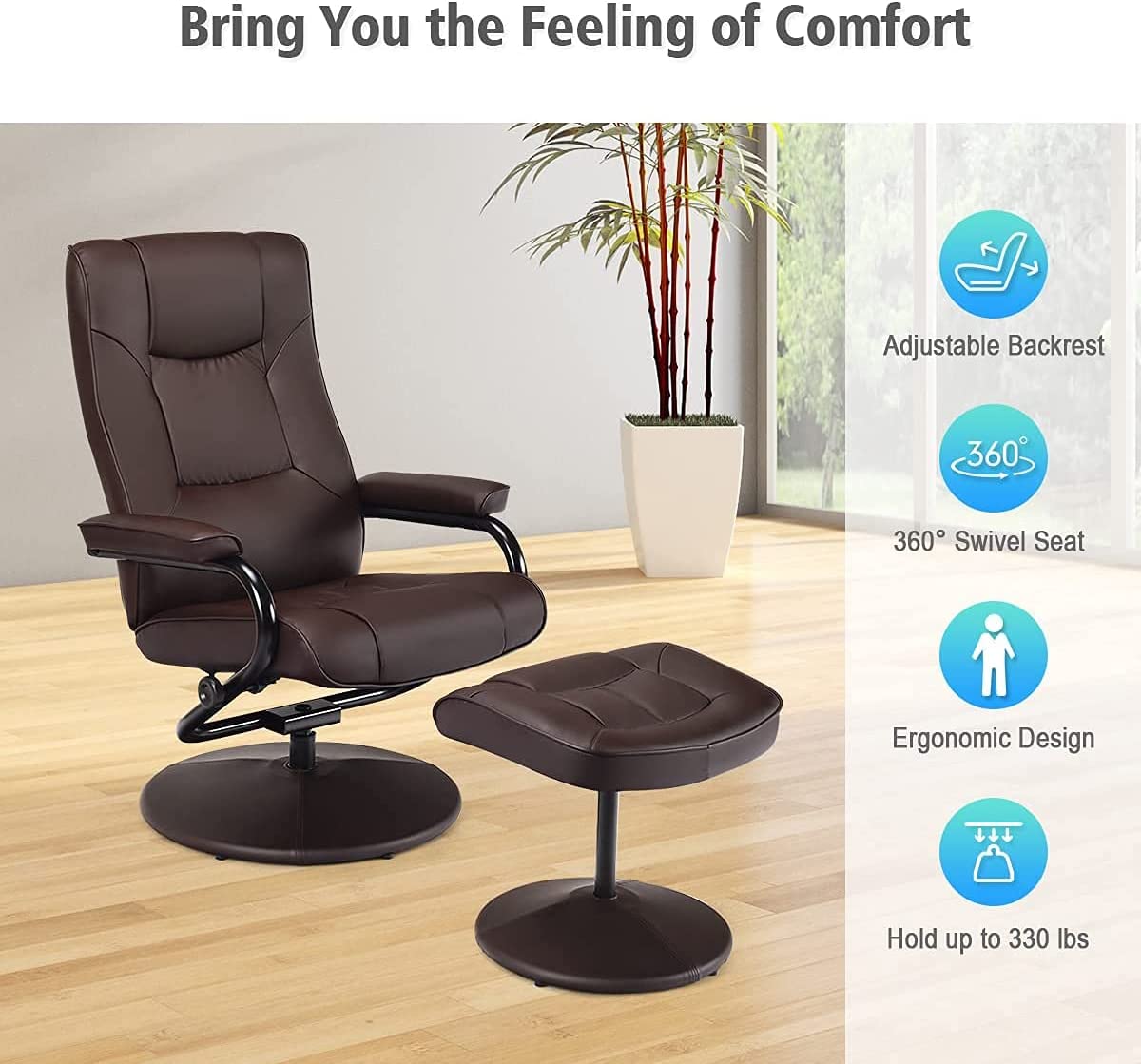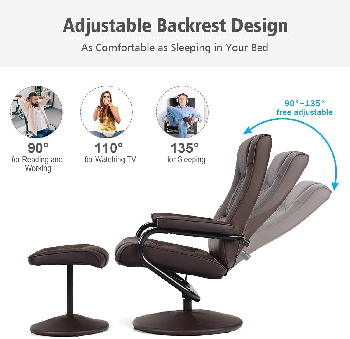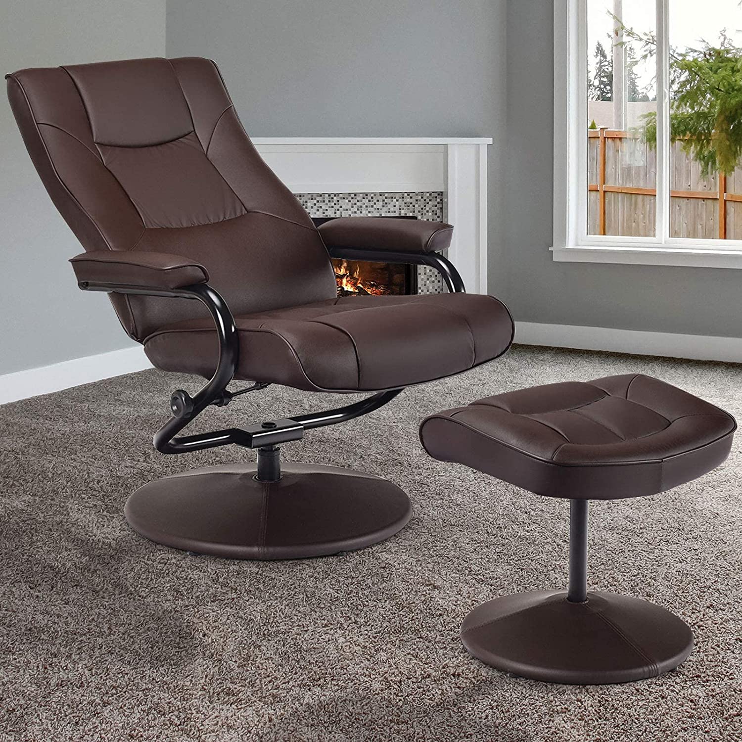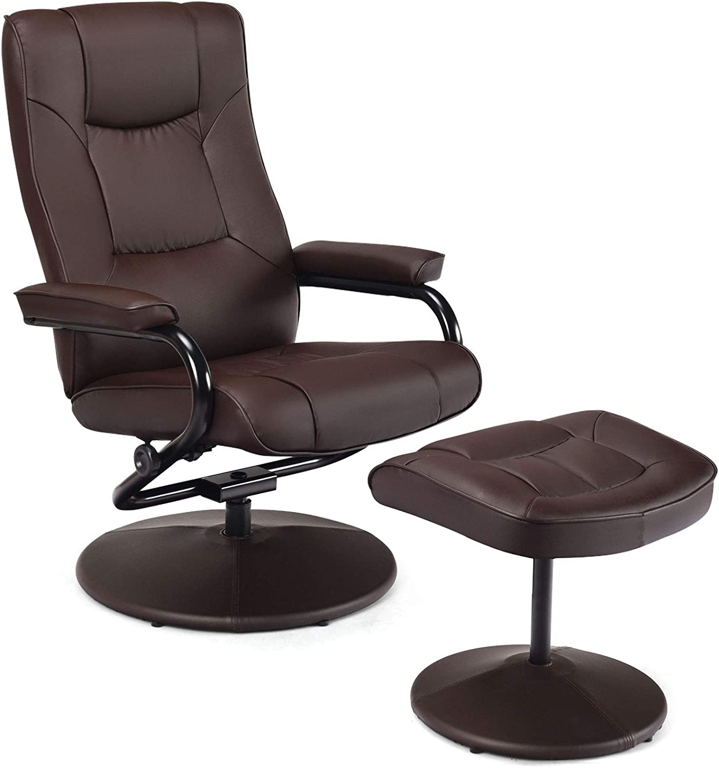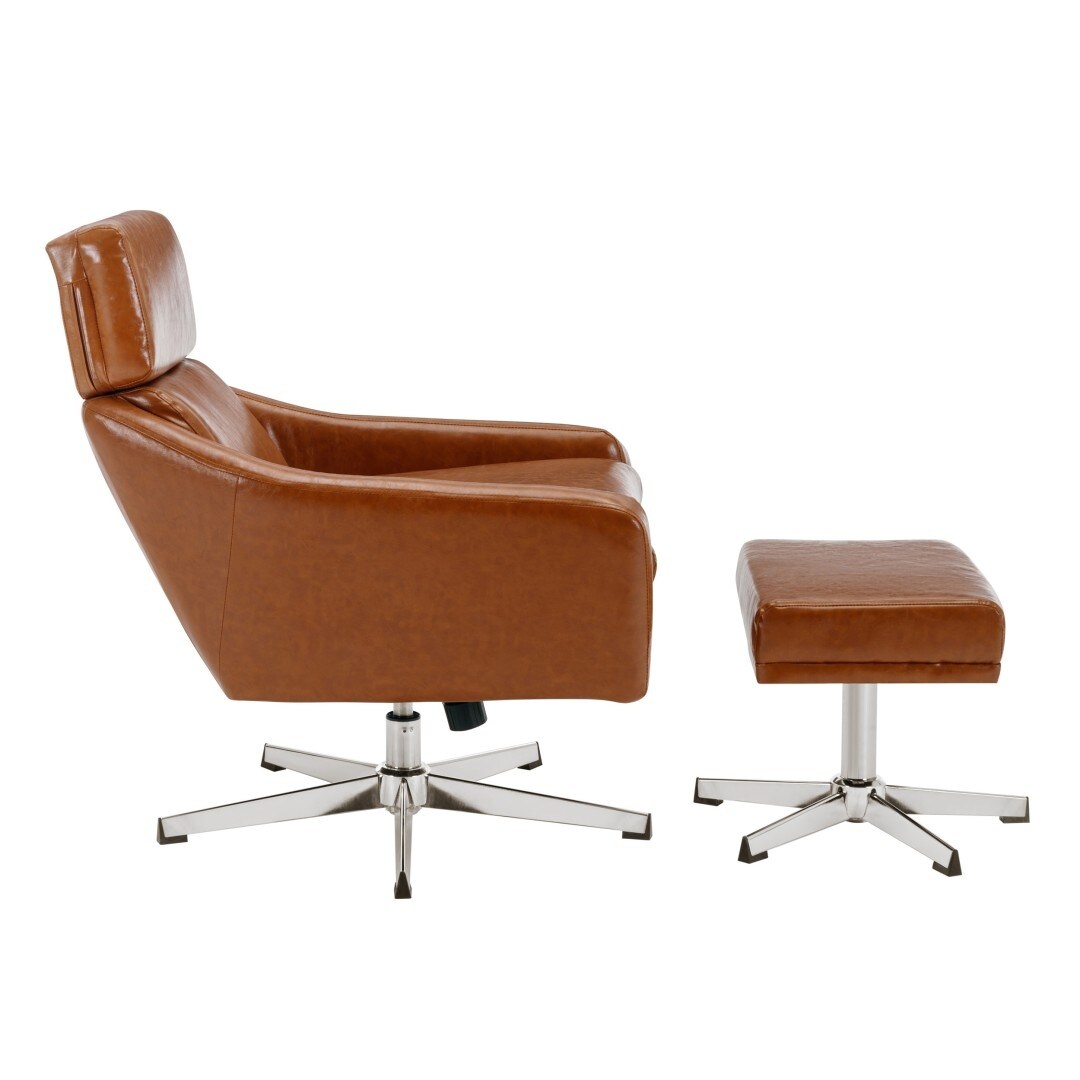 Siavonce PU Leather Swivel Armchair with Ottoman - 31.8''D x27.6''W x 33.9''-37''H