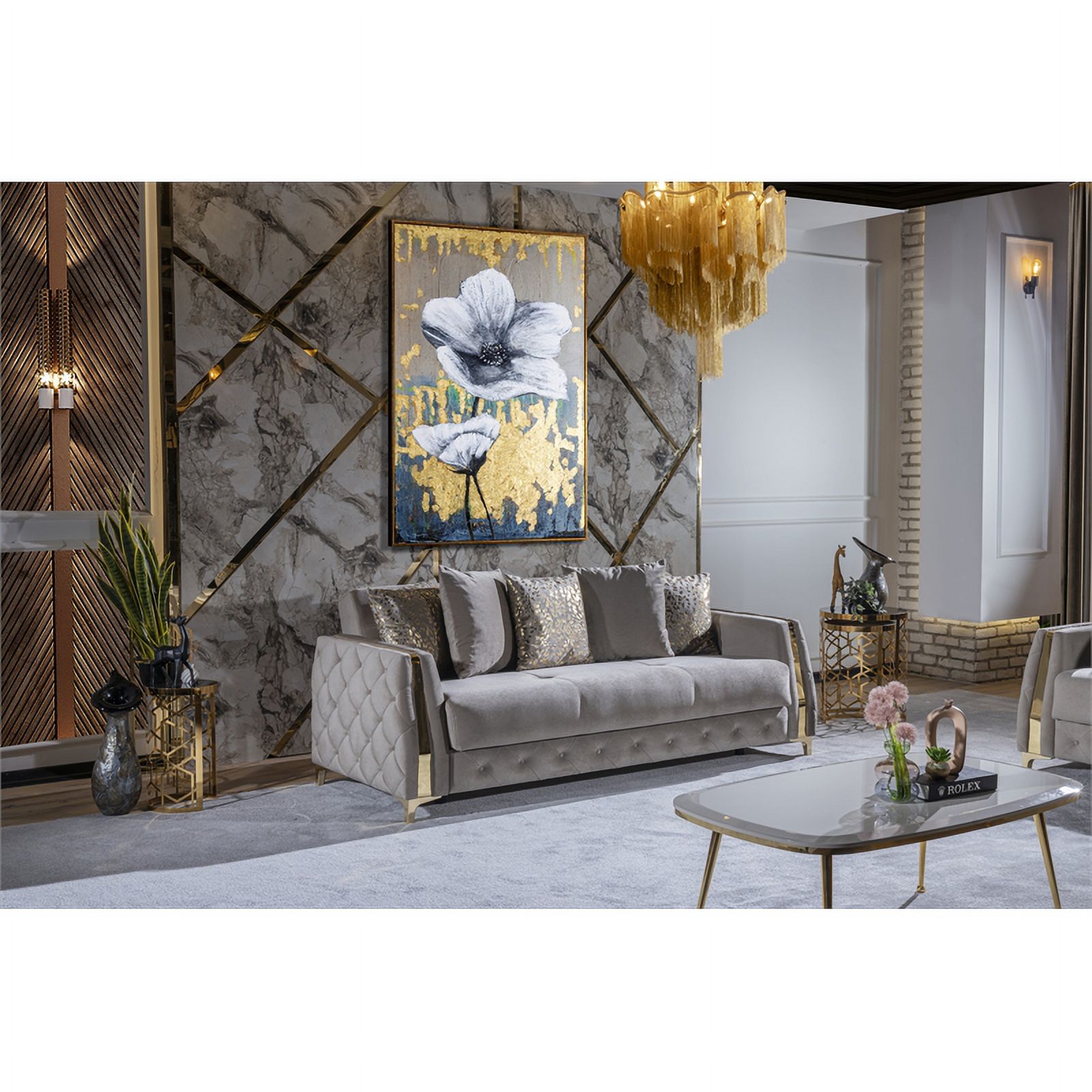 Pemberly Row Modern Sofa Made with Wood & Under-seat Storage in Taupe