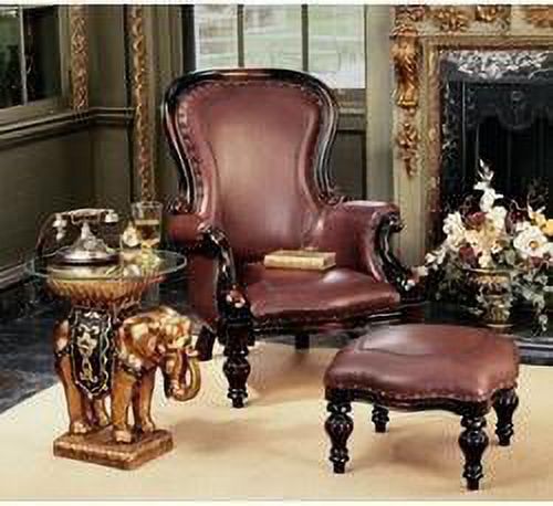 19Th Century Victorian Hand-Carved Solid Mahogany Antique Replica Wing Chair And Ottoman