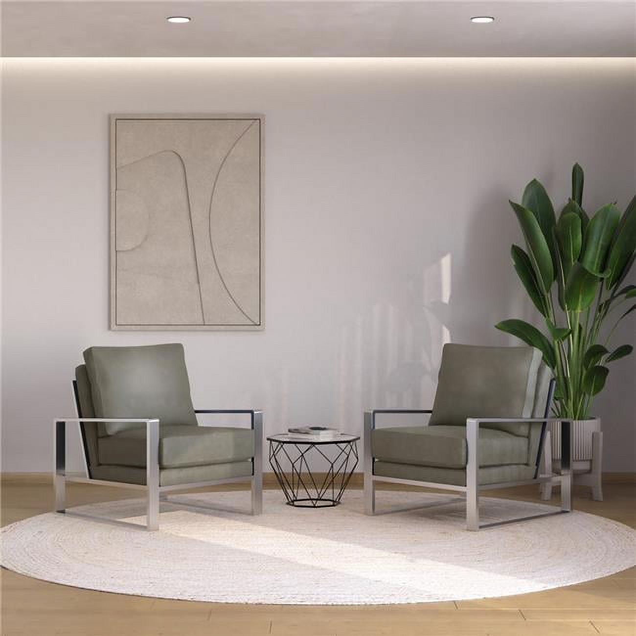 35.43 x 29.2 x 35.82 in. Jefferson Leather Armchair with Silver Frame & Octagon Coffee Table with Geometric Base, Grey