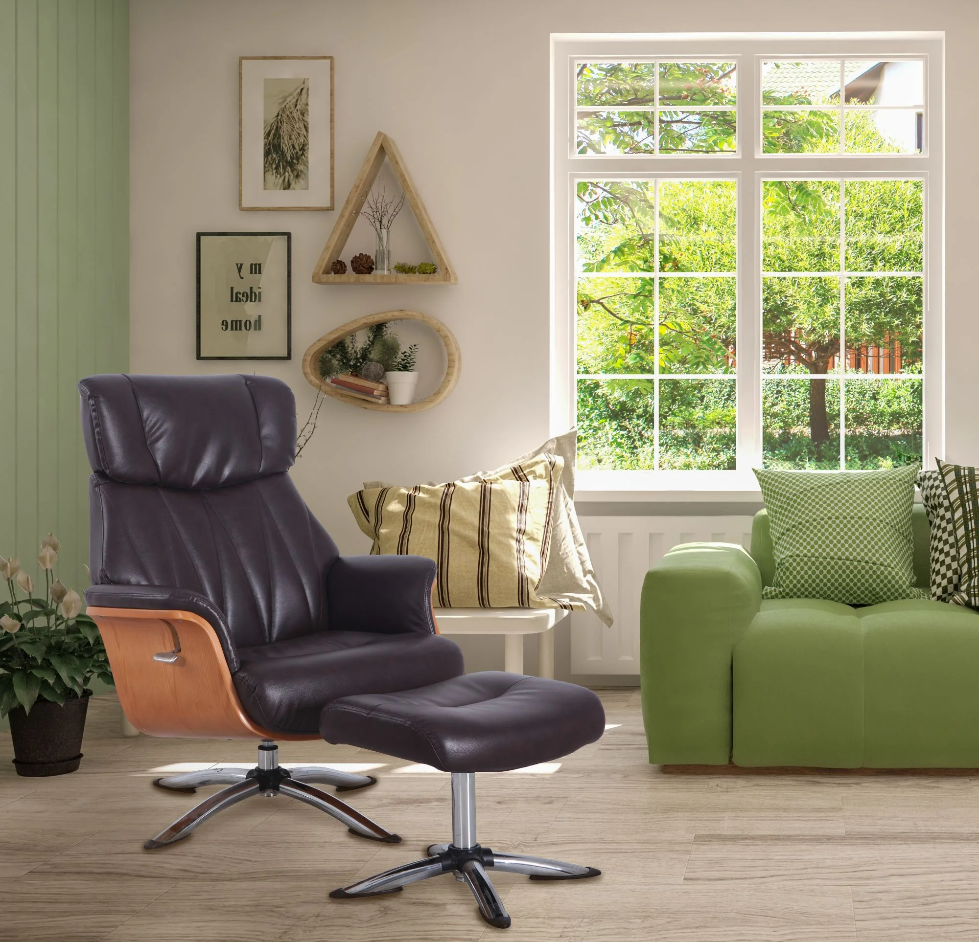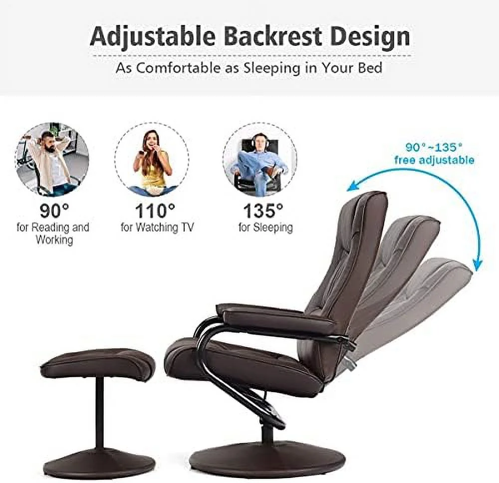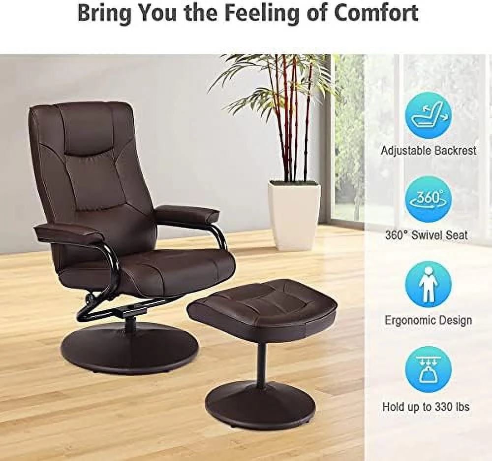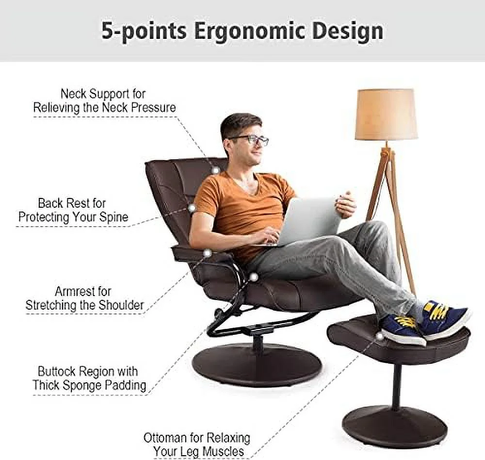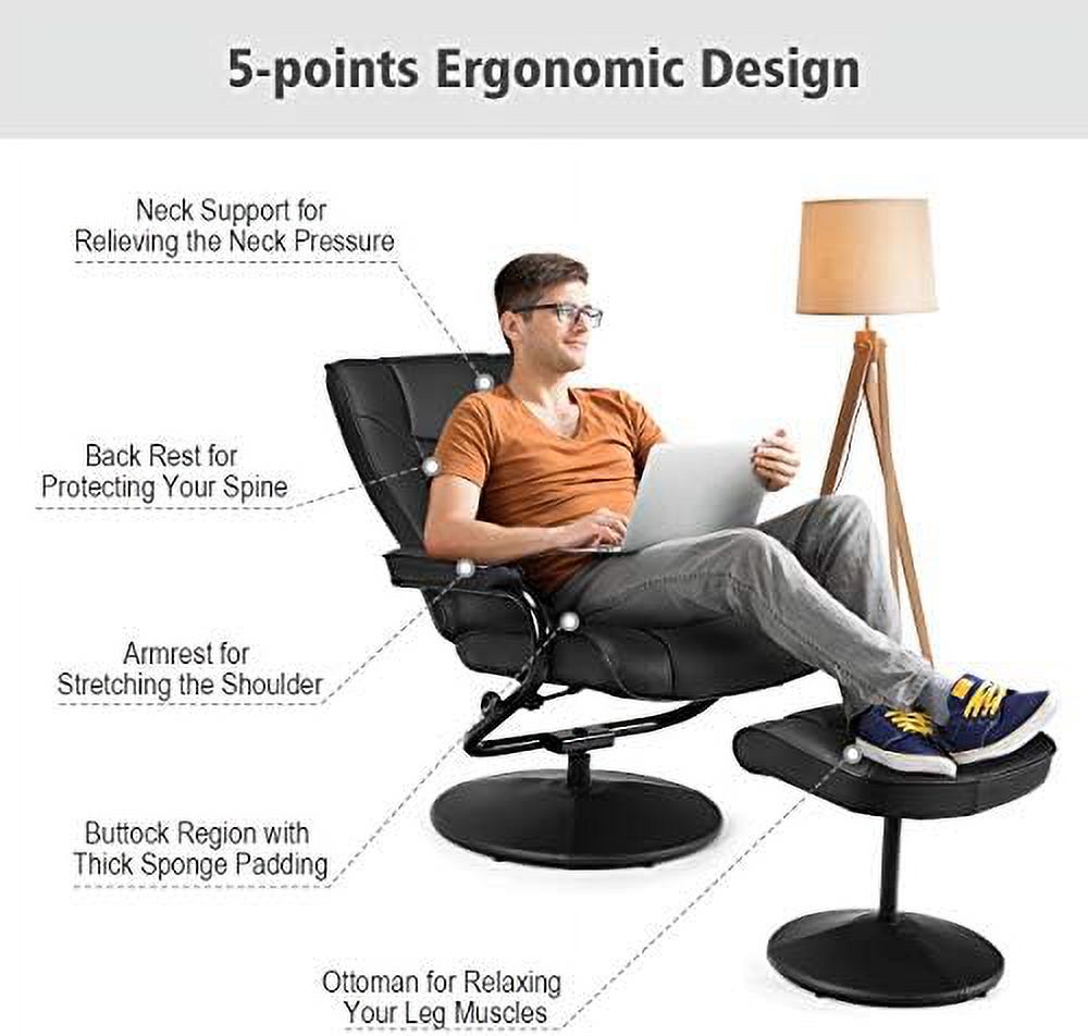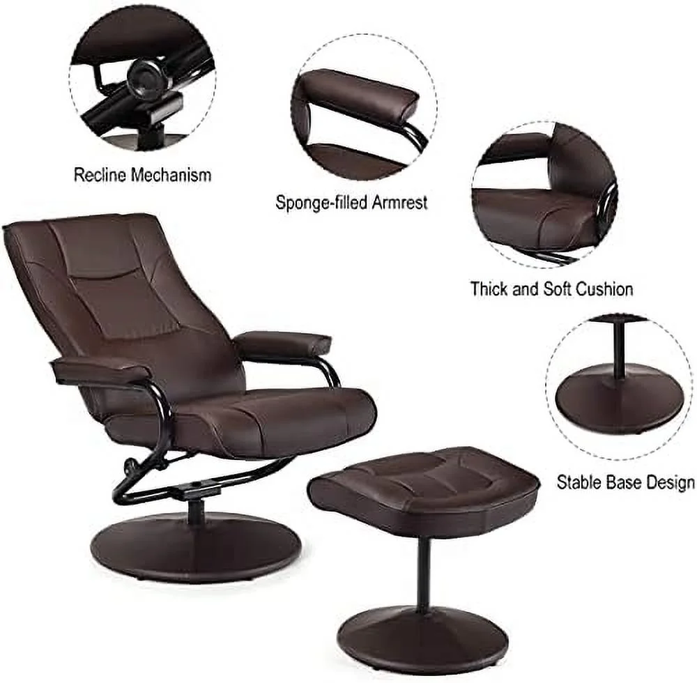 Contemporary Home Living 64.25" Black and Brown Caitlin Recliner Chair with Ottoman