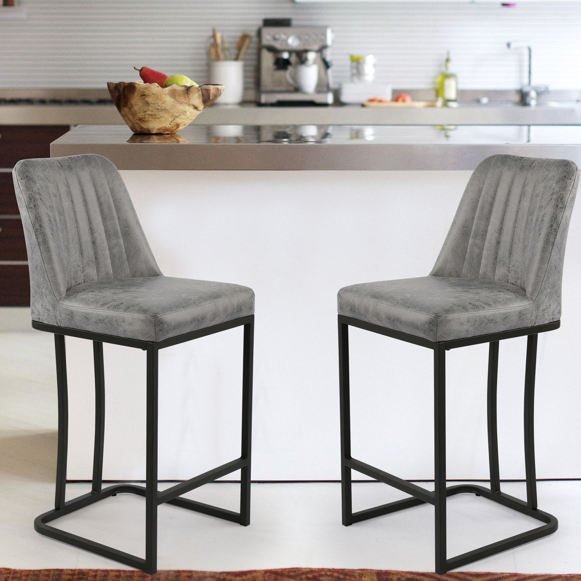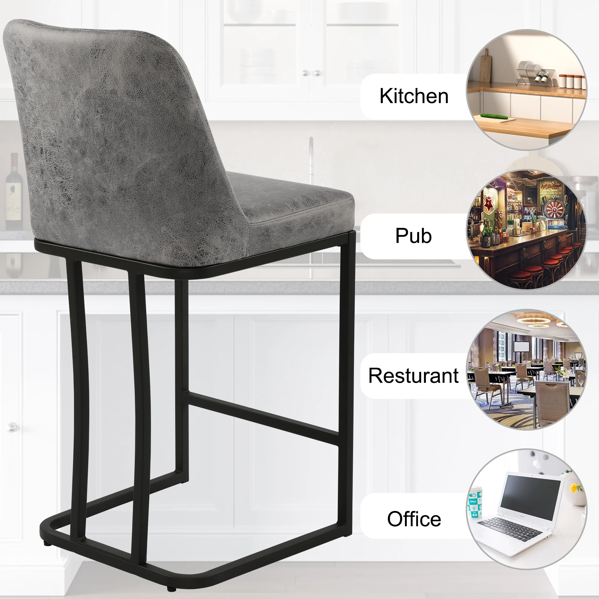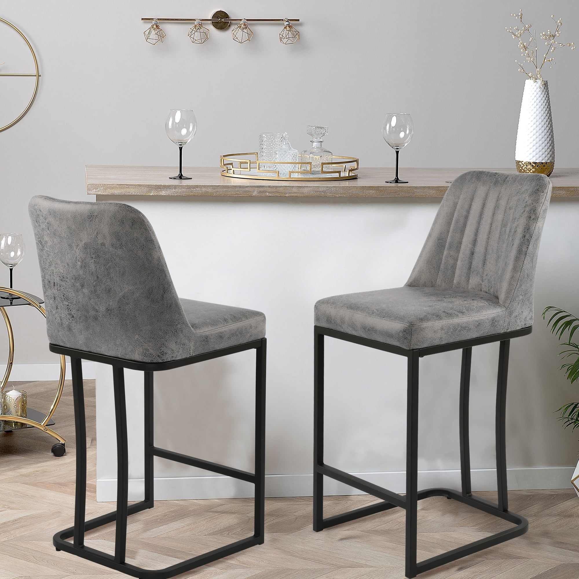 PU Leather Bar Stool Gray Modern Comfortable Bar Stools with Backrest,Set of 2