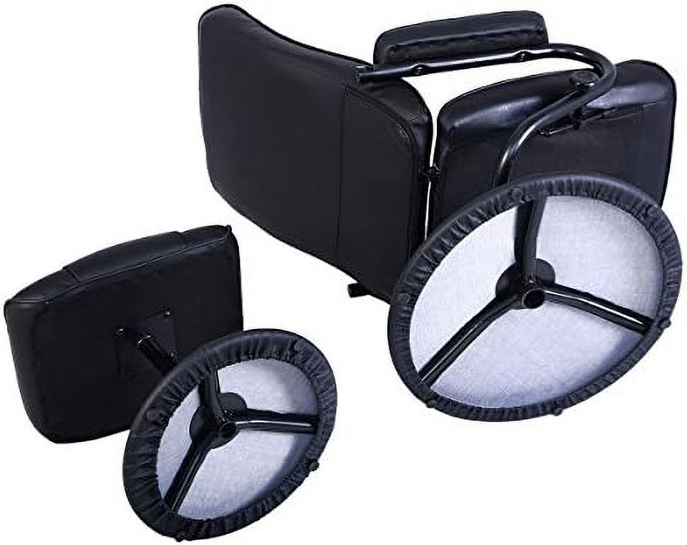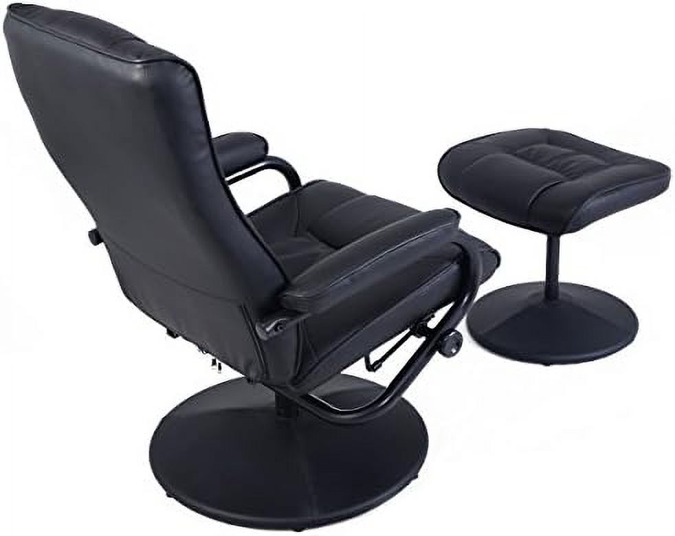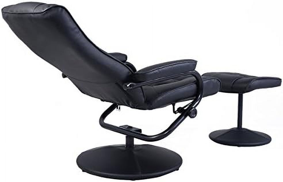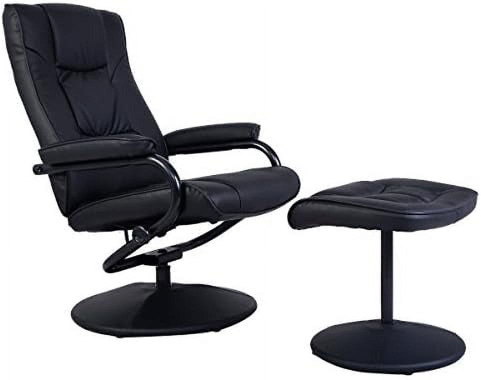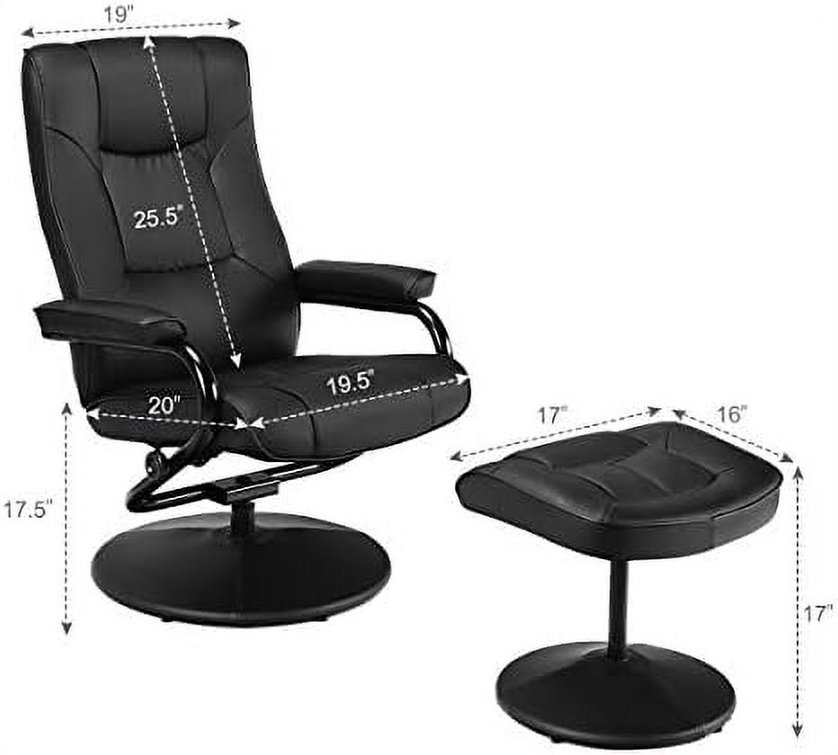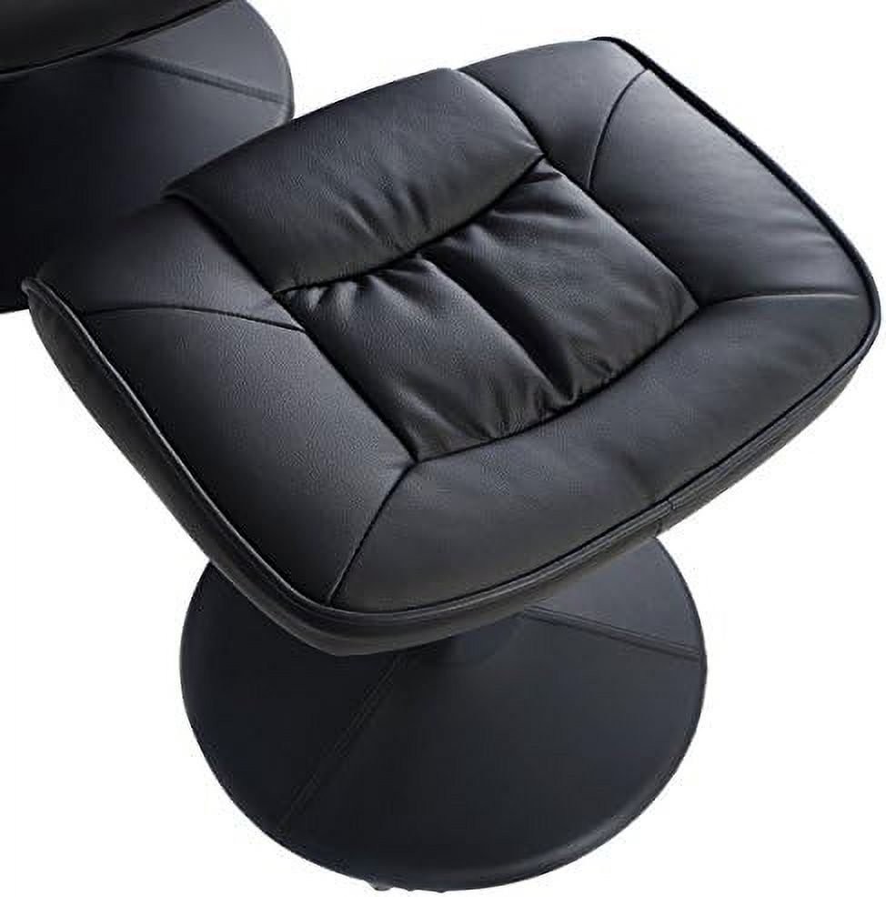 33 x 34.6 x 34.2 in. Black Tufted Leather & Dark Brown Swivel Lounge Chair with Ottoman