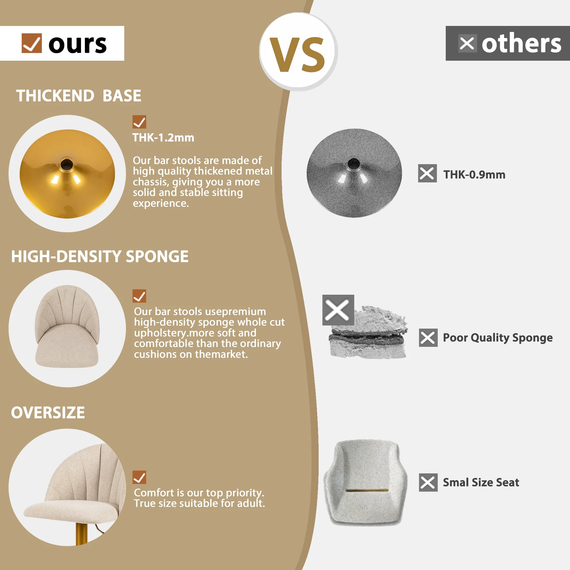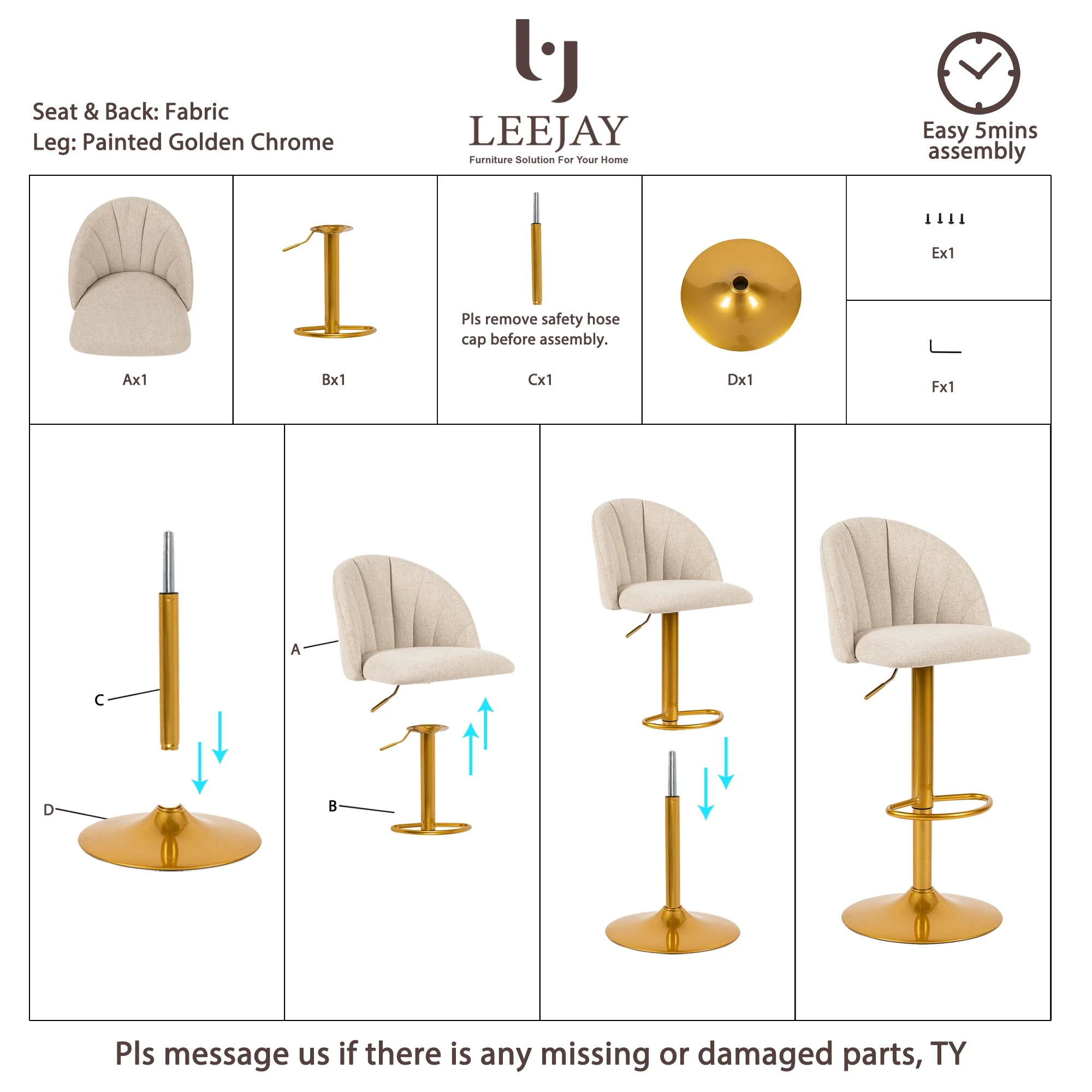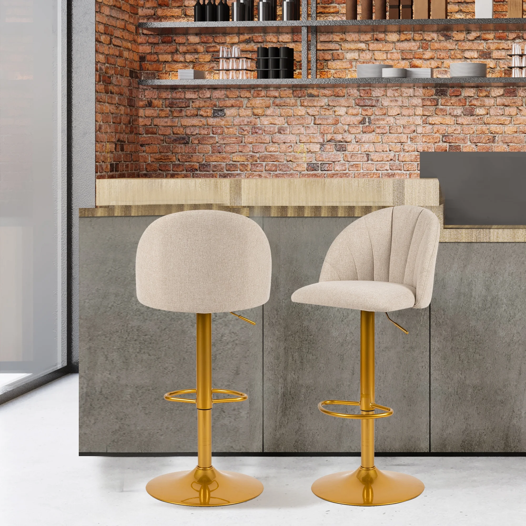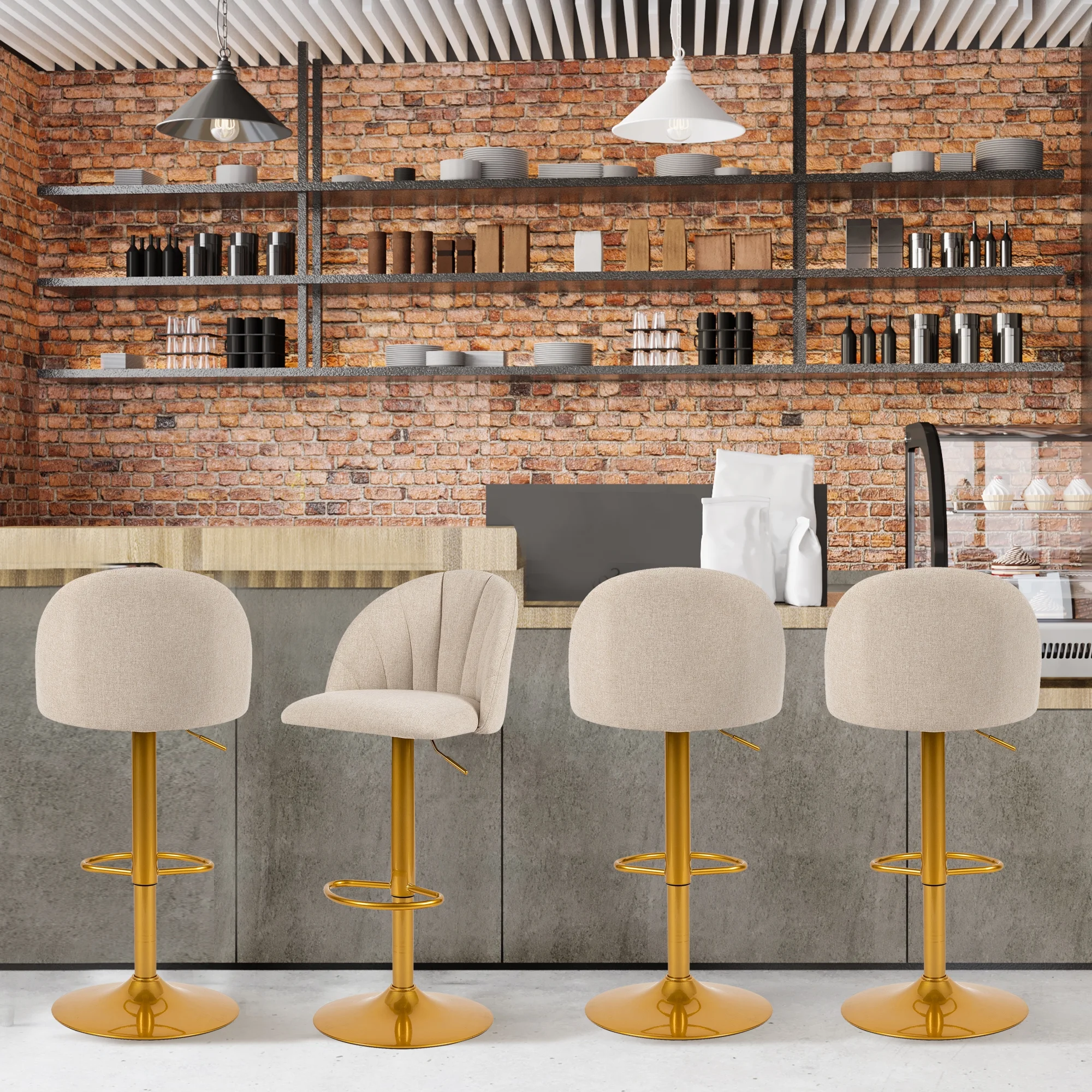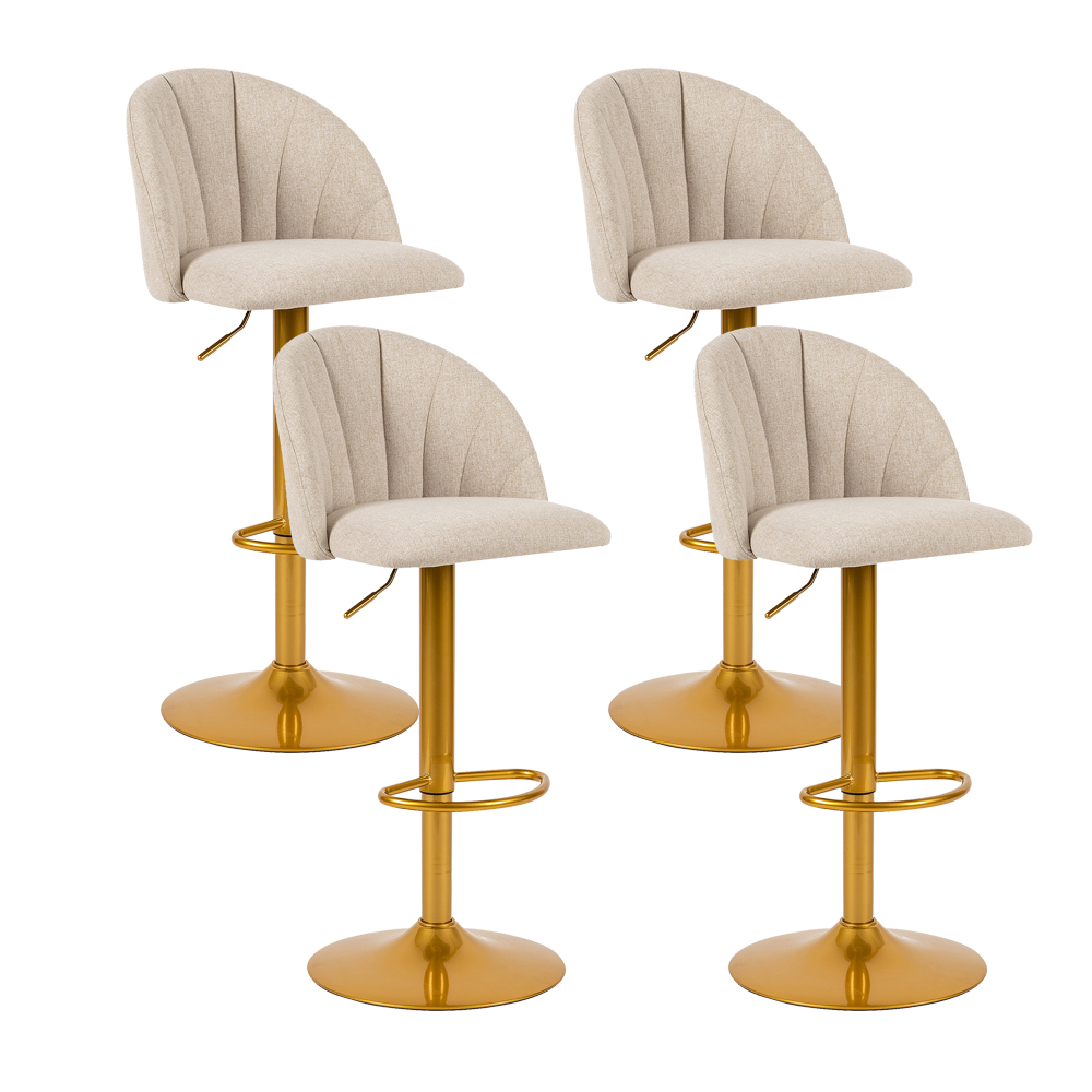 LEEJAY Linen Swivel Counter Height Bar Stools Set of 4,Adjustable Kitchen Island Stool with Gold Base,Beige