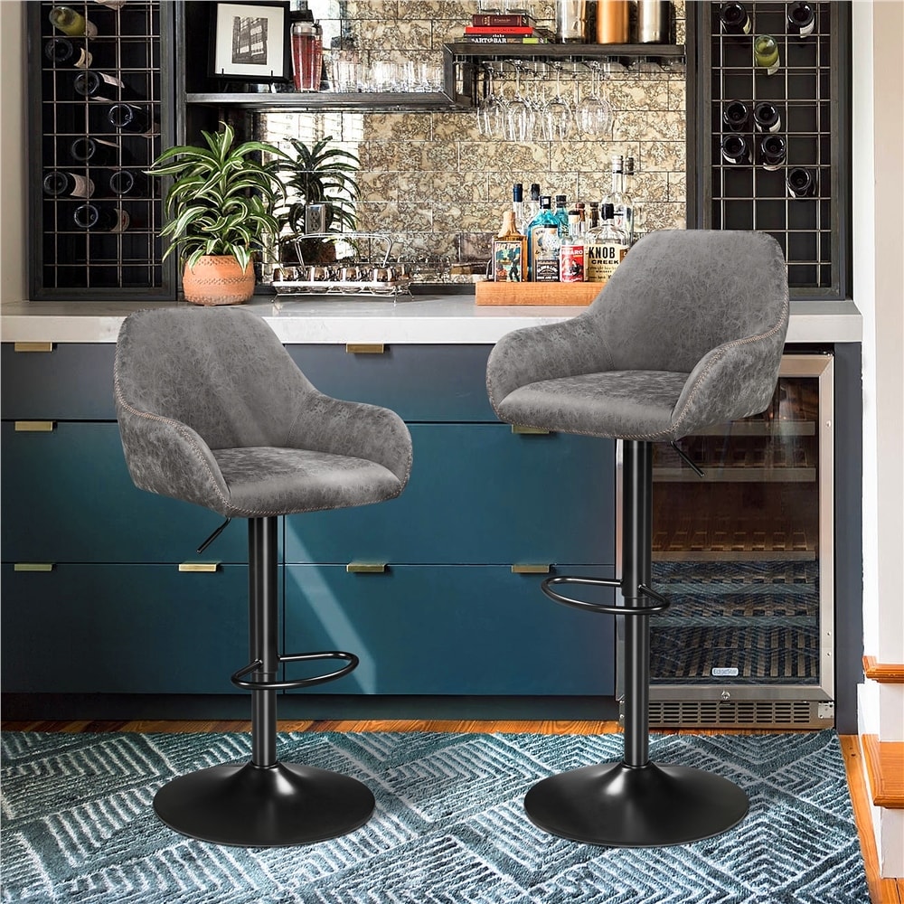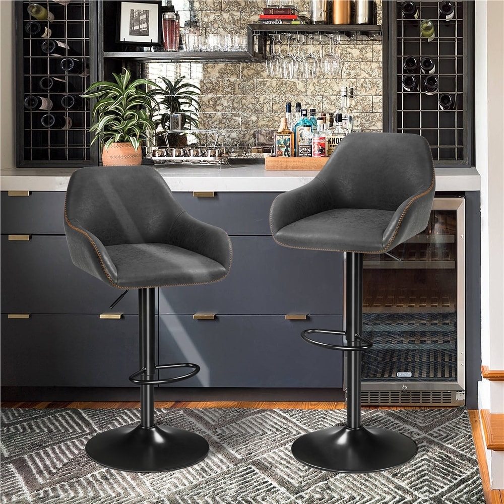 Yaheetech 2pcs Vintage Adjustable PU Leather Upholstered Bar Stools Grey Grey Finish