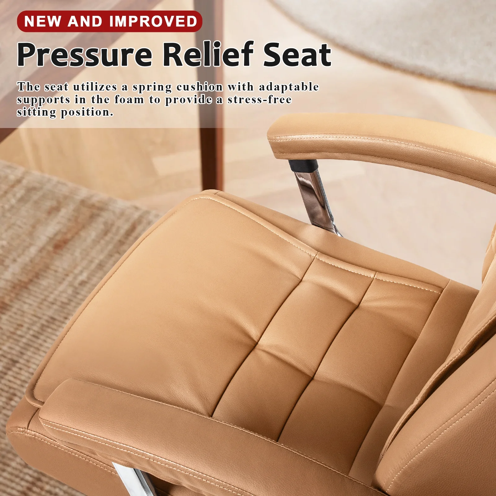 Waleaf Office Chair with Spring Cushion,400LBS High Back Computer Chair with Padded Armrest, Khaki