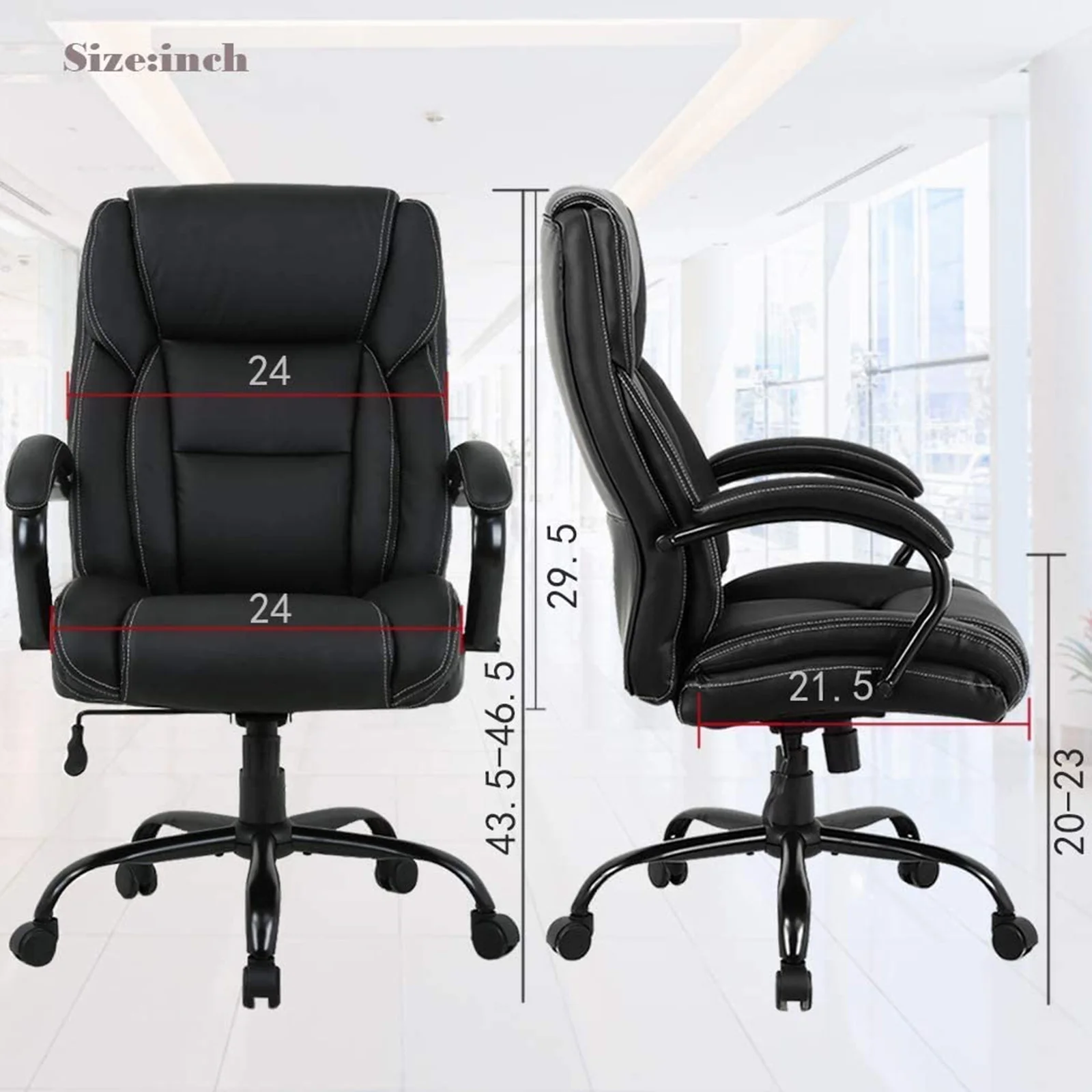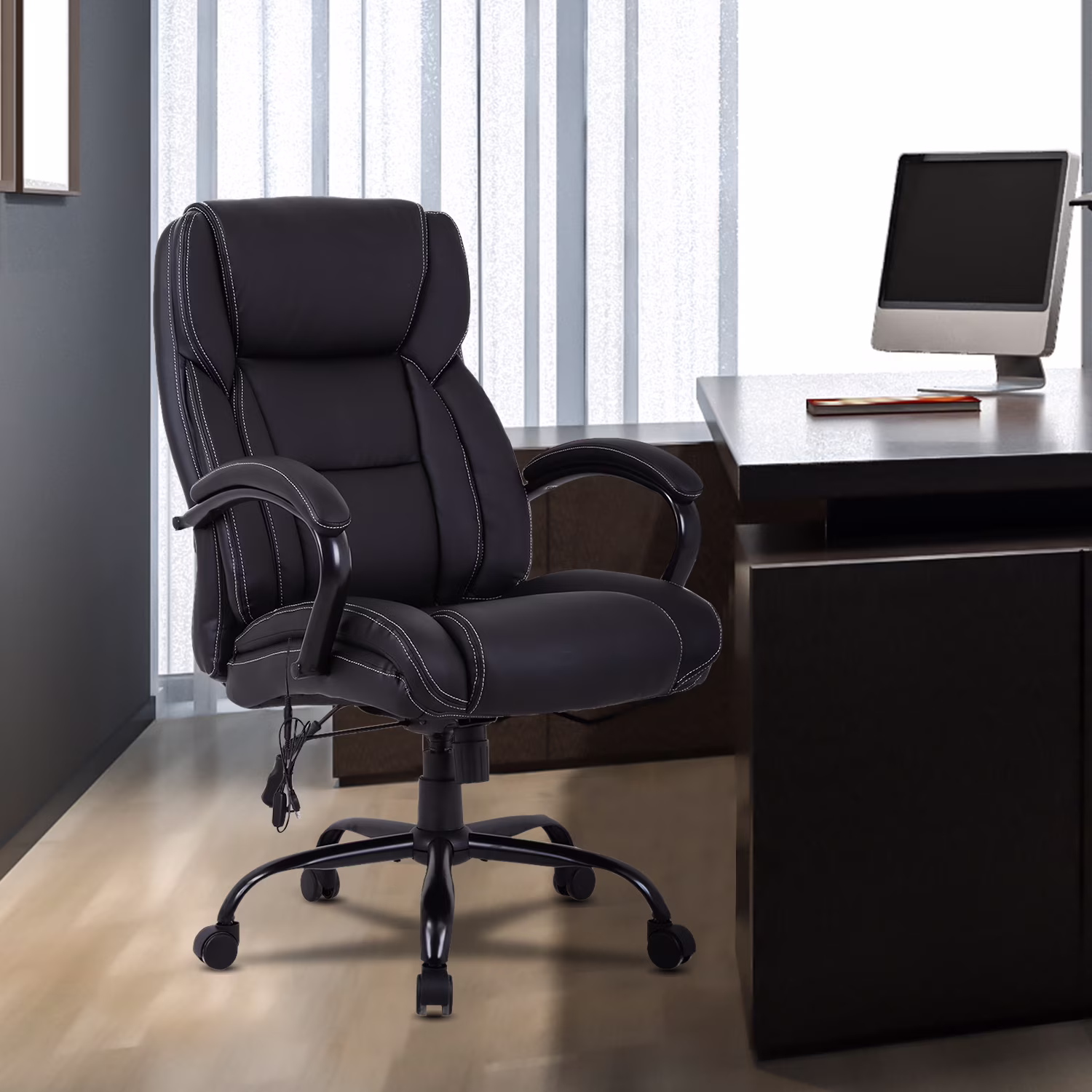 LCH Black Big&Tall Executive Office Chair 500lbs High Back PU Leather with Massage